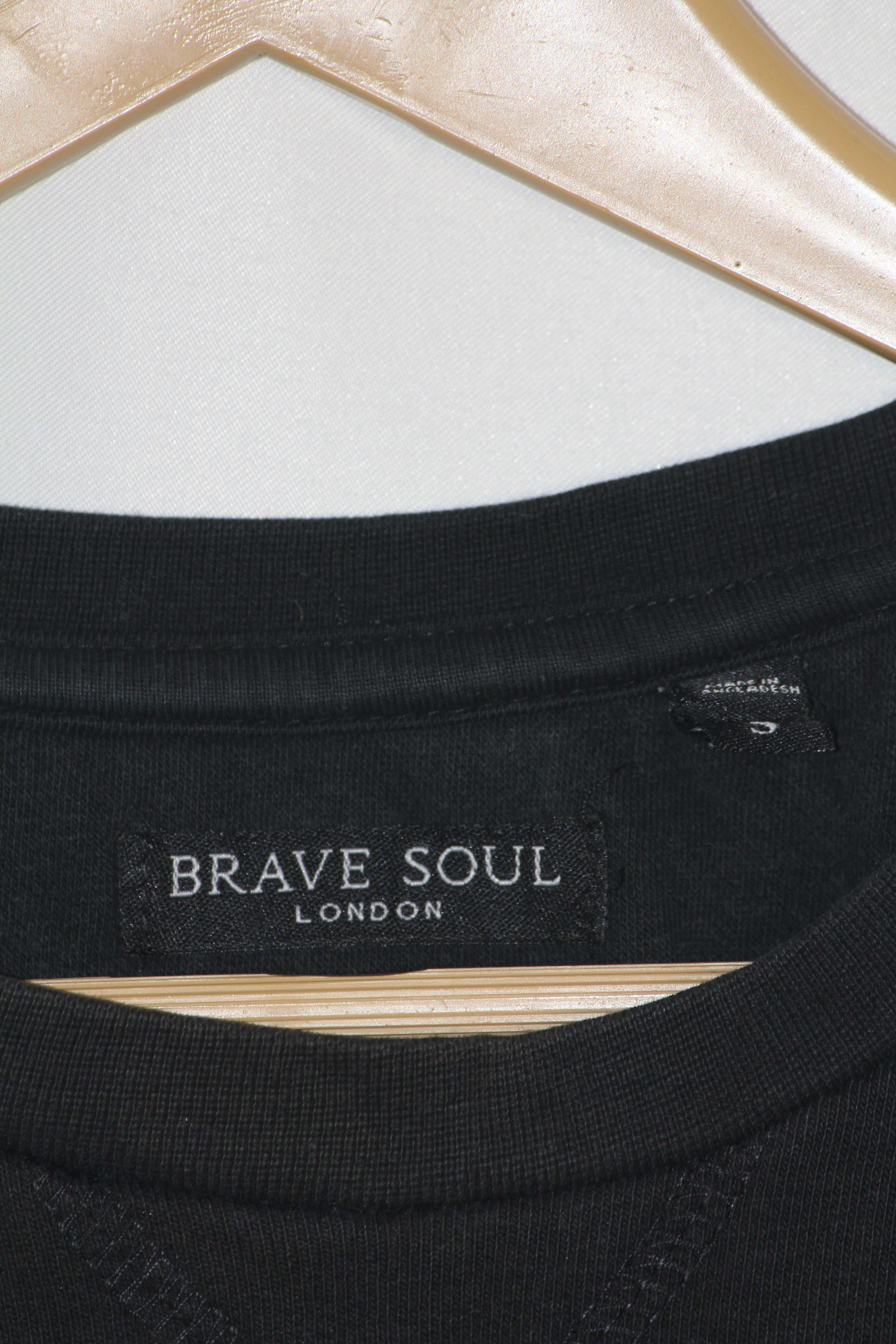 Minimal black full-sleeve sweatshirt by Brave Soul crafted from a cotton-rich blend for breathable comfort and a clean everyday casual look.