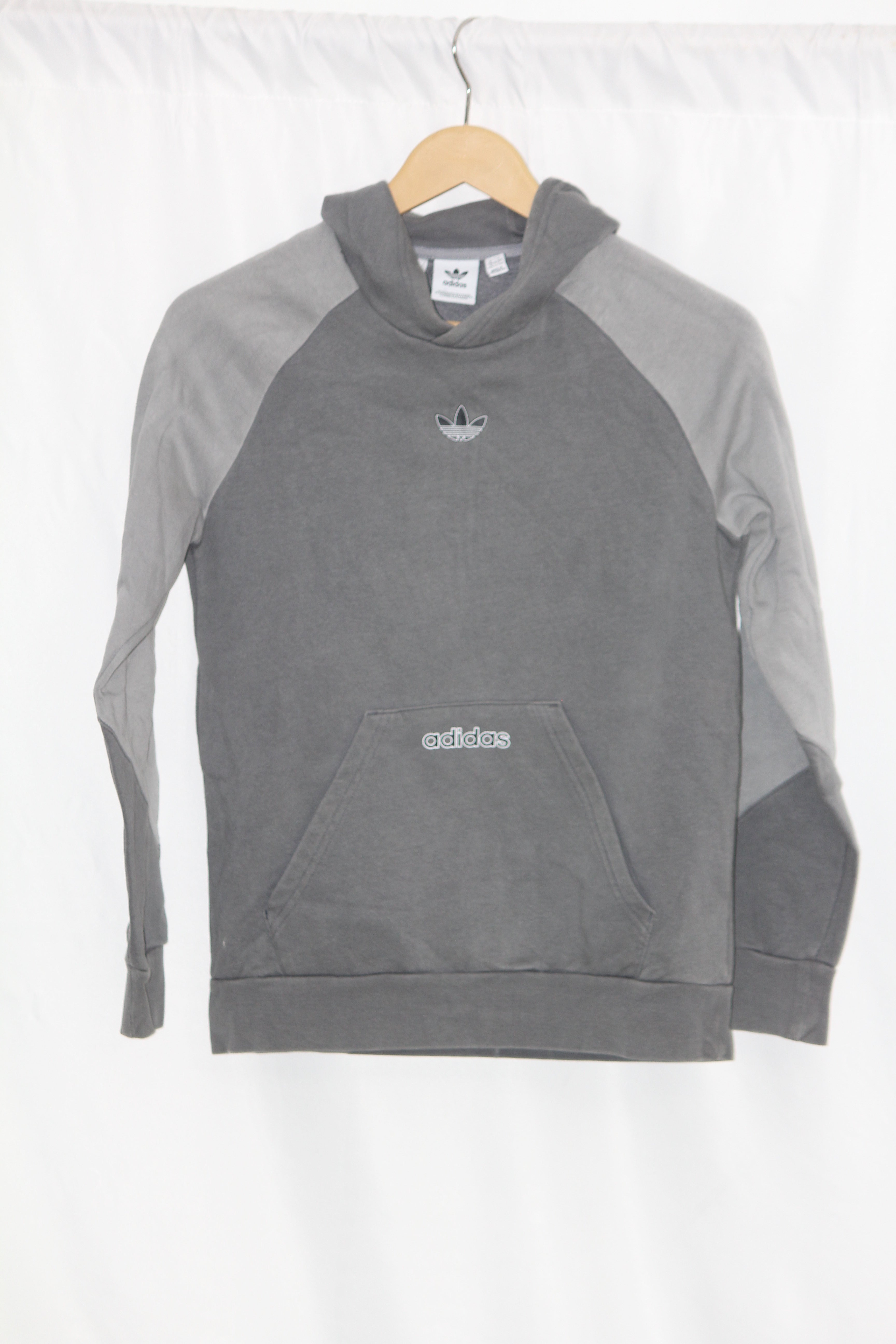 A stylish grey hoodie from Adidas, in excellent condition with a small fit, perfect for workouts or casual wear.