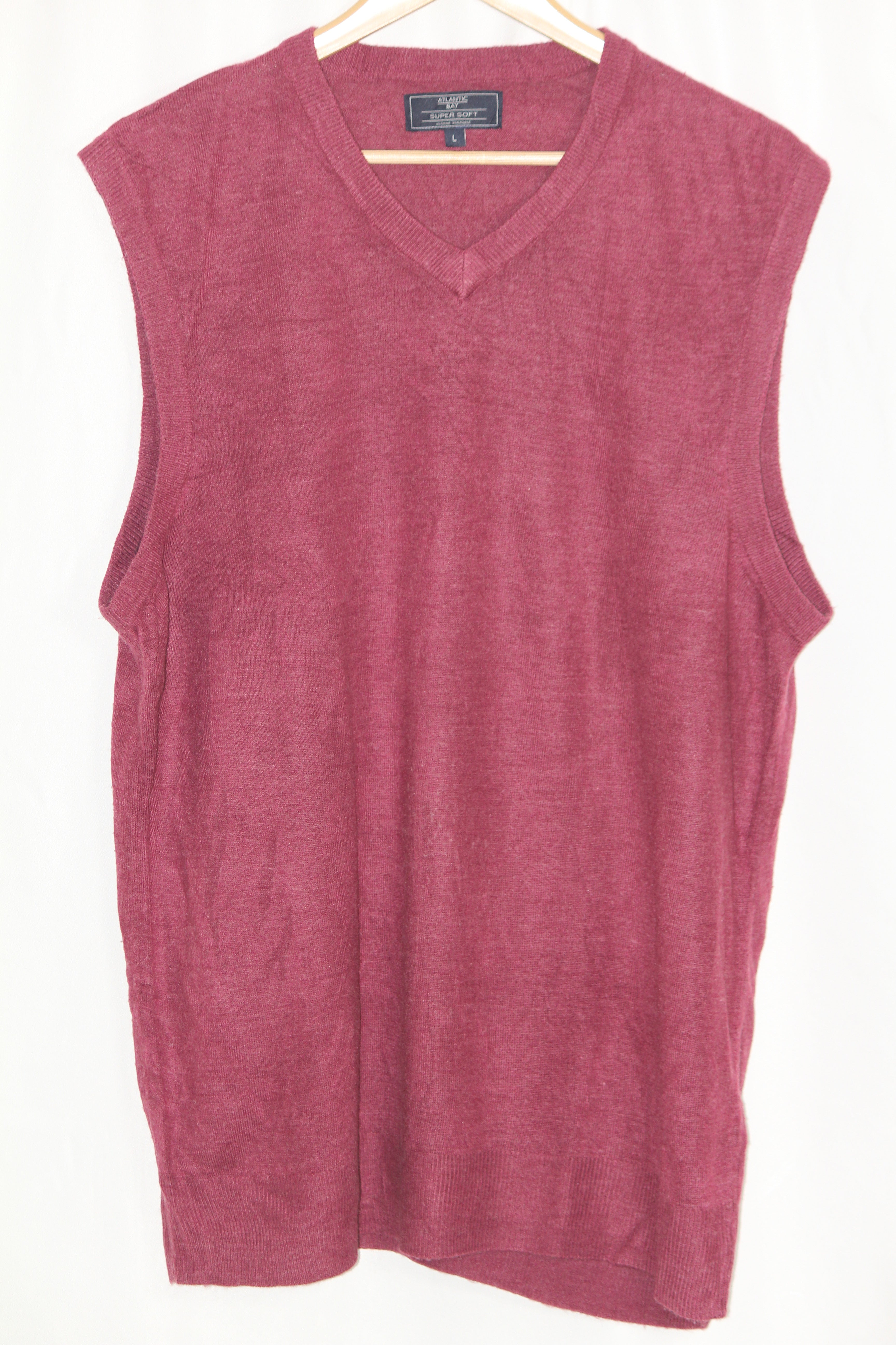 Pink sleeveless sweater by Atlantic Bay. Lightweight winter wear. Chest 22.5", Length 29". Fabric: 100% Acrylic.