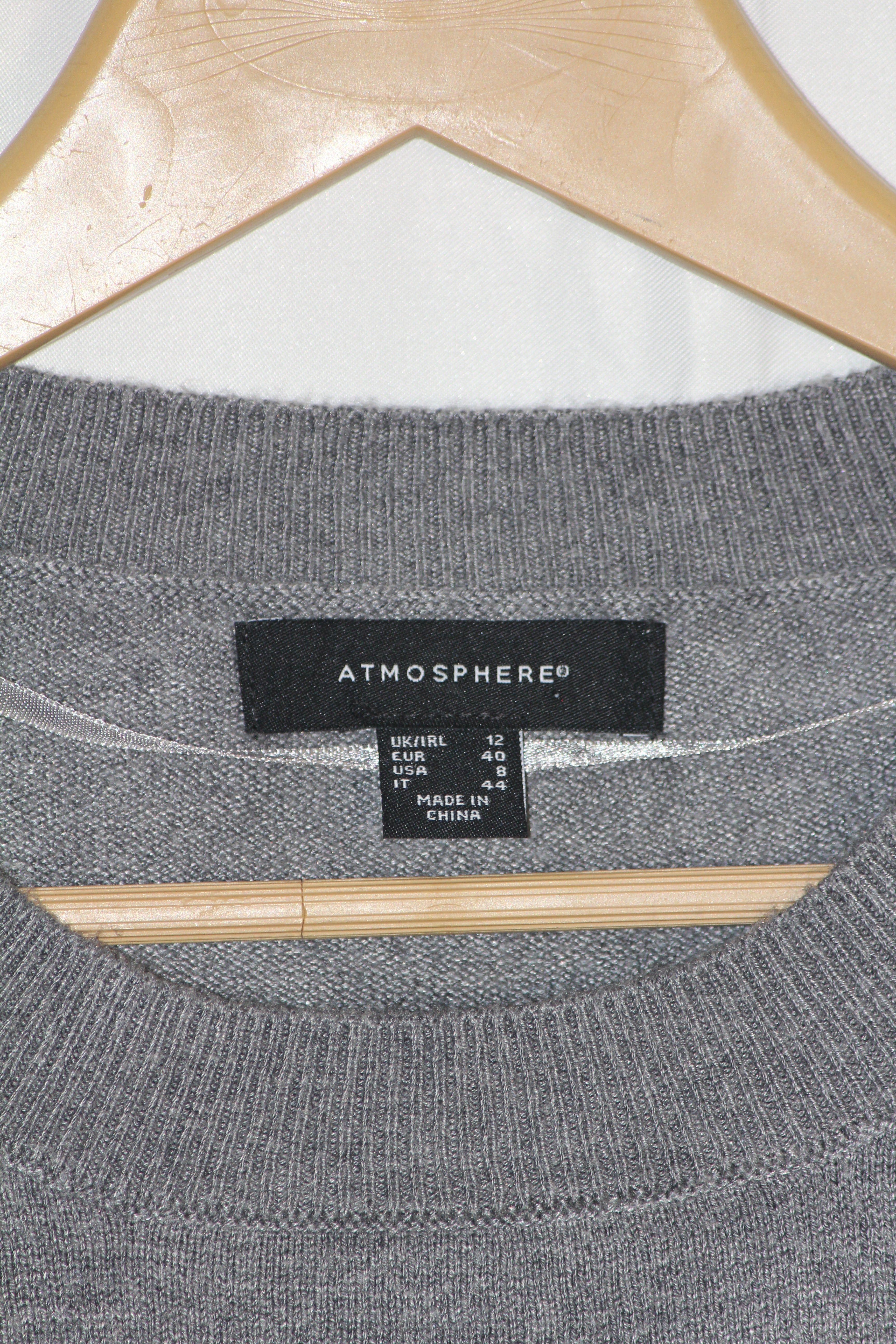 Cozy Atmosphere sweatshirt in grey and white, perfect for layering on cool days. Size: Small.