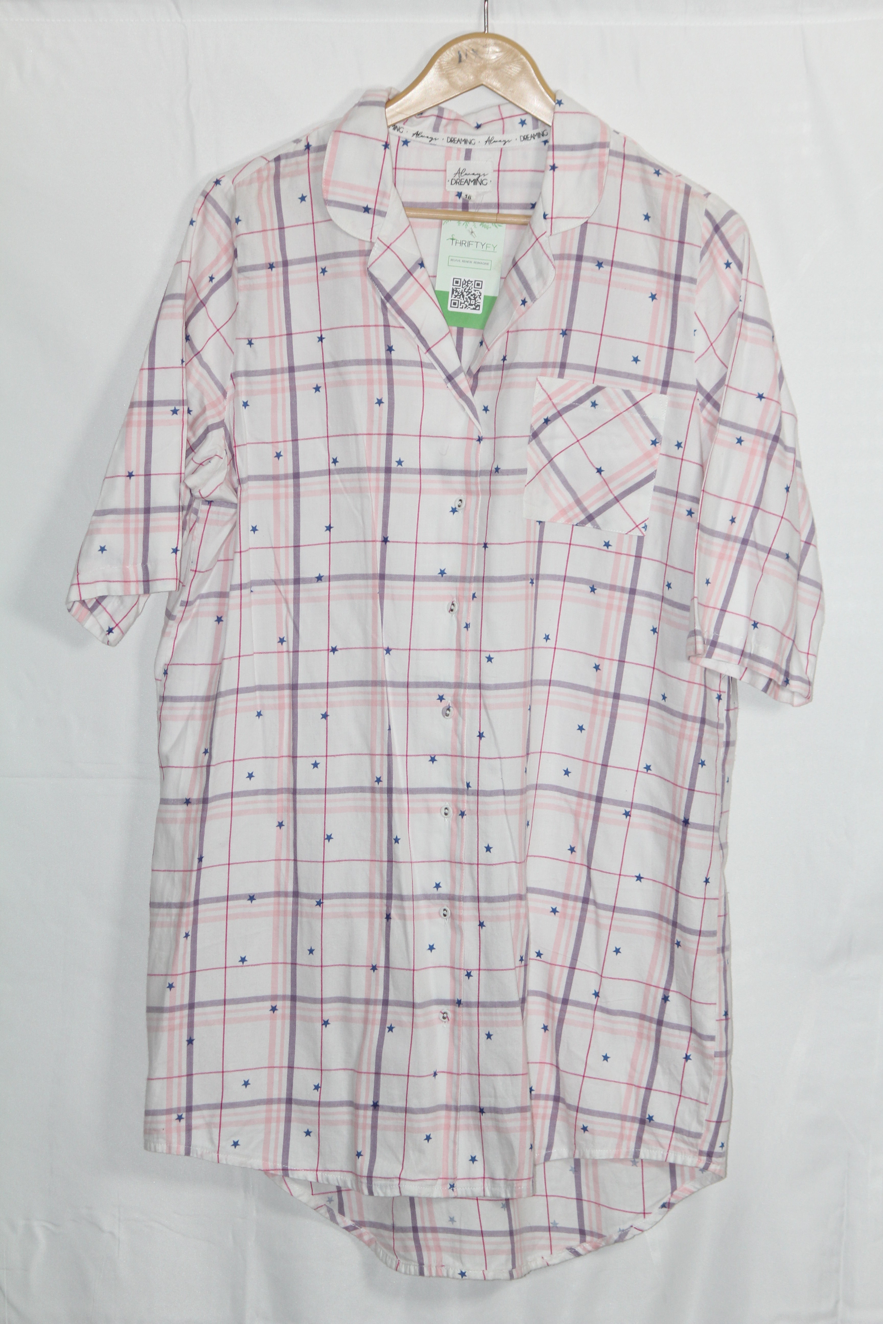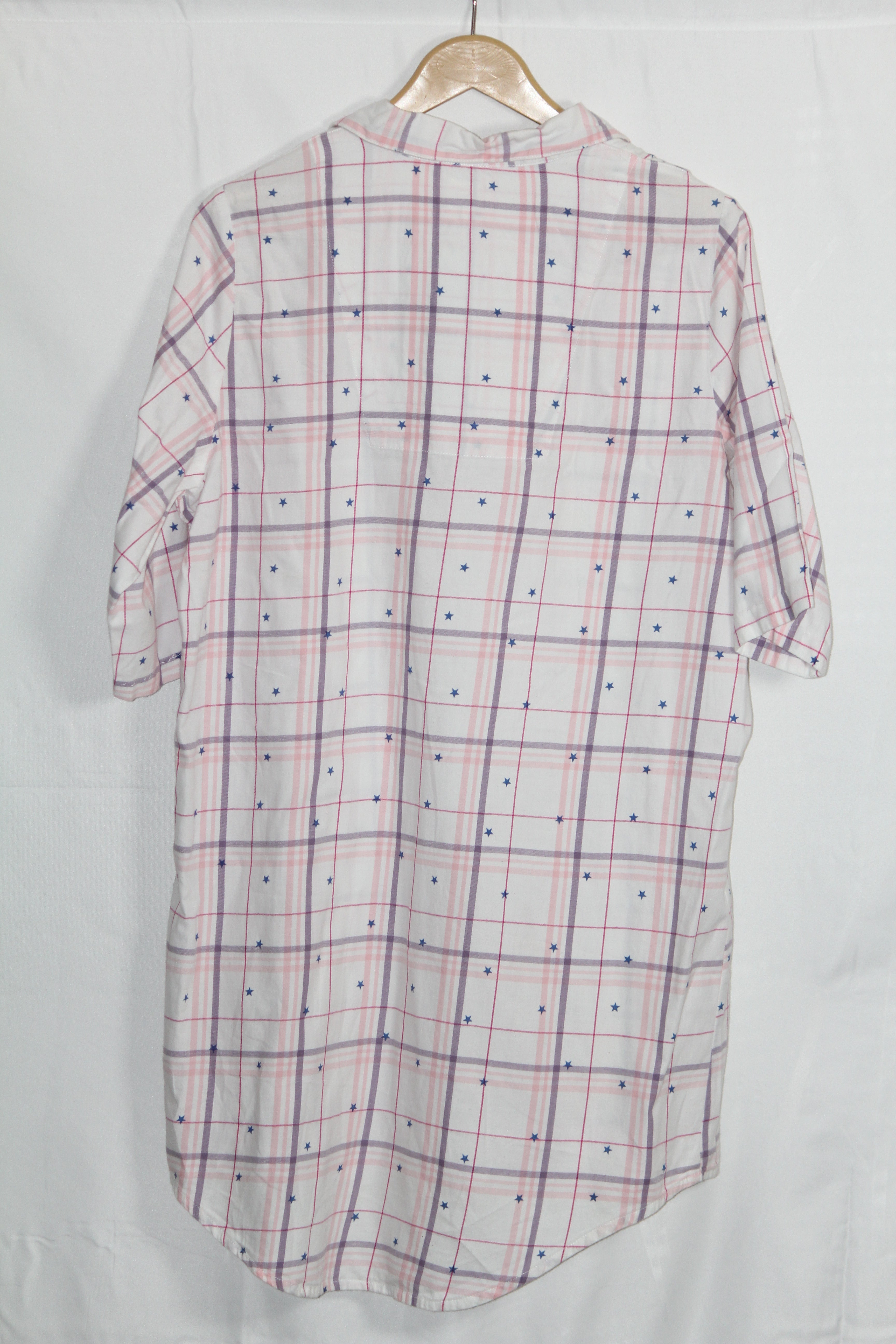 Add a pop of warmth to your look with this white half-sleeve checkered button down from Always Dreaming, featuring small star prints for a playful twist. Crafted from 100% cotton for breathable comfort.