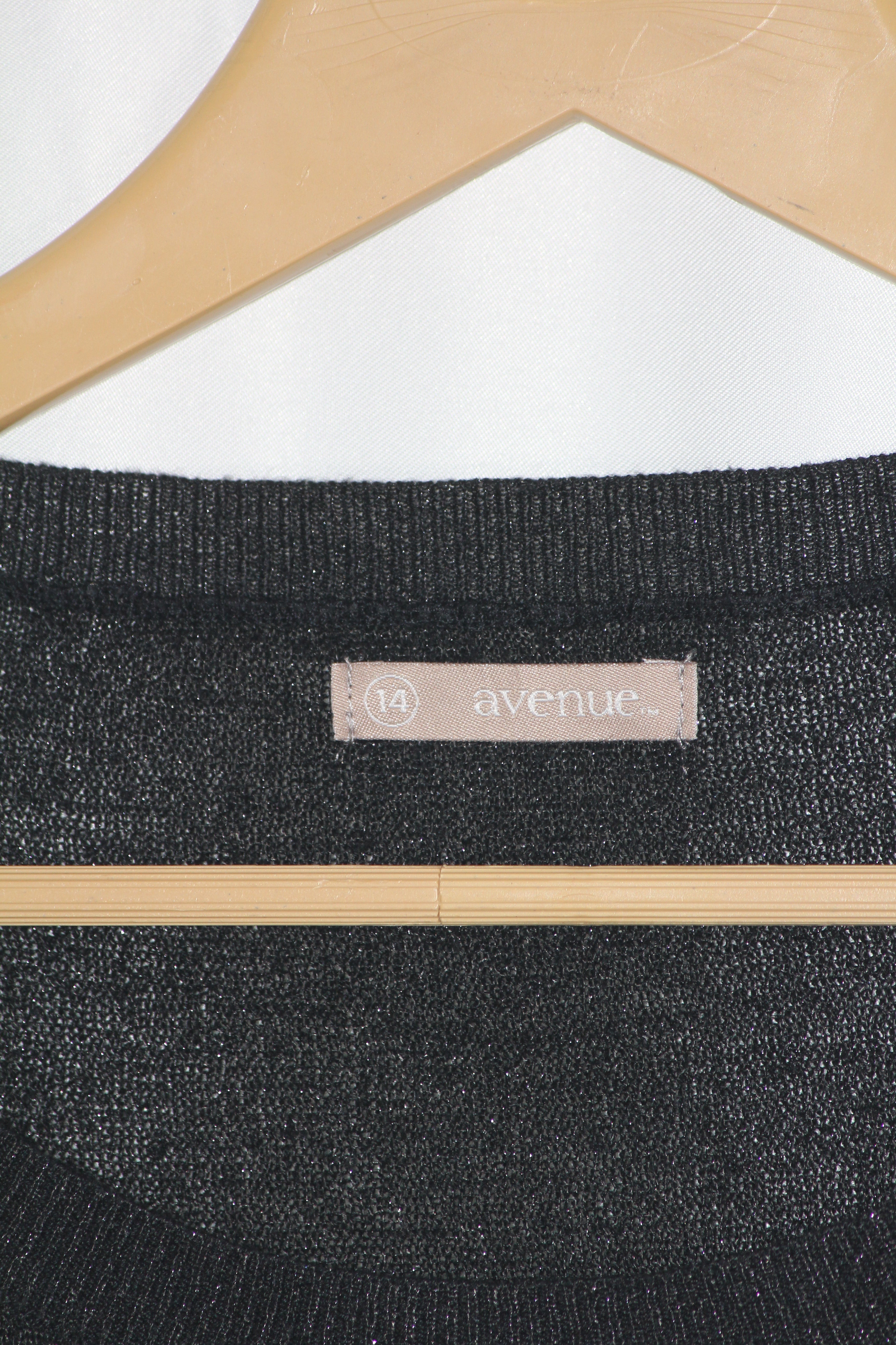 A chic black sweater from Avenue, featuring a sparkly finish for a touch of glamour. Perfect for casual evenings. In excellent condition.