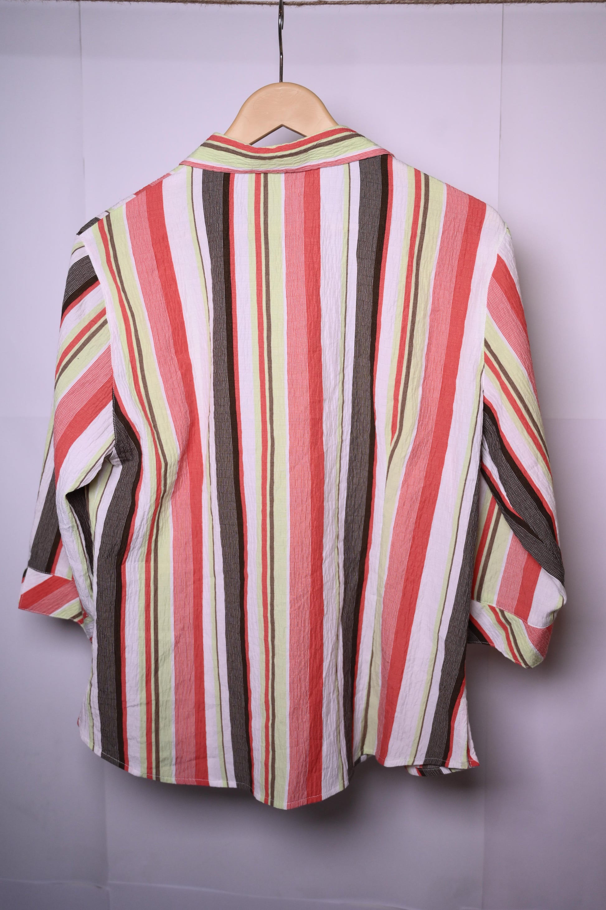 Barisal Red, Green, Brown & White Striped Button Down Shirt – Medium