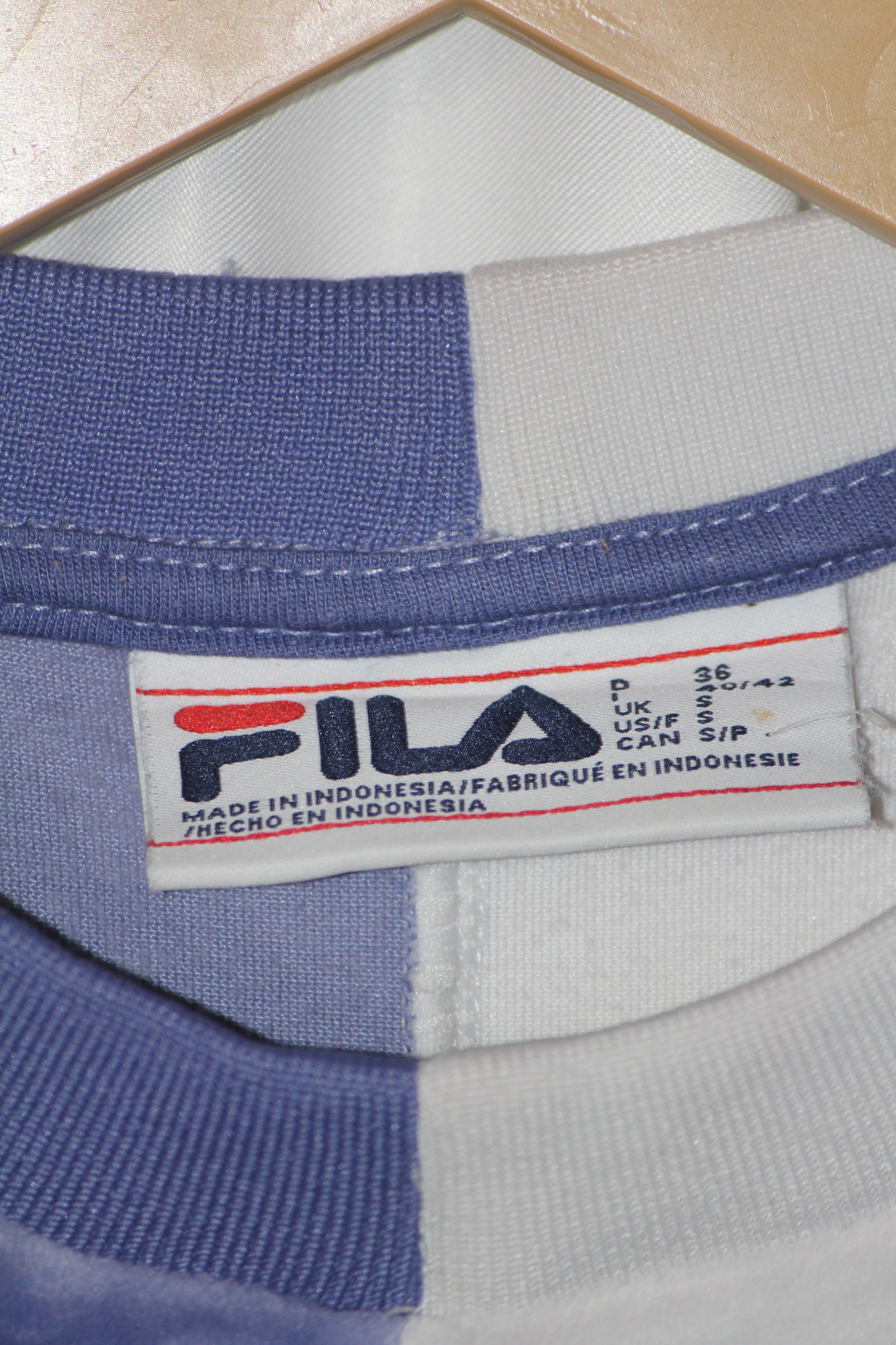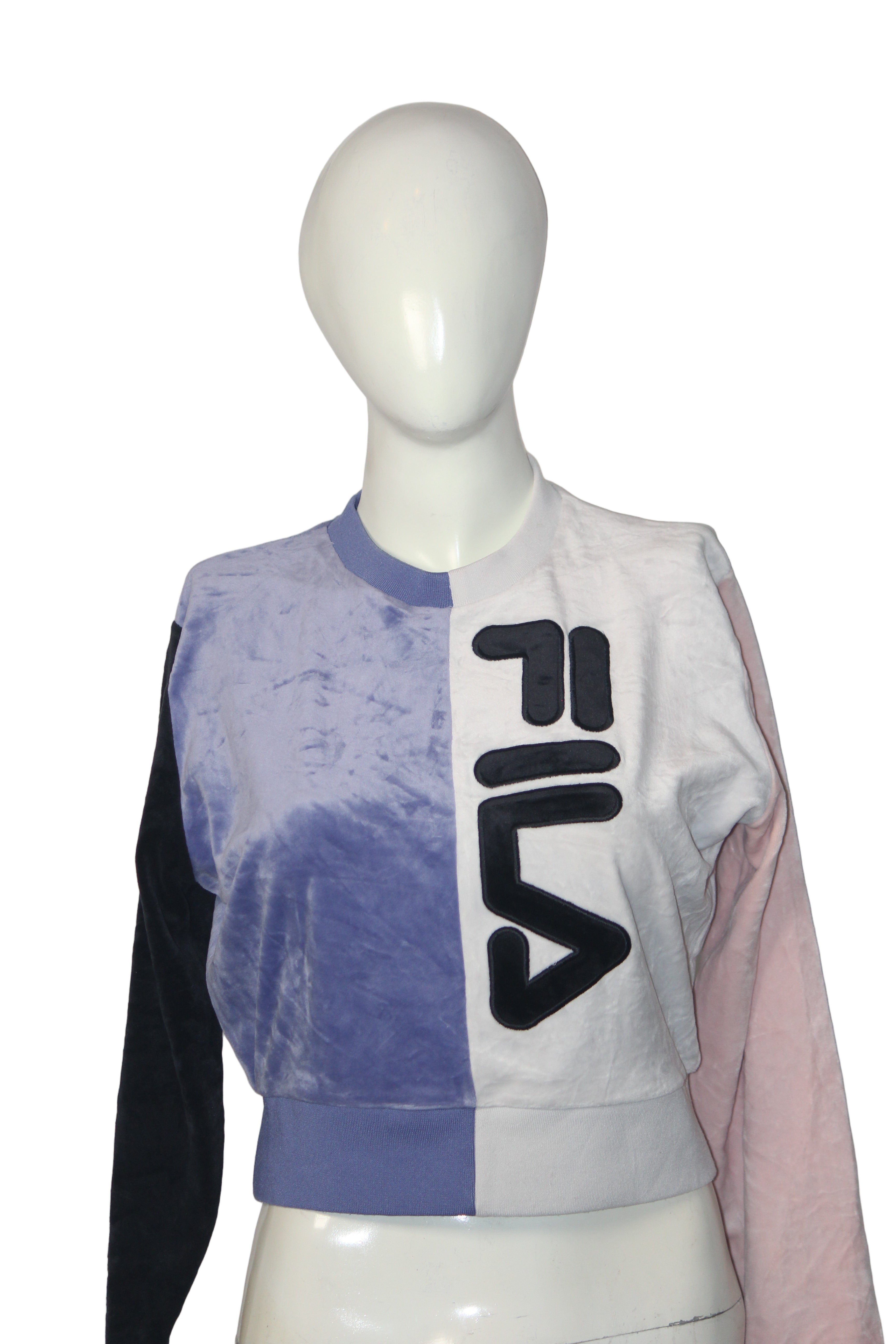 A sporty white-and-blue sweatshirt from FILA crafted with polyester and stretch. Full sleeves and cropped length for a bold athletic look.