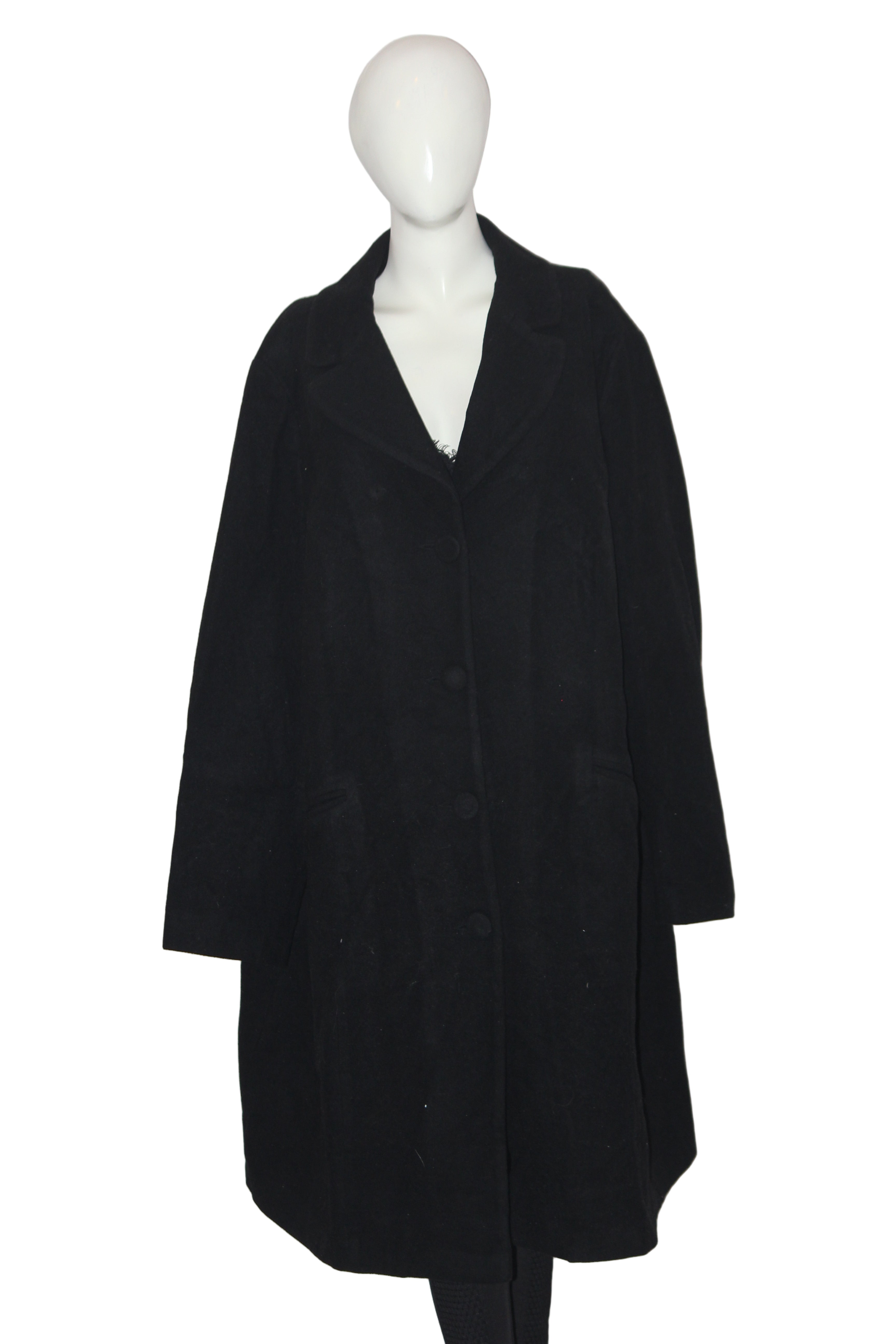 Classic, warm, and timeless — this Essence black long coat is made from a premium wool blend for ultimate comfort. The tailored button-down design adds elegance, making it perfect for both workwear and evening outings.