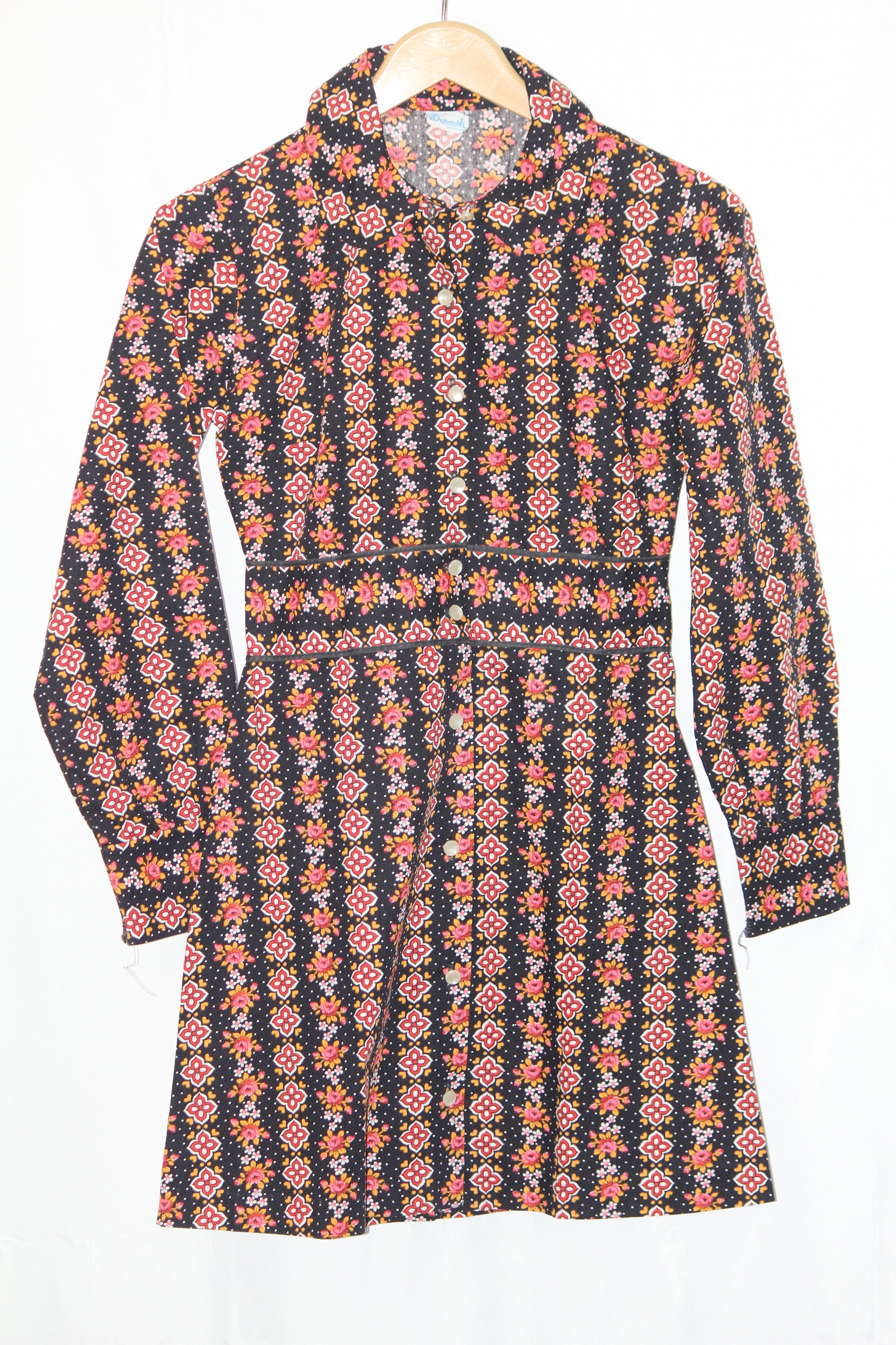 Black full sleeve blouse with orange flowers by Darursh made of 100% cotton. Medium size.