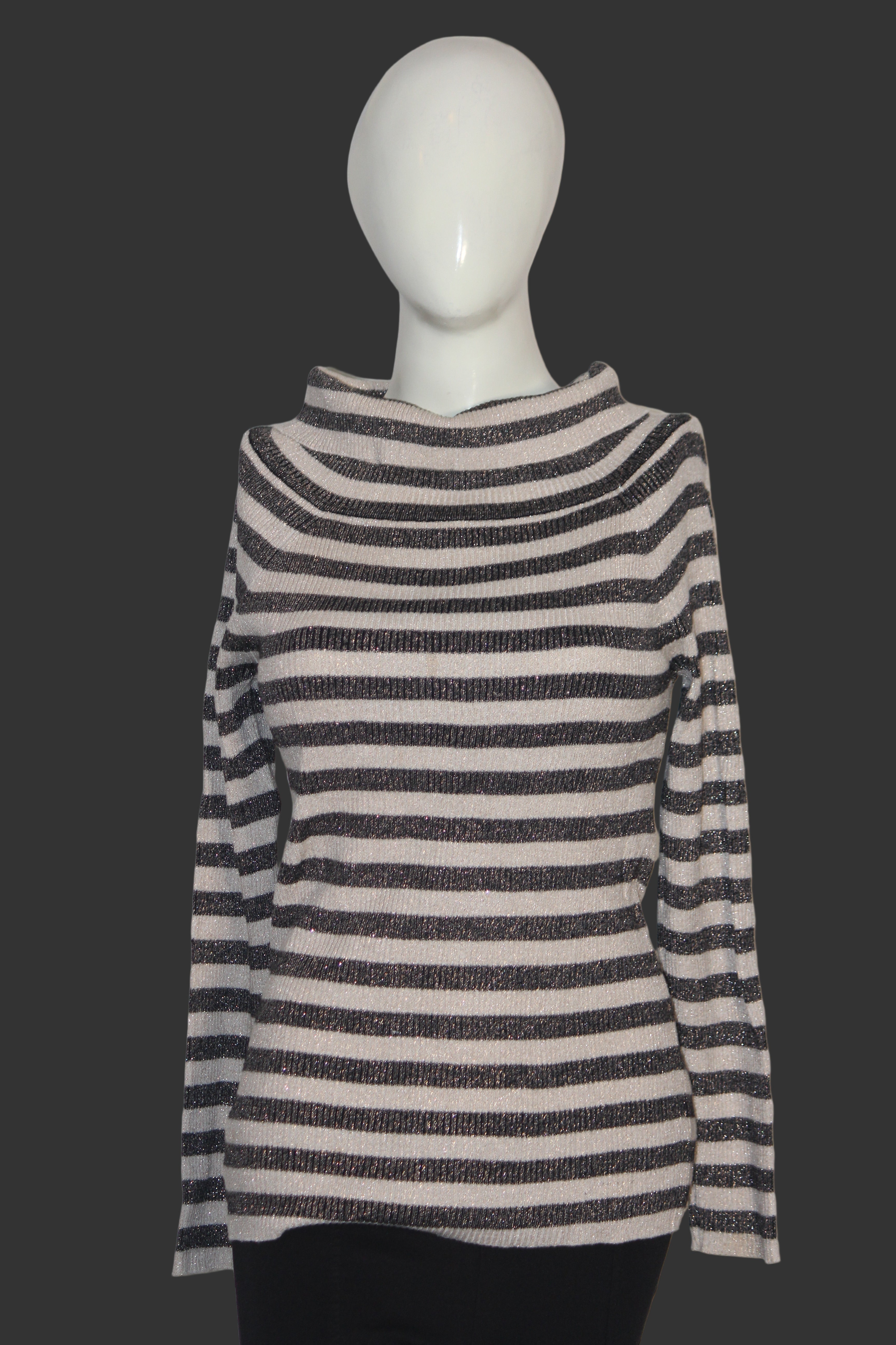 Add a playful edge to your winter wardrobe with this black and white striped high neck from George. The subtle metallic fibers give it a chic shimmer — perfect for casual yet stylish looks.
