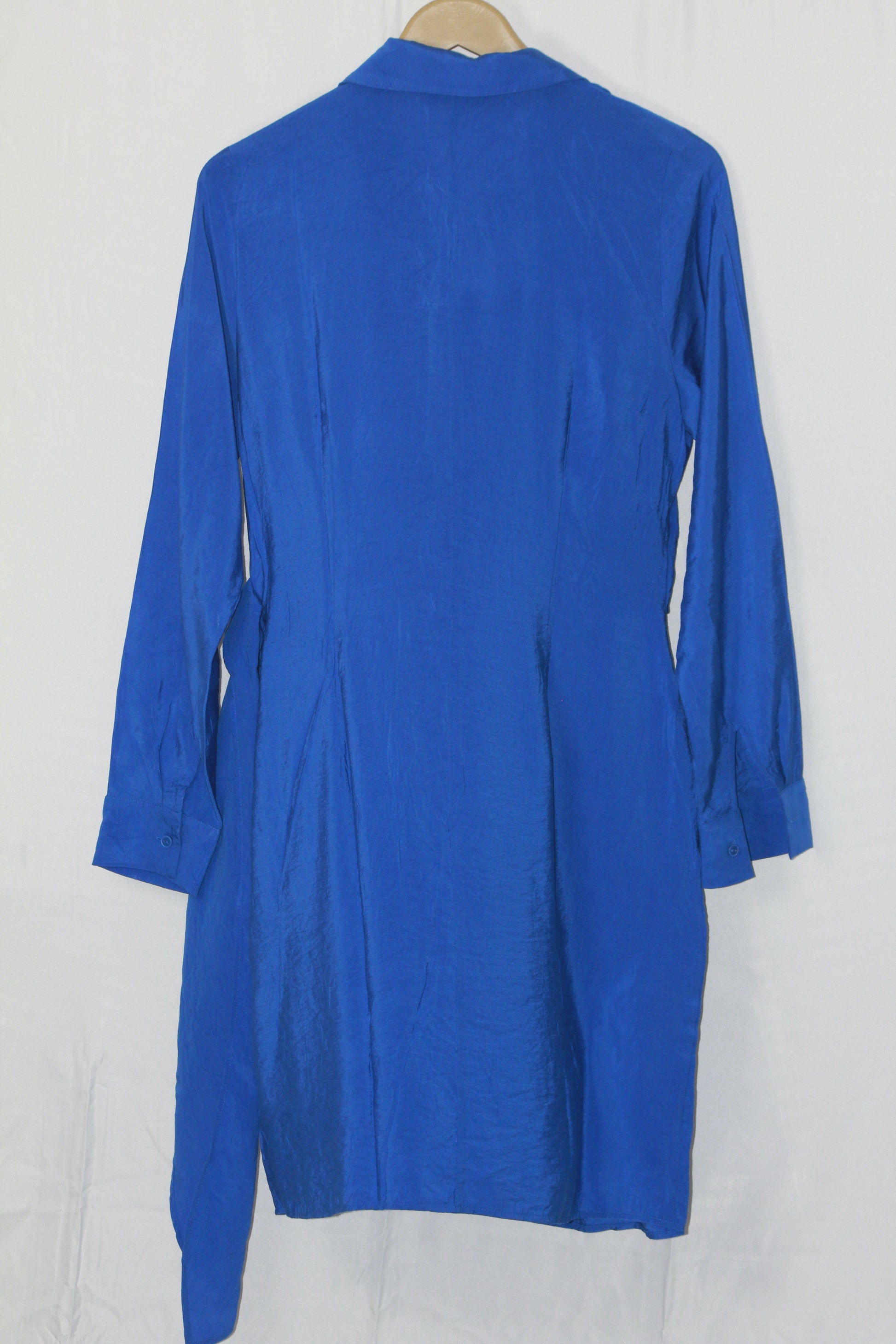 - A stylish full-sleeve button-down dress in rich blue."Size: Medium
