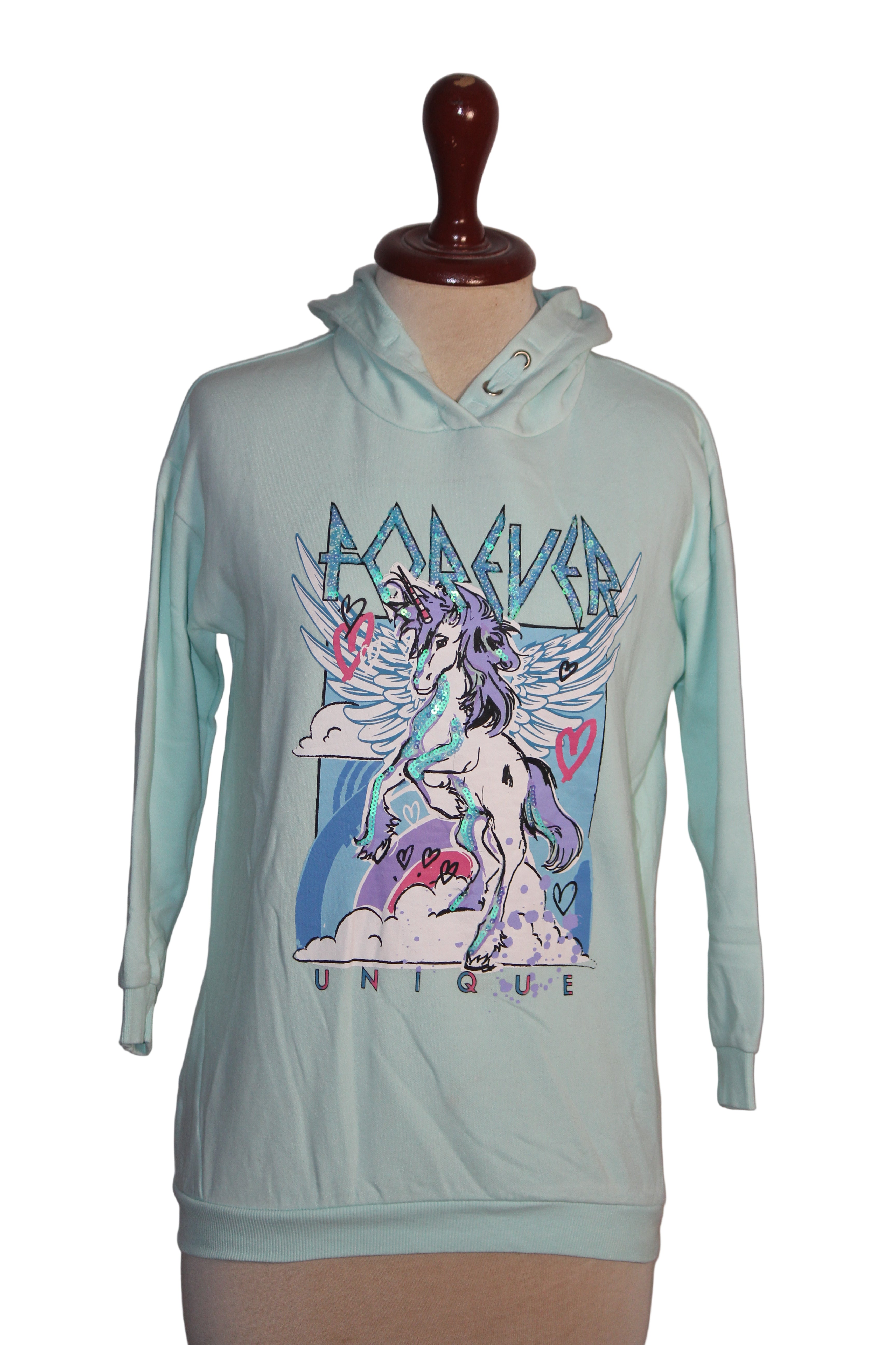 A simple yet stylish green hoodie by F&F, small size with a 19-inch chest and 25-inch length. Ideal for everyday comfort.