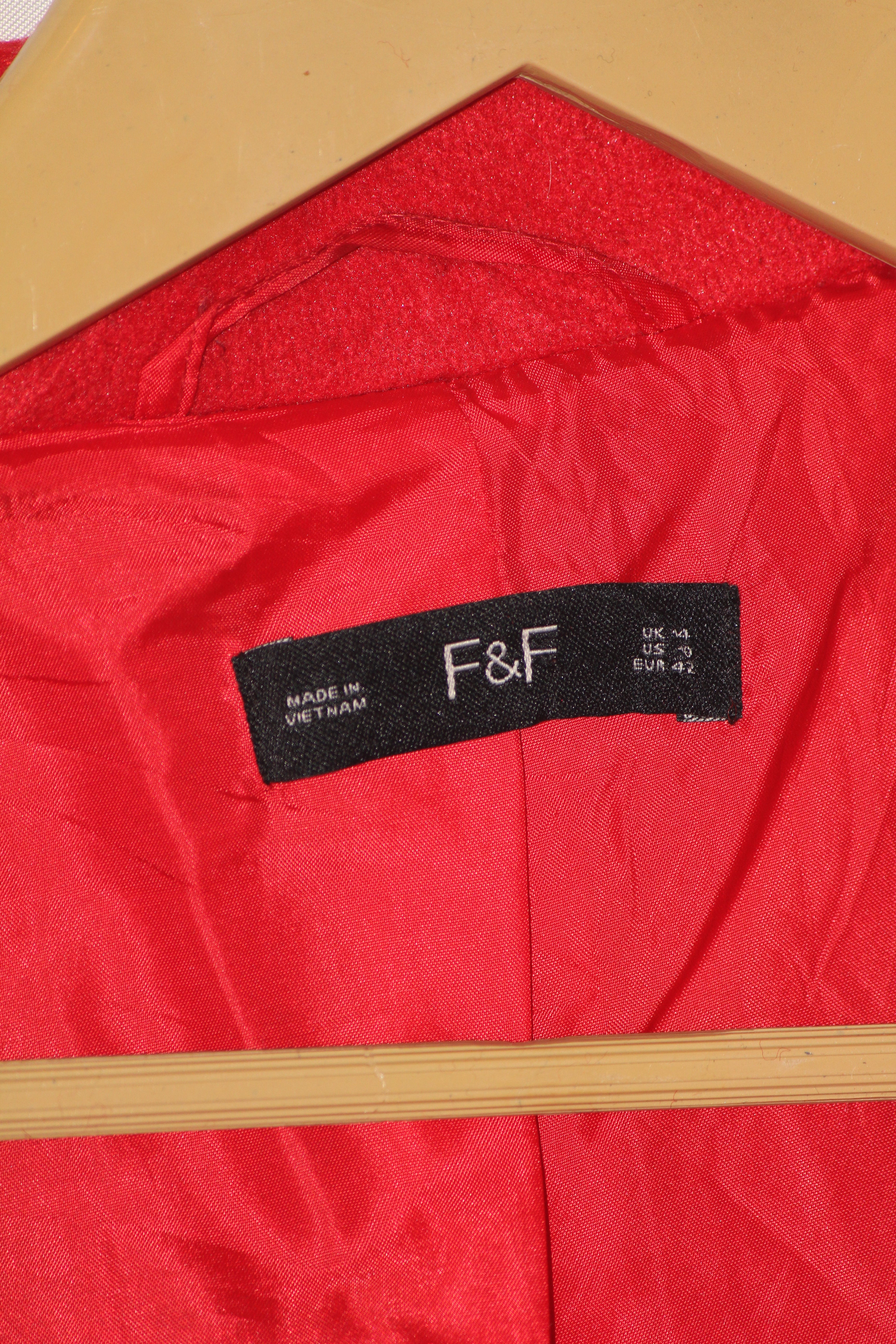 Brighten your winter style with this F&F red long coat. The soft polyester-viscose fabric ensures a comfortable fit, while the bold color adds flair to any outfit. A stylish outerwear piece for confident, fashion-forward women.