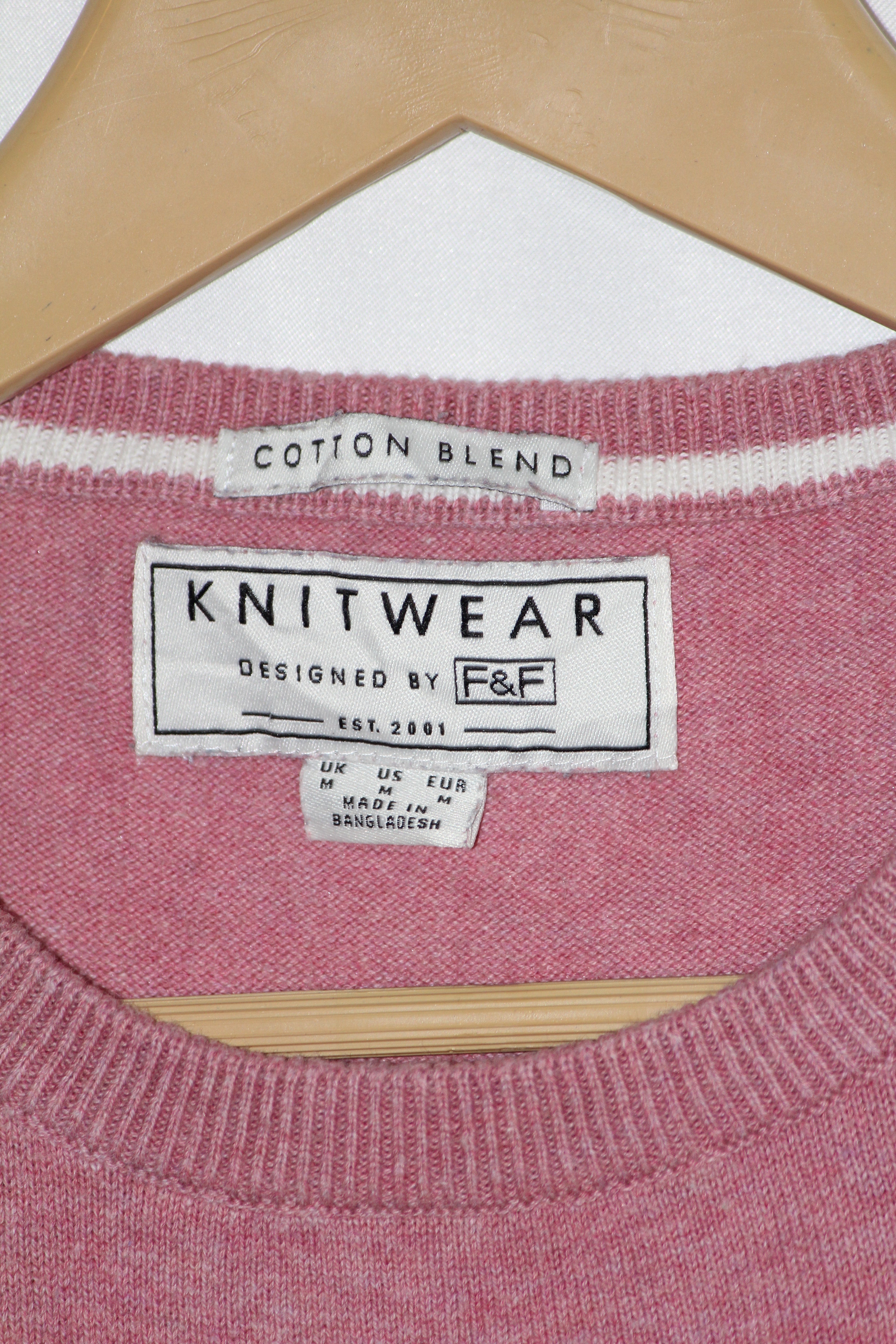 Casual pink knit sweatshirt (Chest 22.5", Length 29", Sleeve 30") – 82% cotton, 18% nylon