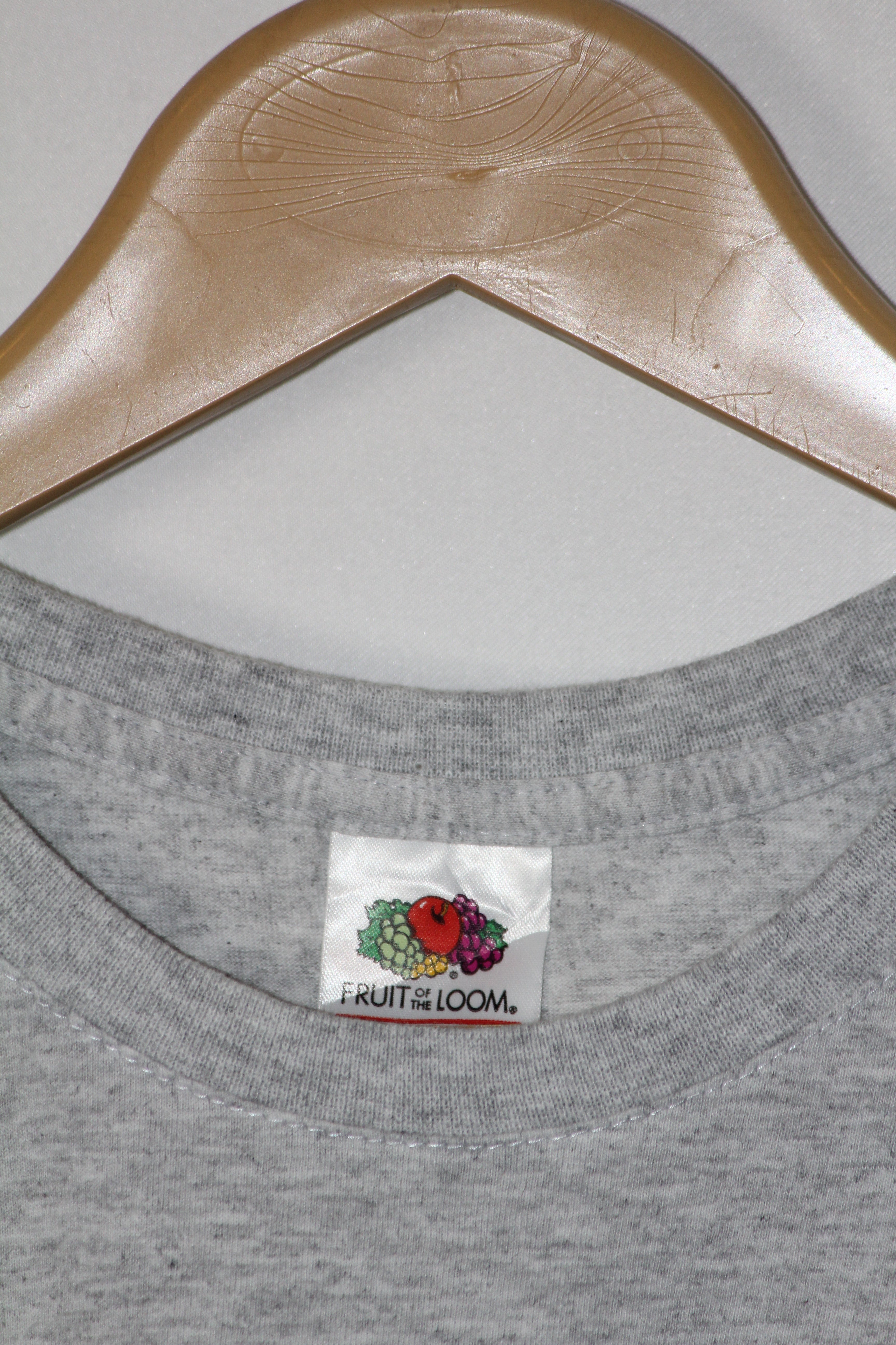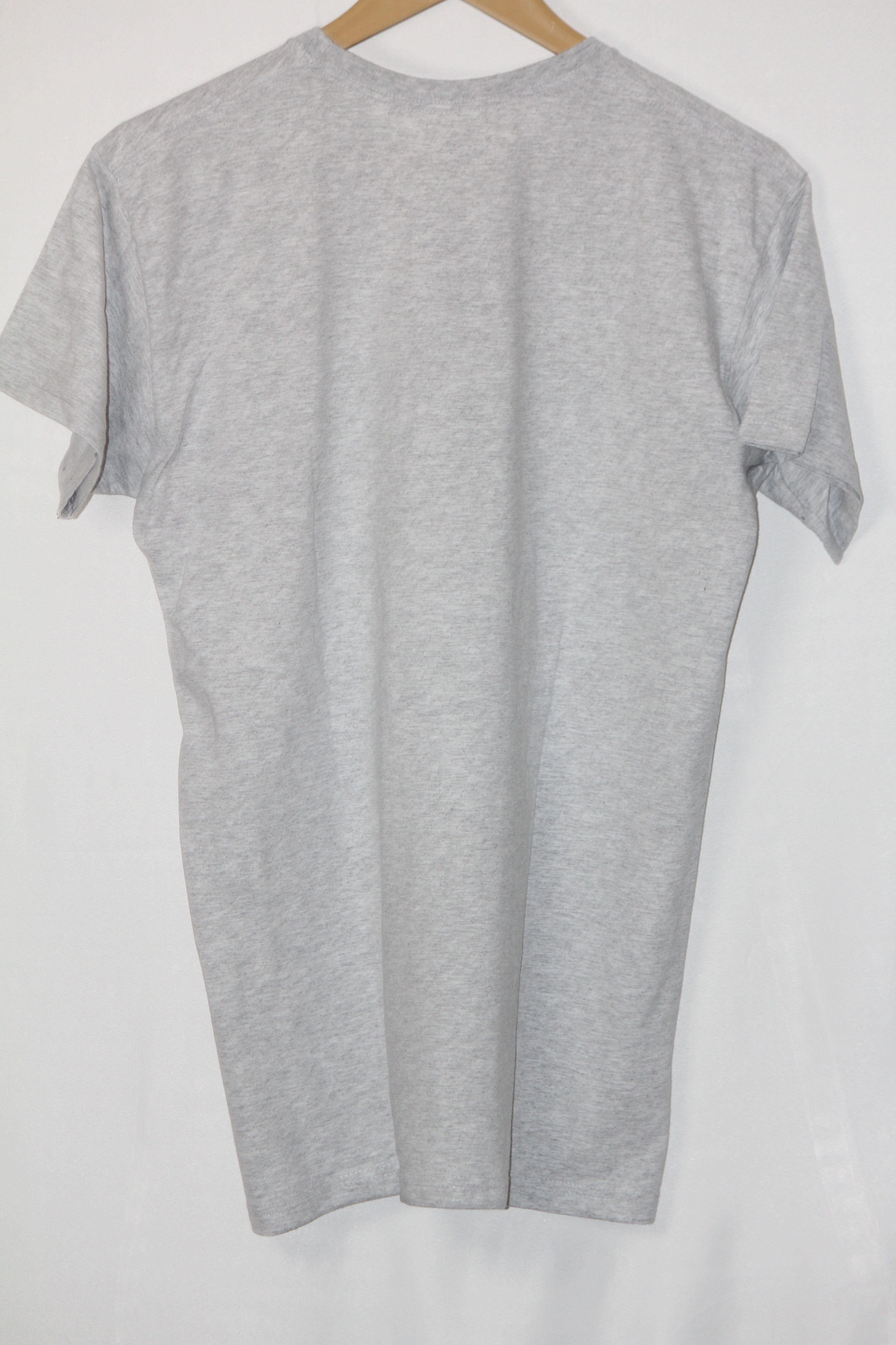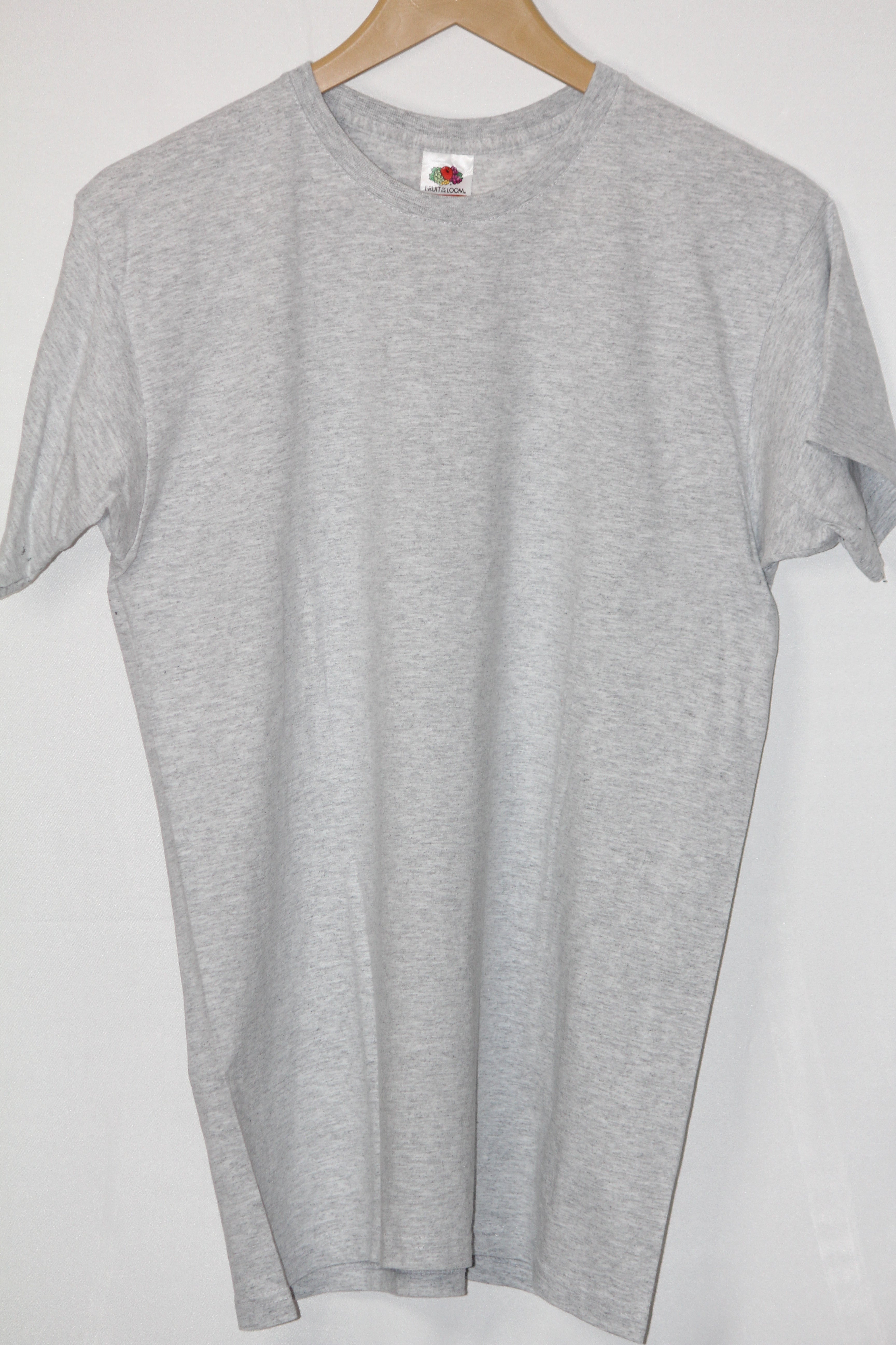 Gray half sleeves T-shirt by Fruit of the Loom made with 97% cotton and 3% polyester. Size: Large – Chest 19", Length 27".