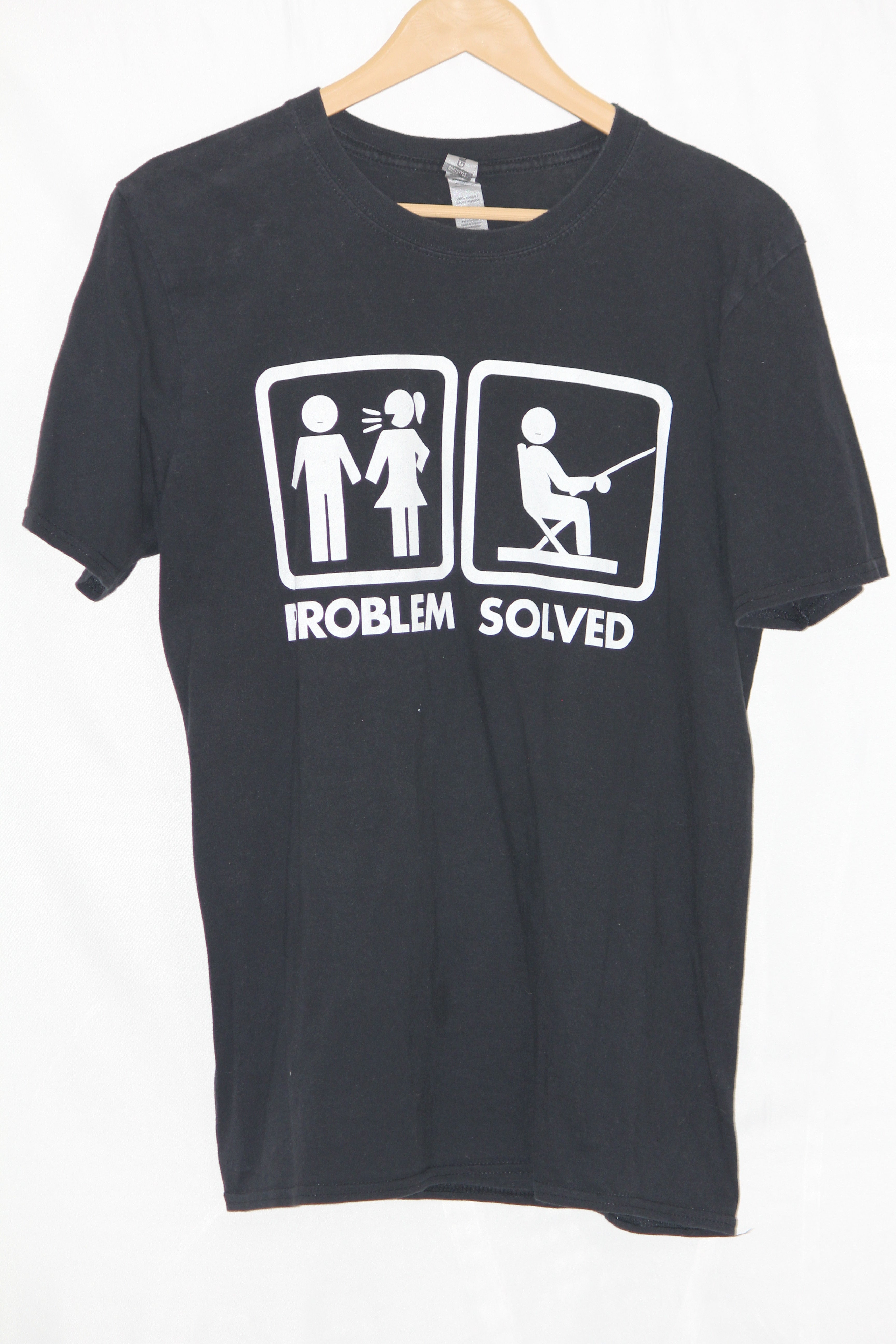 Simple and versatile black t-shirt by Gildan, crafted with 100% cotton. Size: **Chest 20"