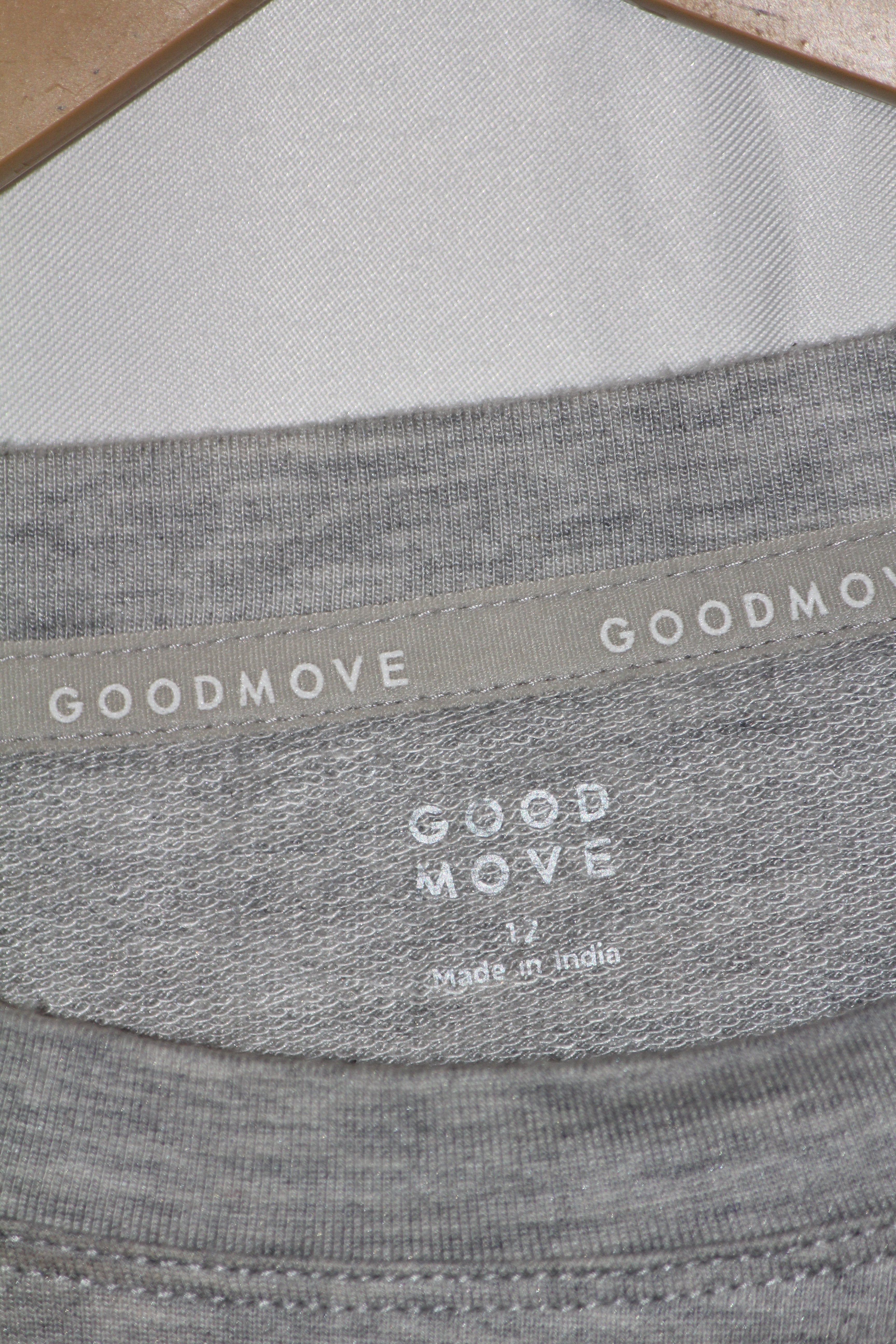 A cozy grey sweatshirt from Good Move, offering comfort and style for casual days. Perfect for layering. Excellent condition.