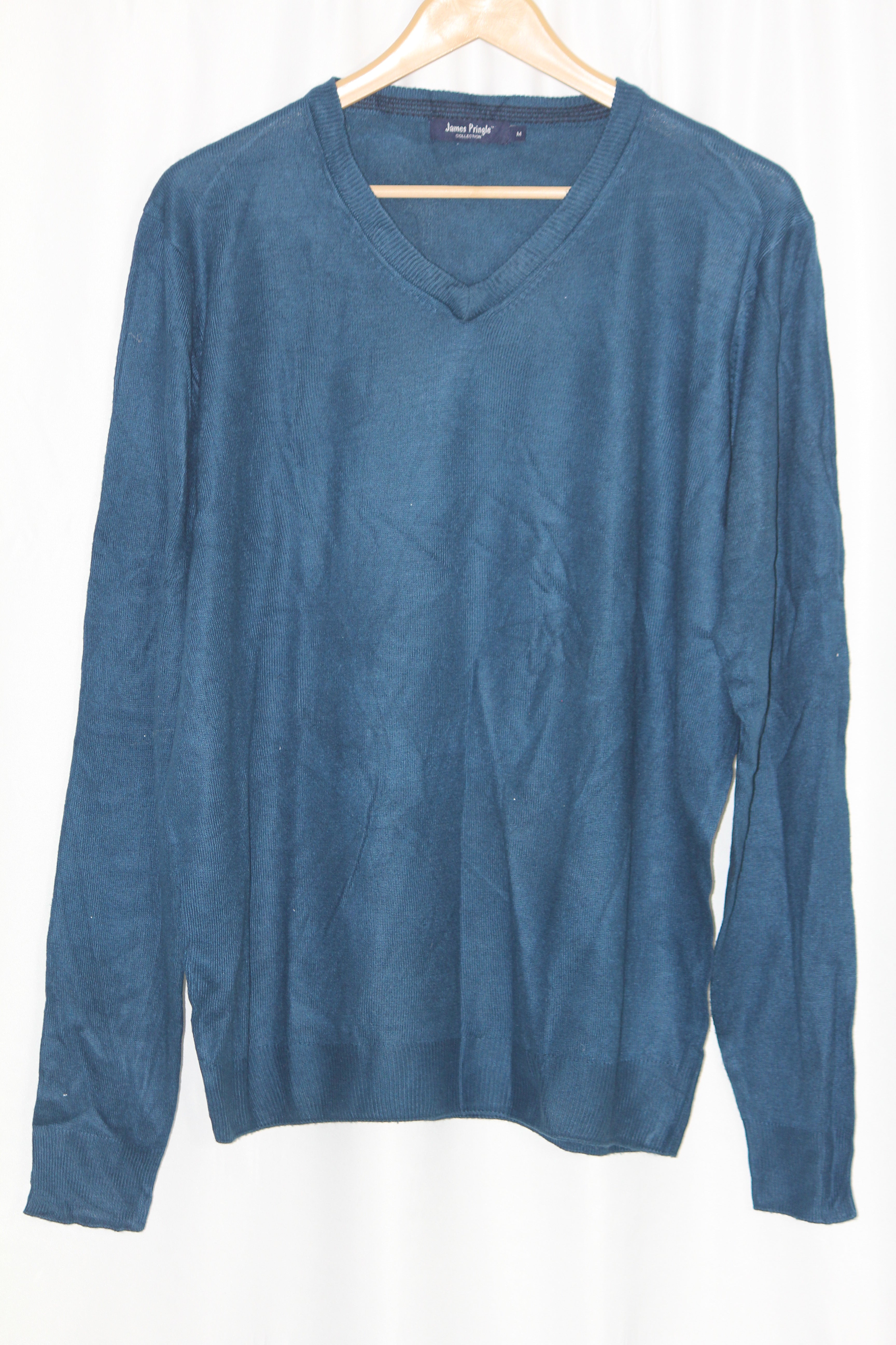 Full sleeve blue sweatshirt by James Pringle. Winter casual wear. Chest 23", Length 27", Sleeve 28". Fabric: 100% Acrylic.