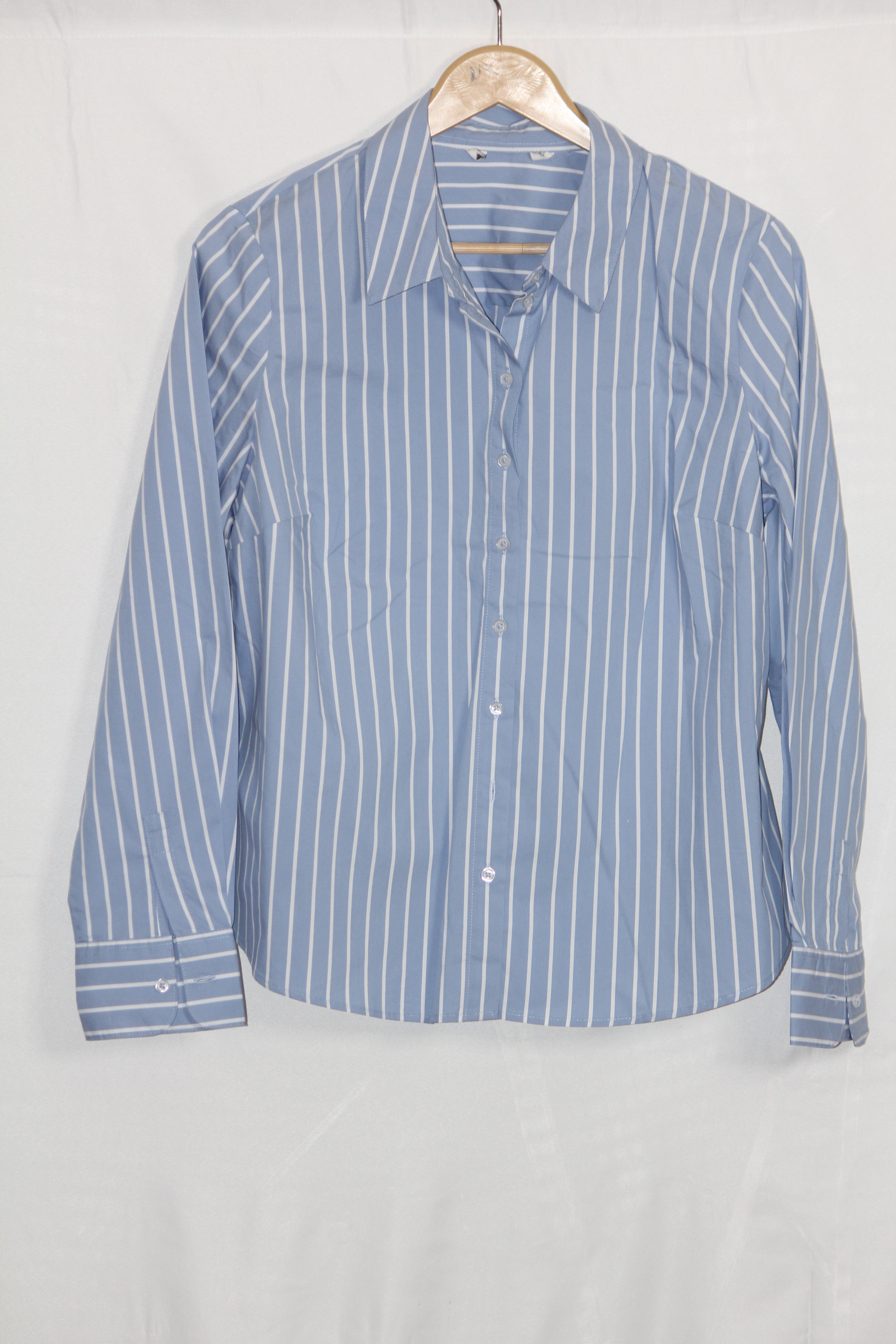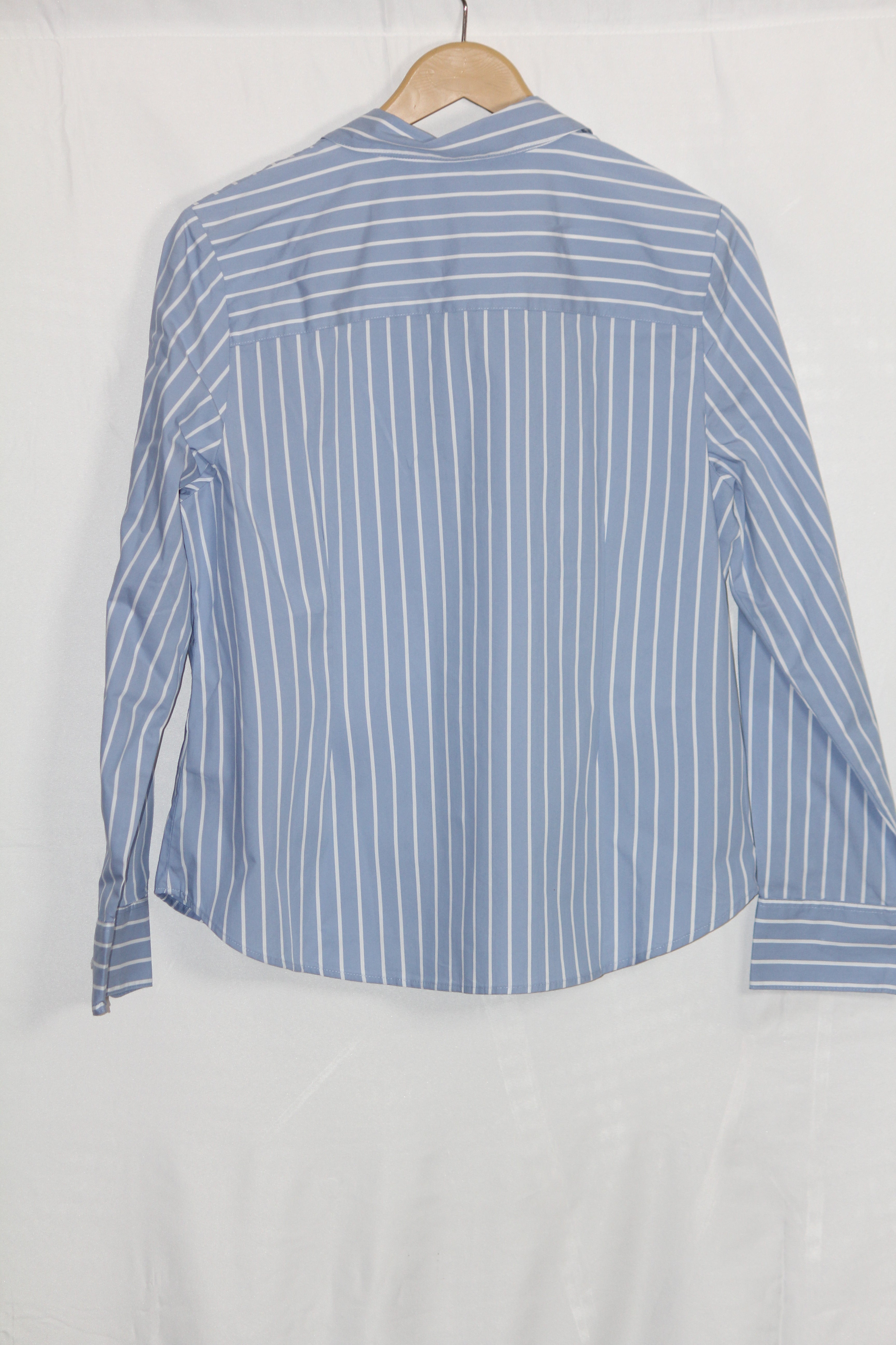 Fresh and stylish, this blue full-sleeve button down from ThriftyFy features white stripes and a soft polyester-elastane blend for a comfortable fit.