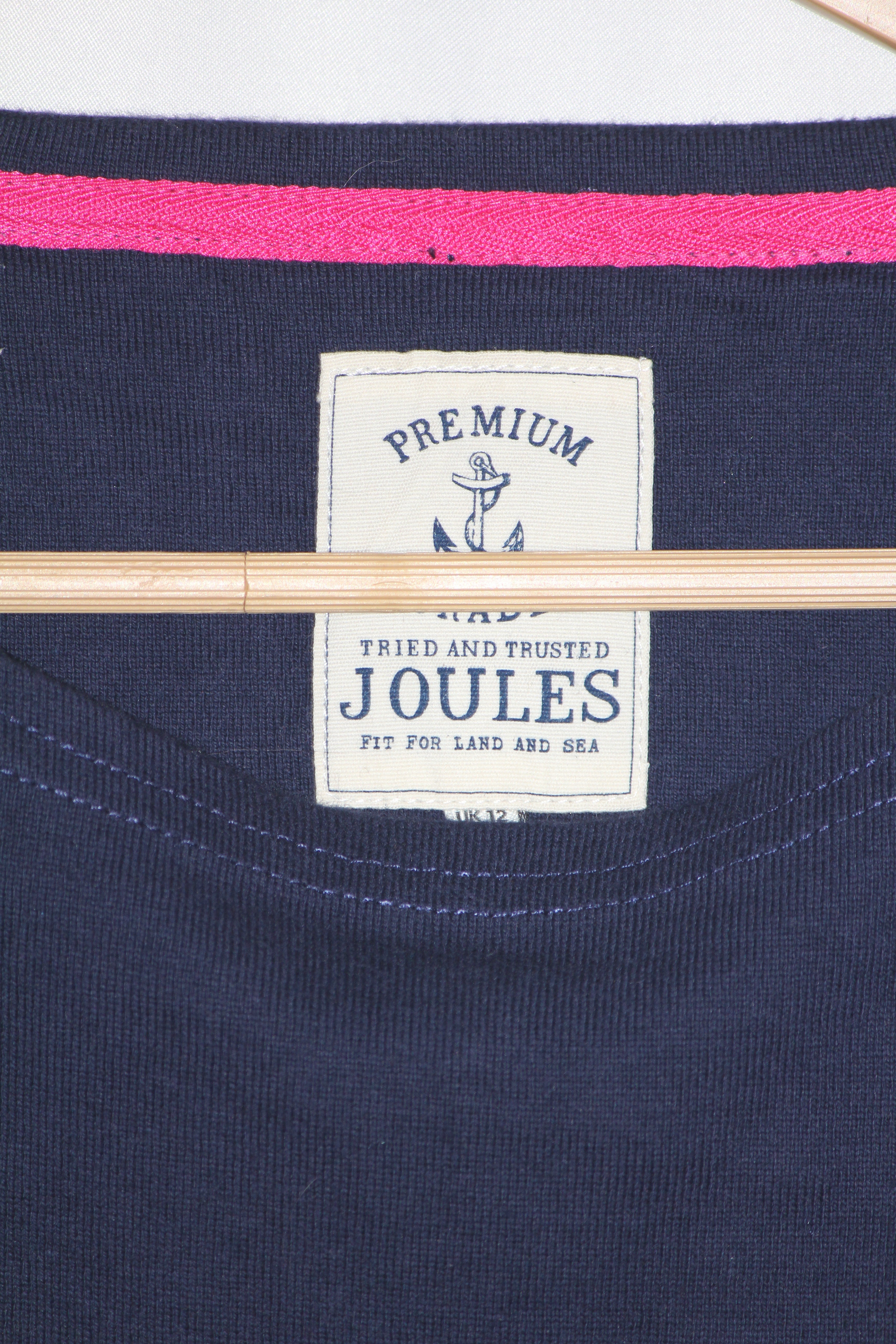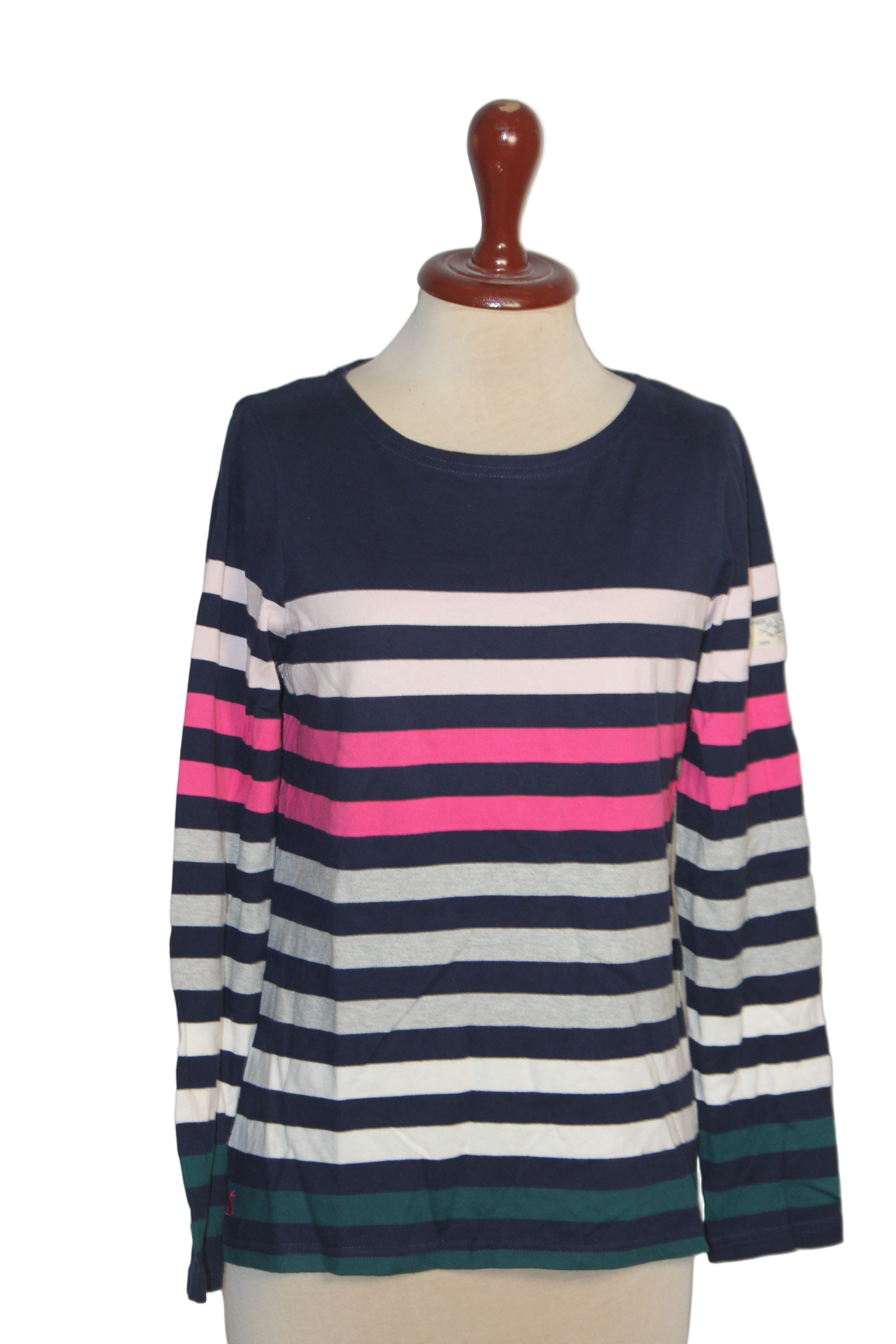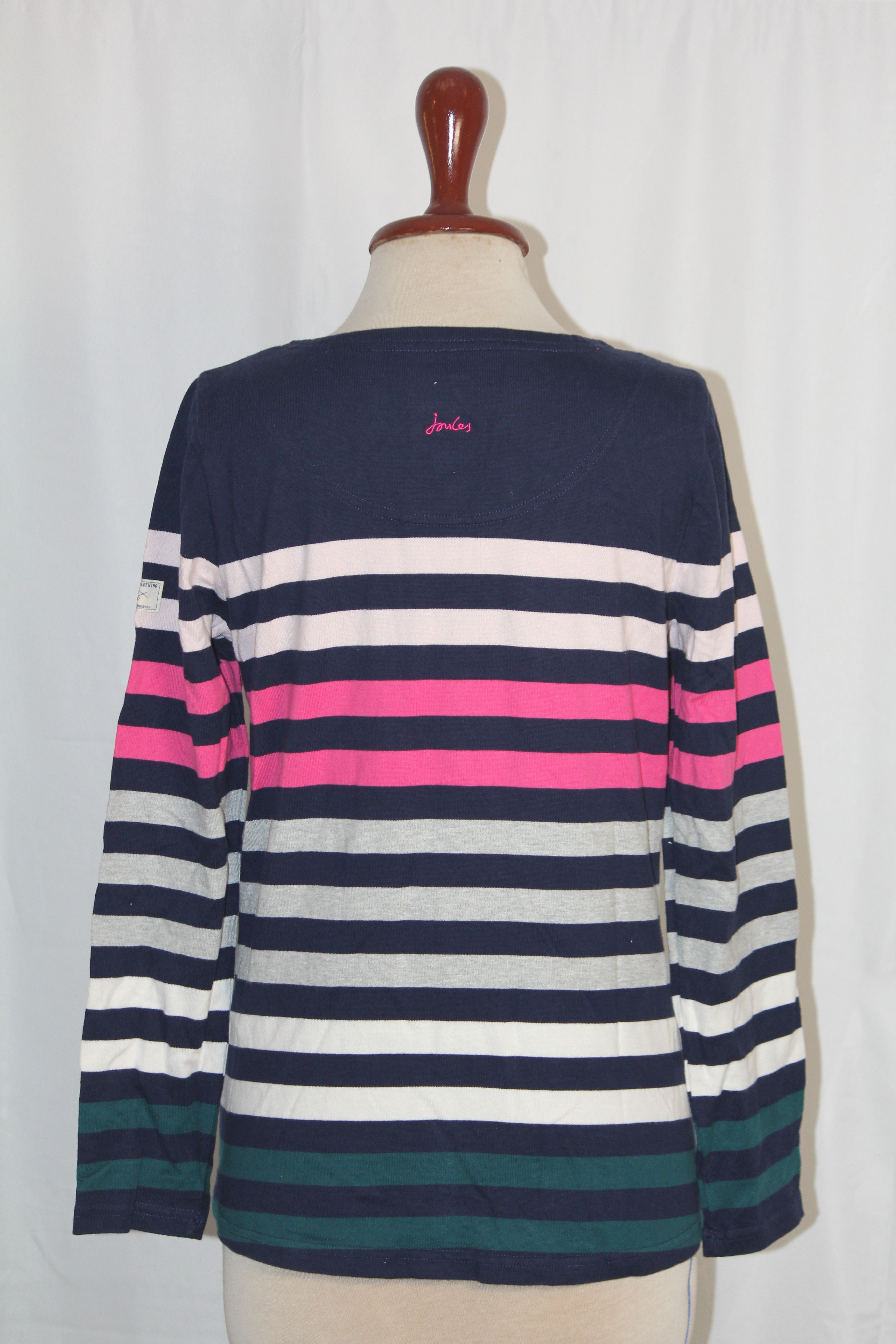 Playful blue, white, and pink striped sweatshirt from Joules, perfect for a fun casual look. Size: Medium.