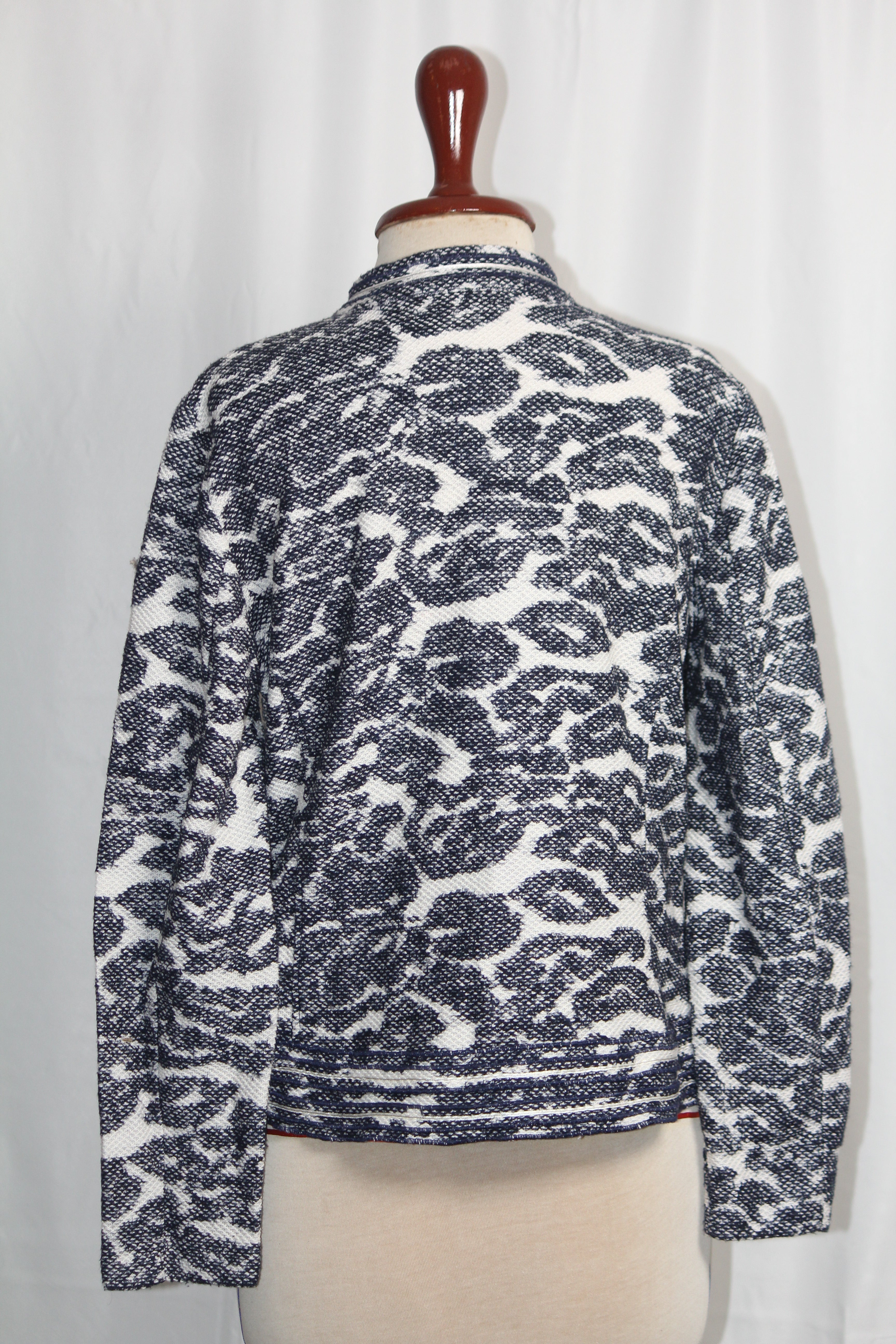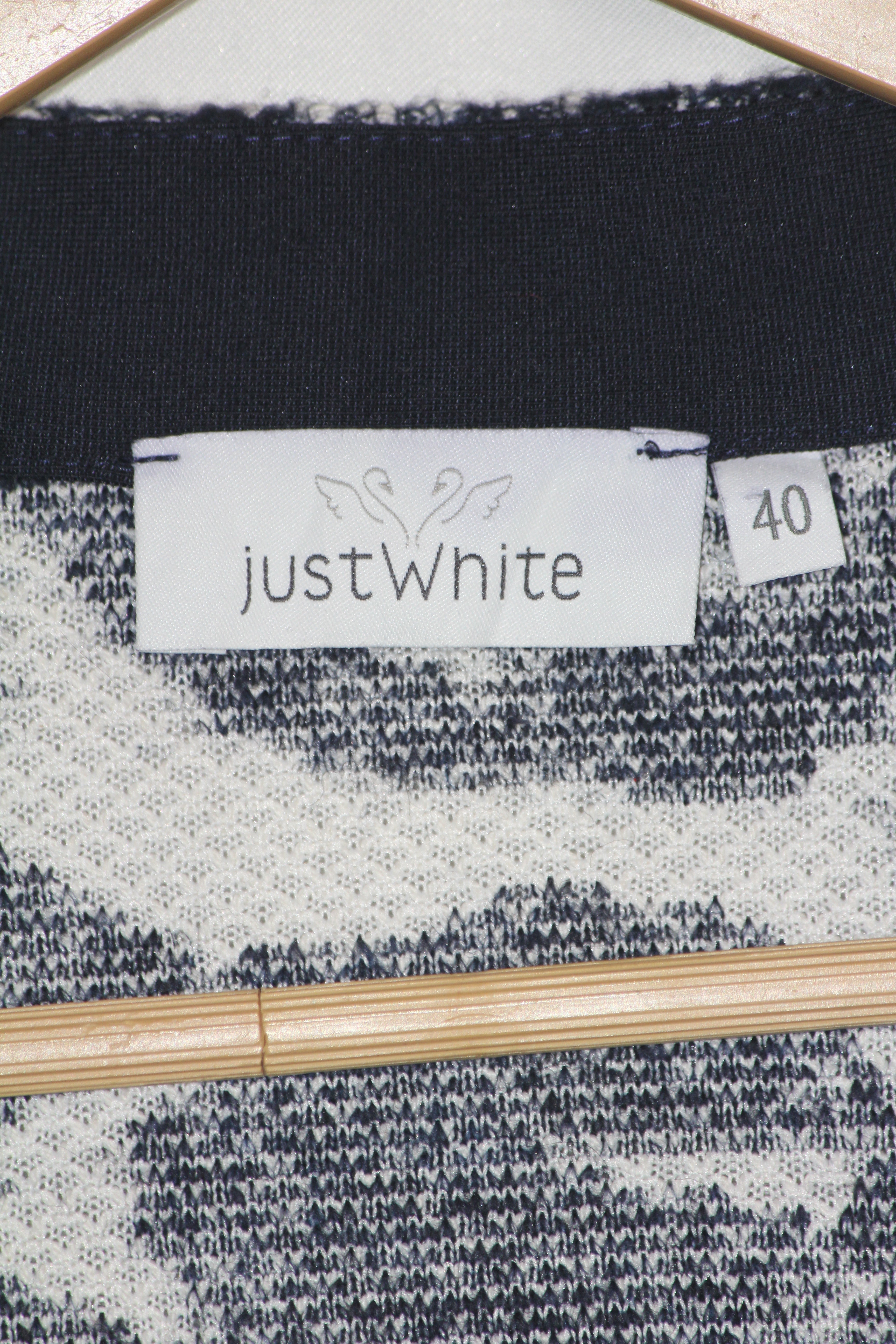 Elevate your outerwear with the Just White Knitted Jacket. This black and white medium-sized jacket offers a stylish and warm addition to your seasonal wardrobe.