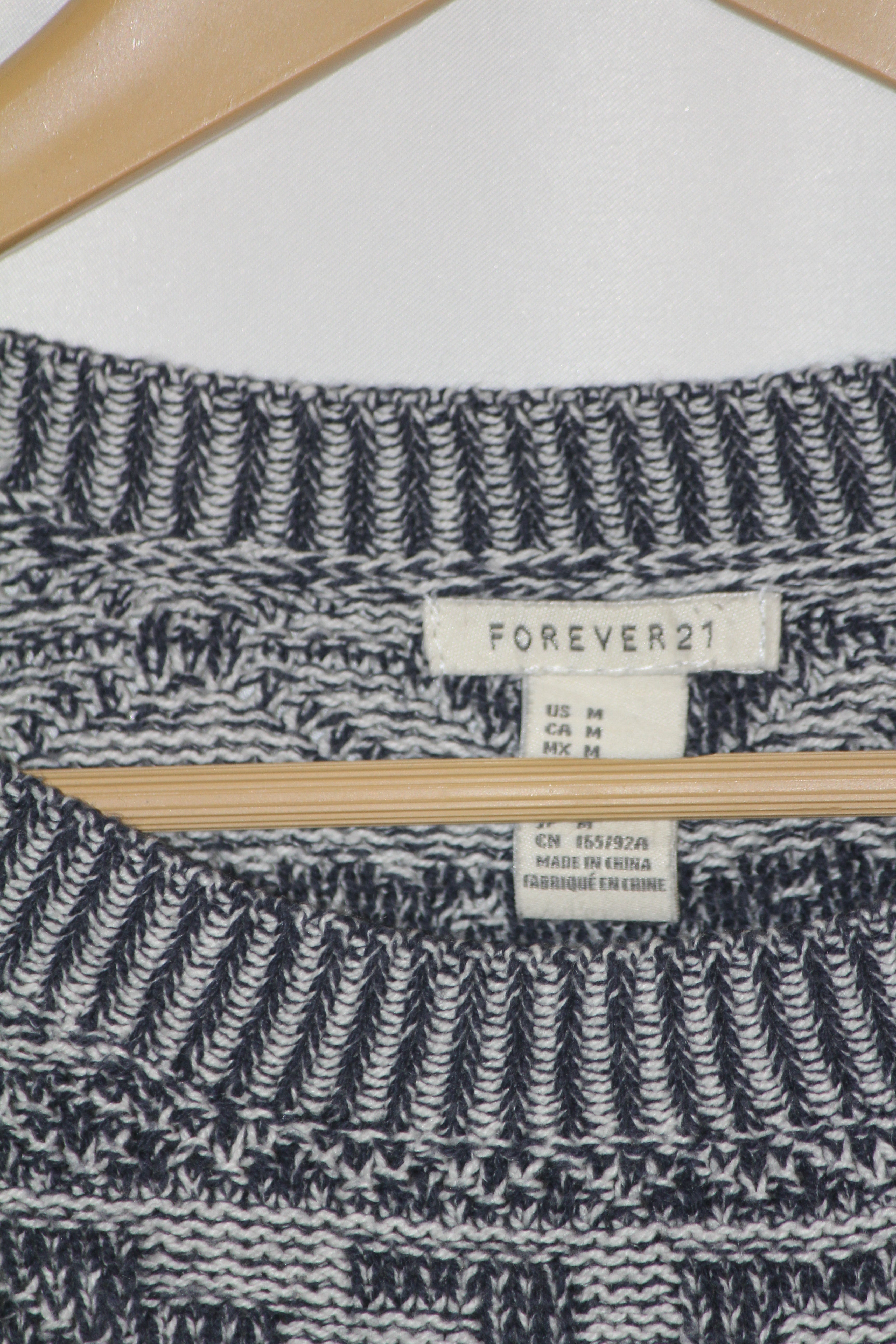 Chic white and blue embroidered sweater by Forever made from a soft cotton blend, combining comfort with subtle detailing.