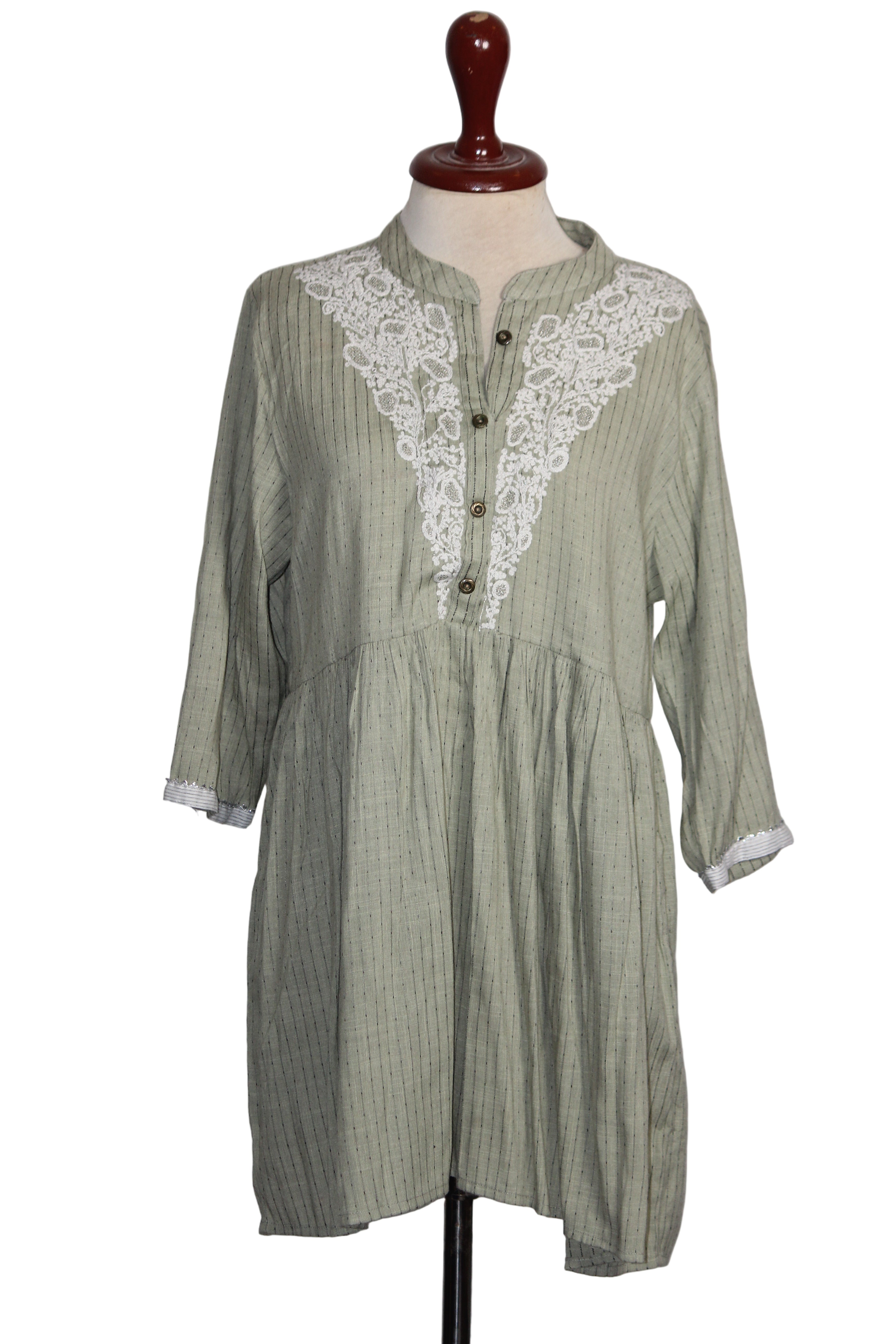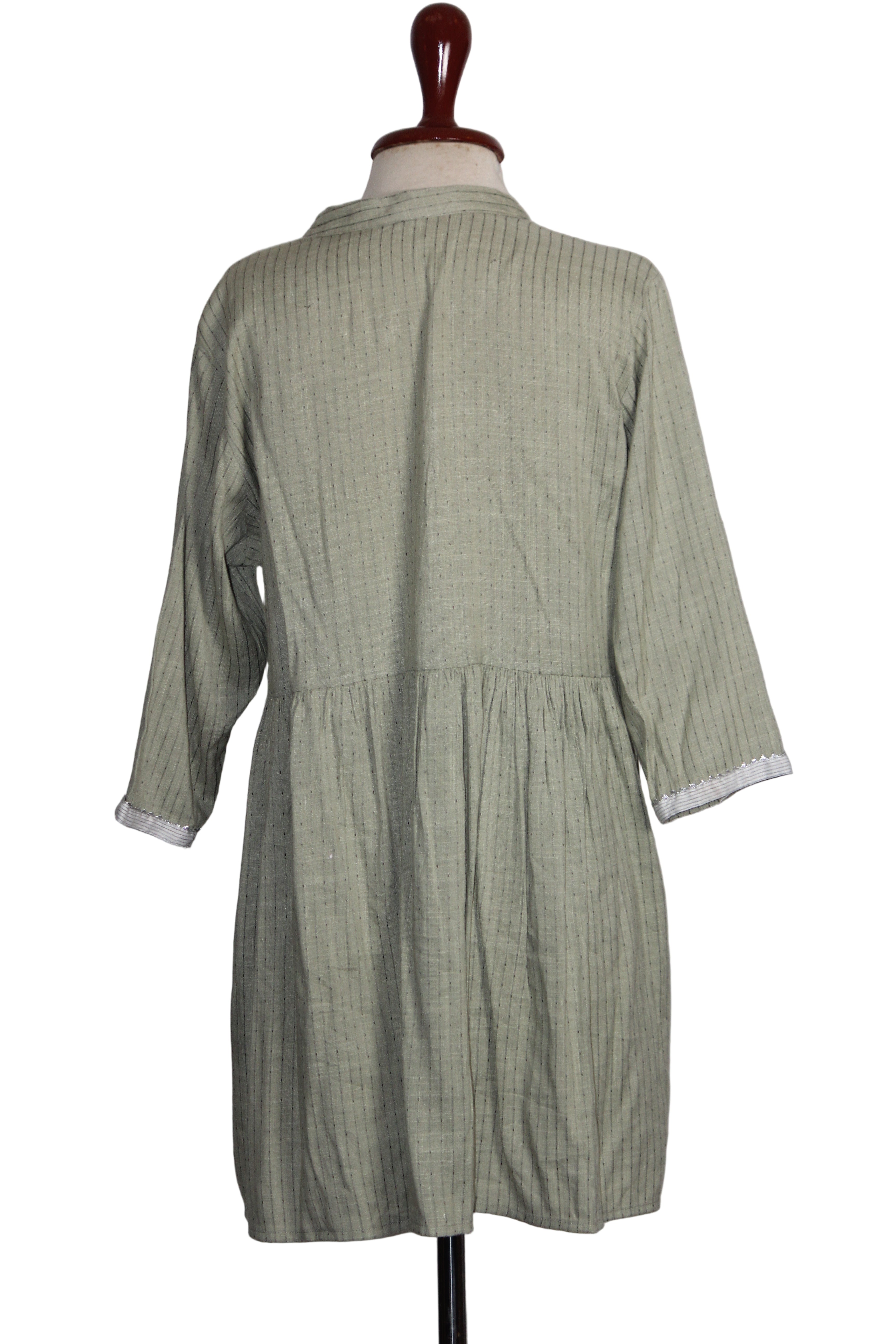 Full sleeve sea green frock style kurti by KF. Size: Small (Chest: 19", Length: 31", Sleeve: 16"). Fabric: 100% Cotton.