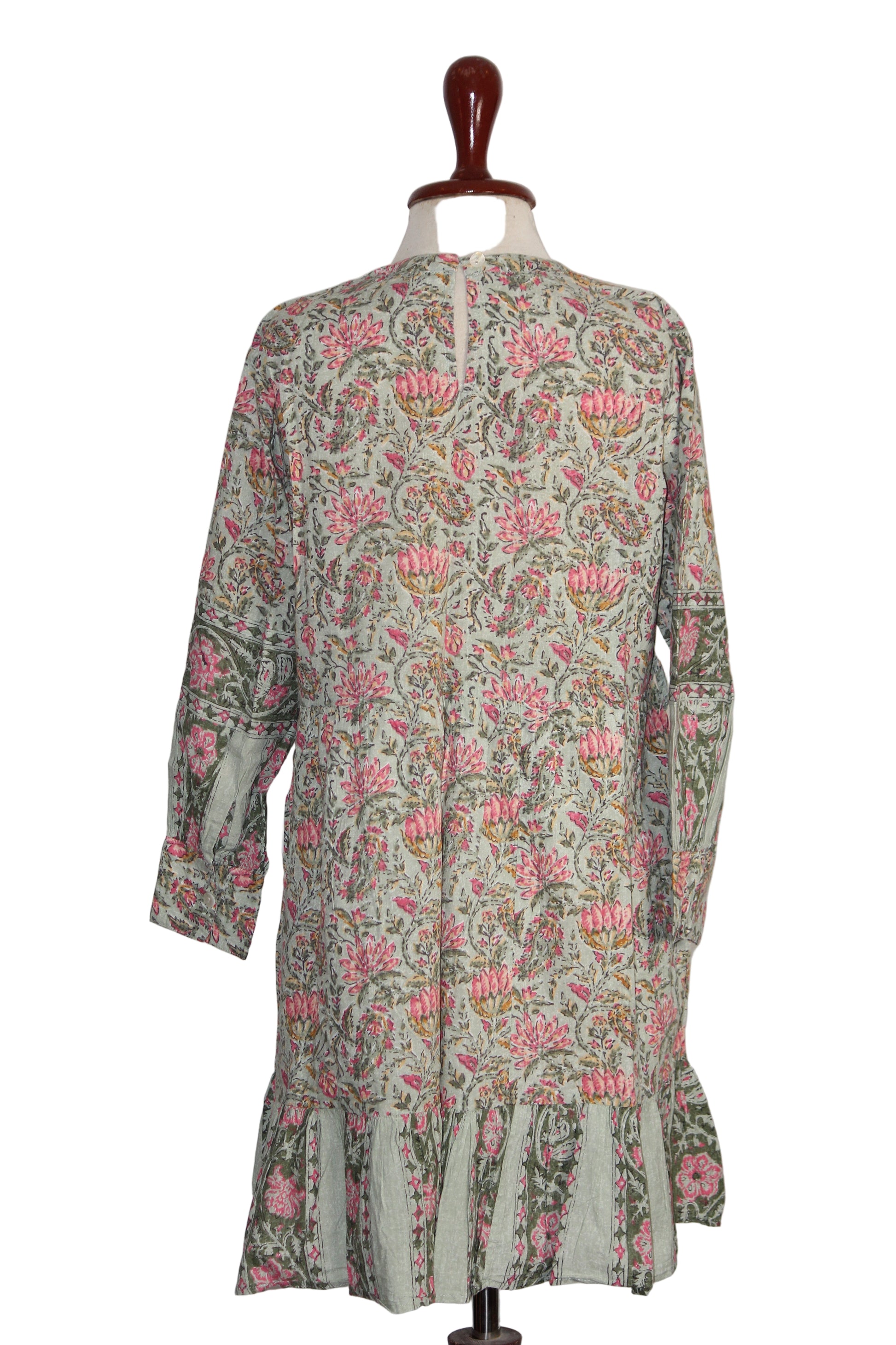 Full sleeve feroza floral frock style kurti by ThriftyFy. Size: Medium (Chest: 20", Length: 33", Sleeve: 19"). Fabric: 100% Cotton.
