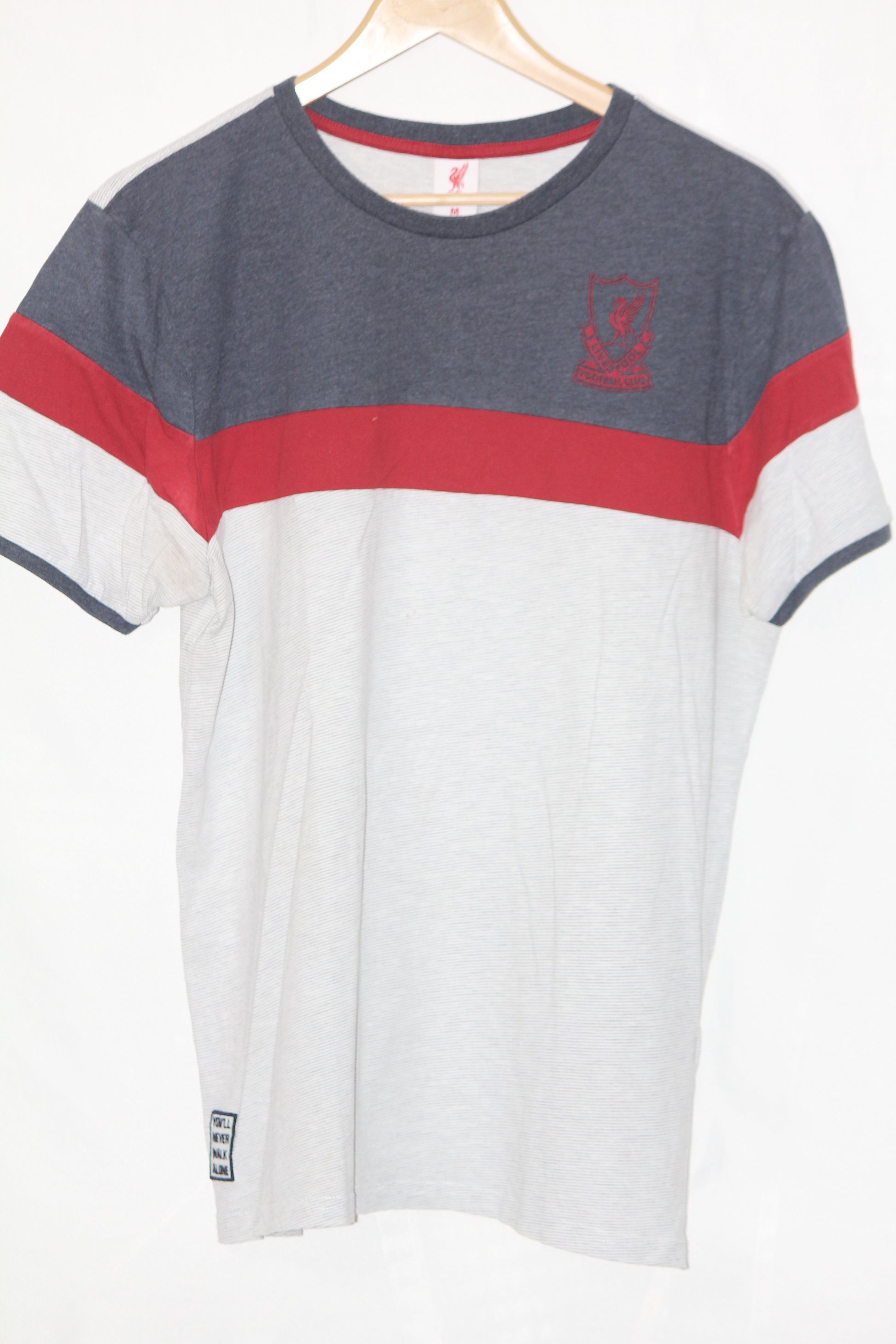 White half sleeves T-shirt by L.F.C made with 65% cotton and 35% polyester. Size: Medium – Chest 21", Length 28".