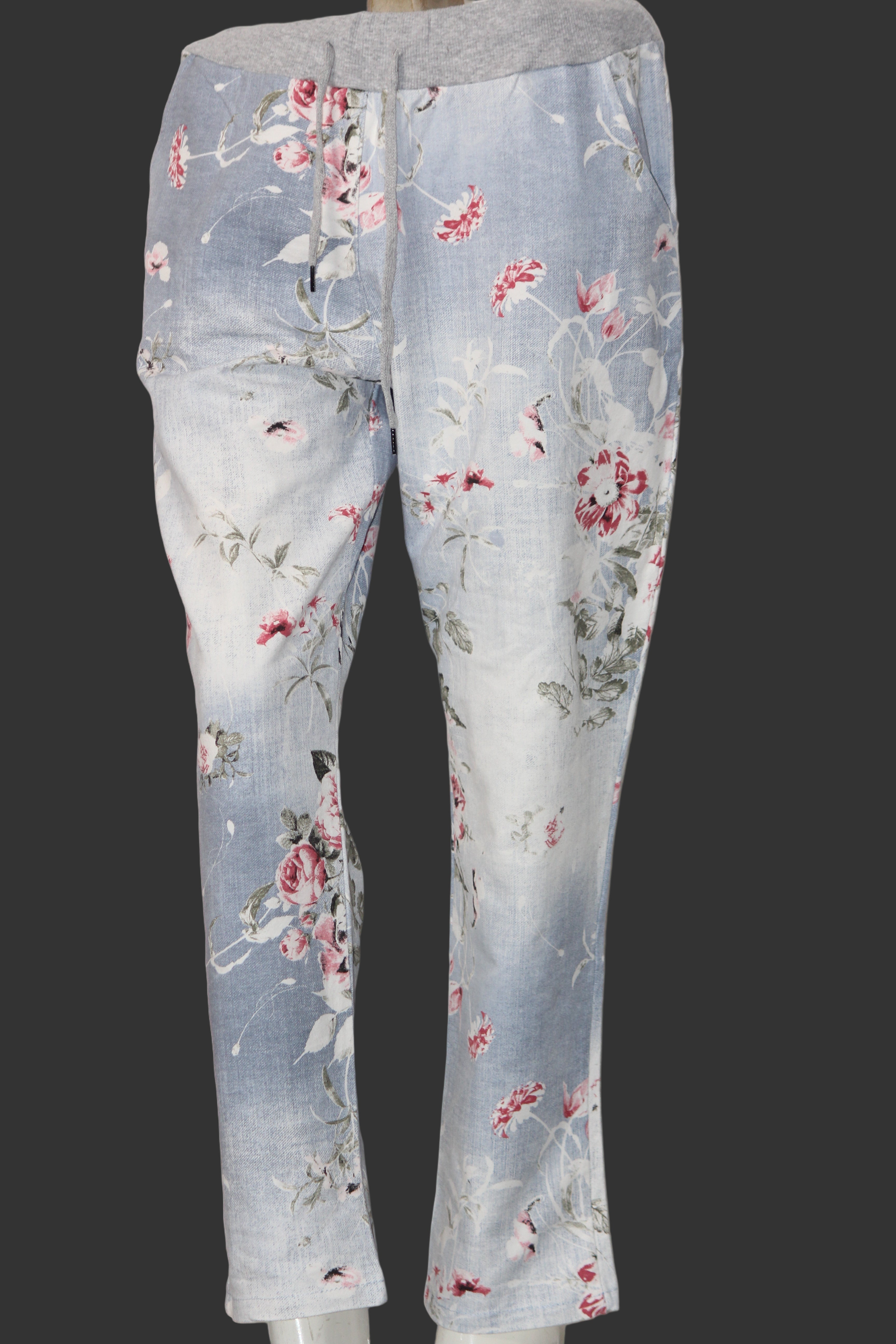 Add charm to your day with this blue trouser featuring a red floral design. Crafted by ThriftyFy from a soft cotton-elastane blend, it’s comfy, trendy, and feminine.