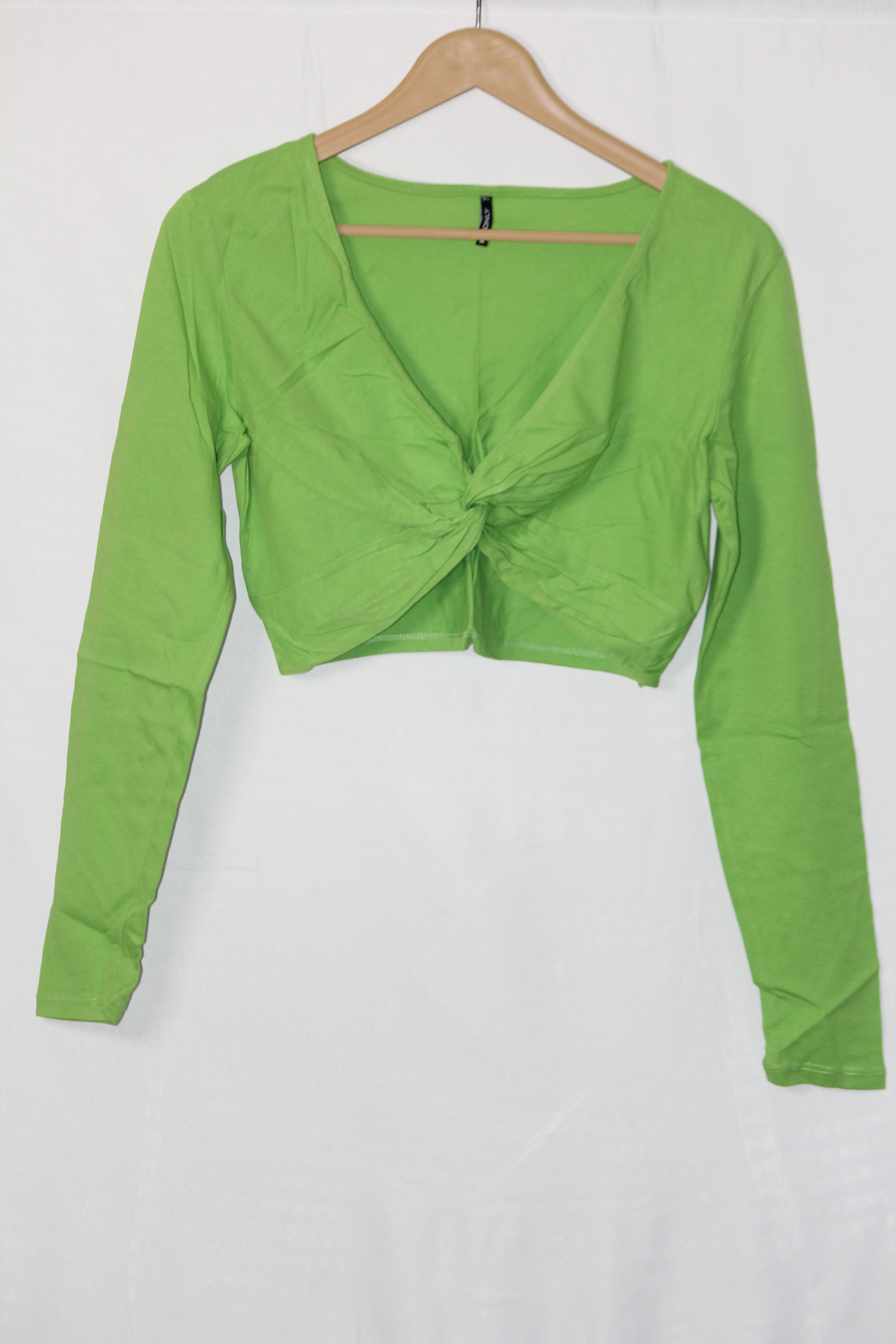 Light and natural, this full sleeve crop top by Only is made with 100% Cotton. Size Medium with chest 16", length 13", sleeves 22". Breathable and soft, great for warmer days.