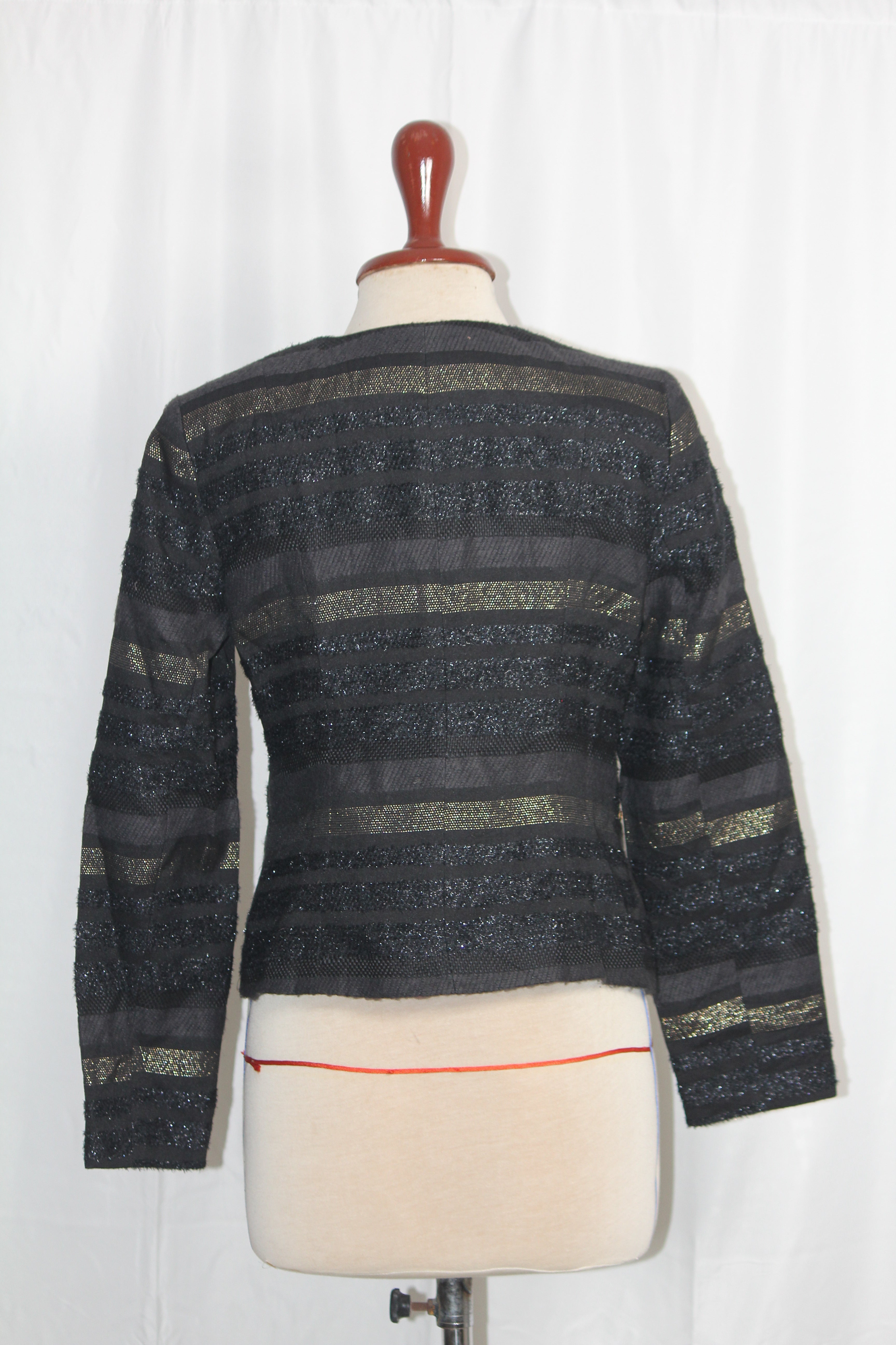 A small-sized M&Co black zipper jacket featuring an 18" chest and 23" length. It’s a versatile and stylish piece, perfect for enhancing your casual looks with a touch of class.