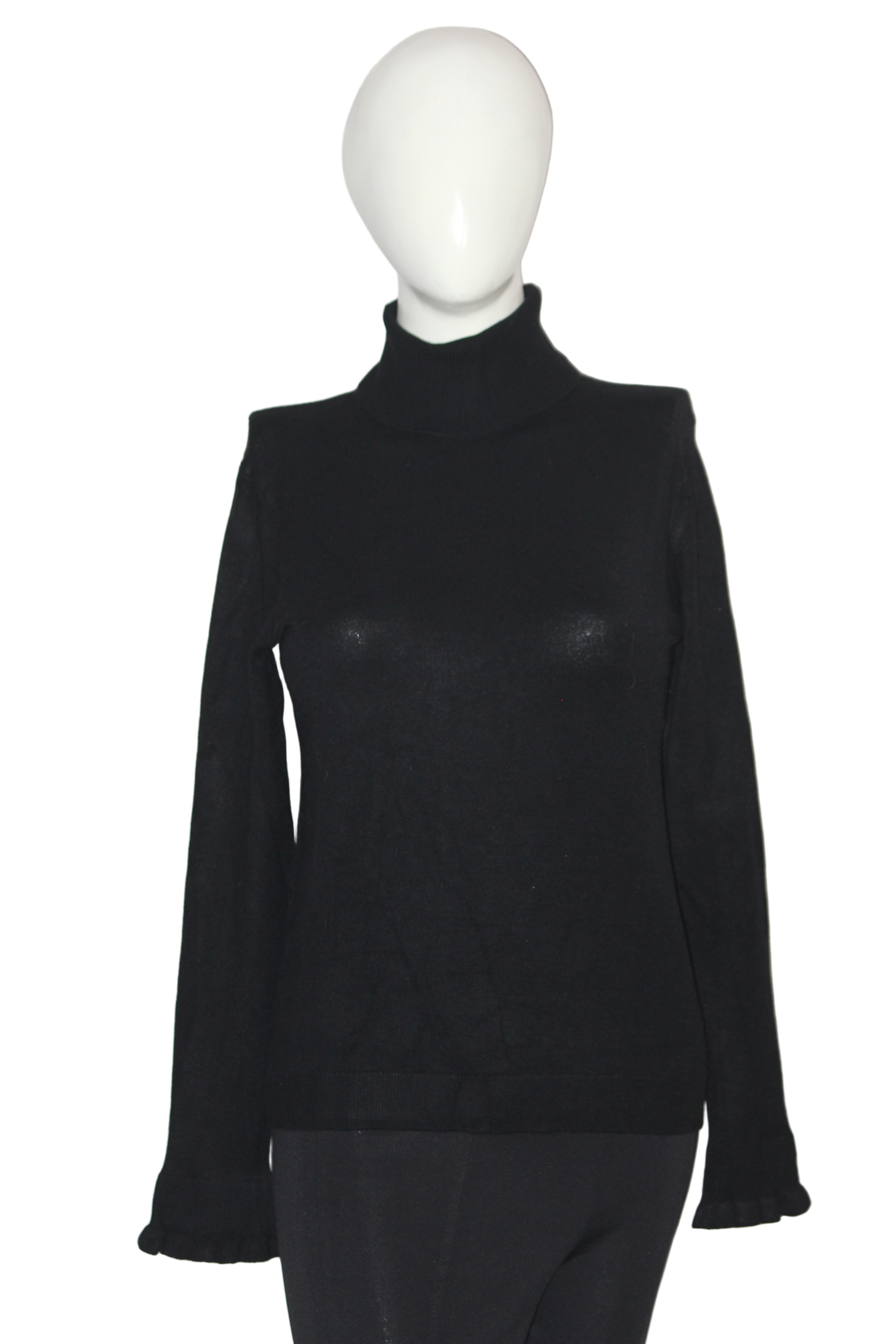 The black high-neck from Mango redefines chic simplicity. Crafted with a soft cotton blend, it fits beautifully on the body while offering cozy warmth. Style it with jeans, trousers, or skirts for a timeless winter look.