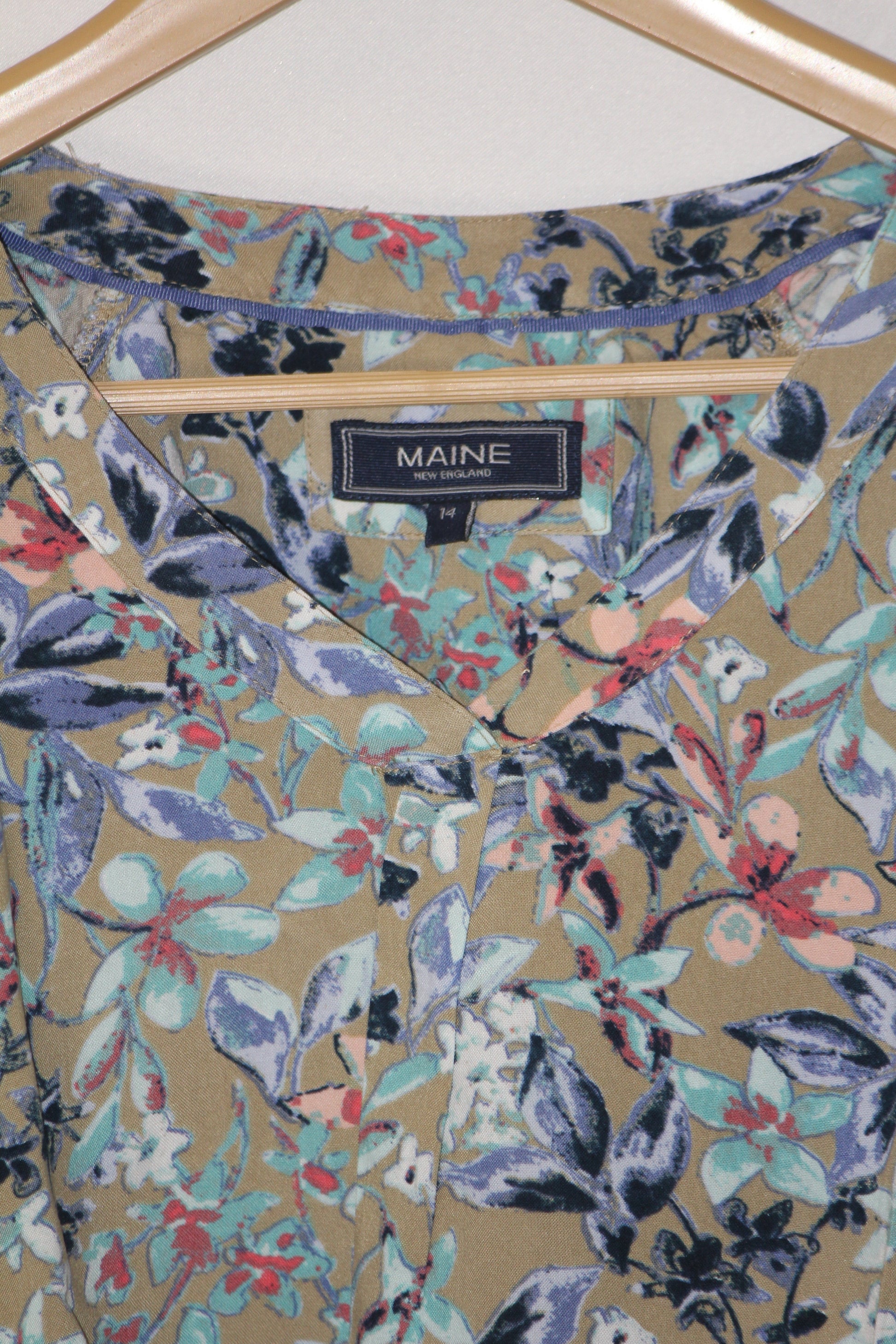 Maine Brown & Blue Floral Full Sleeve Blouse - Medium