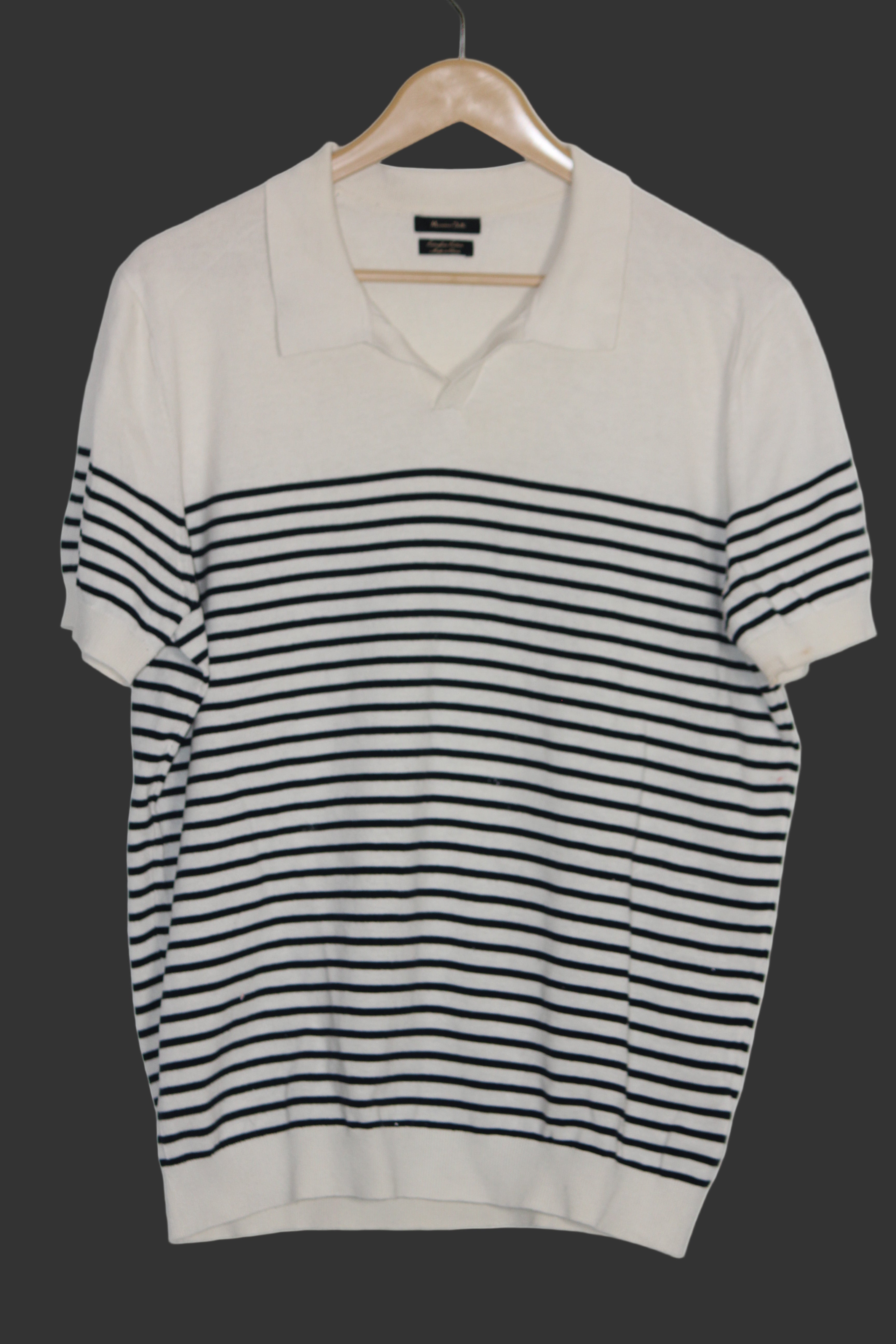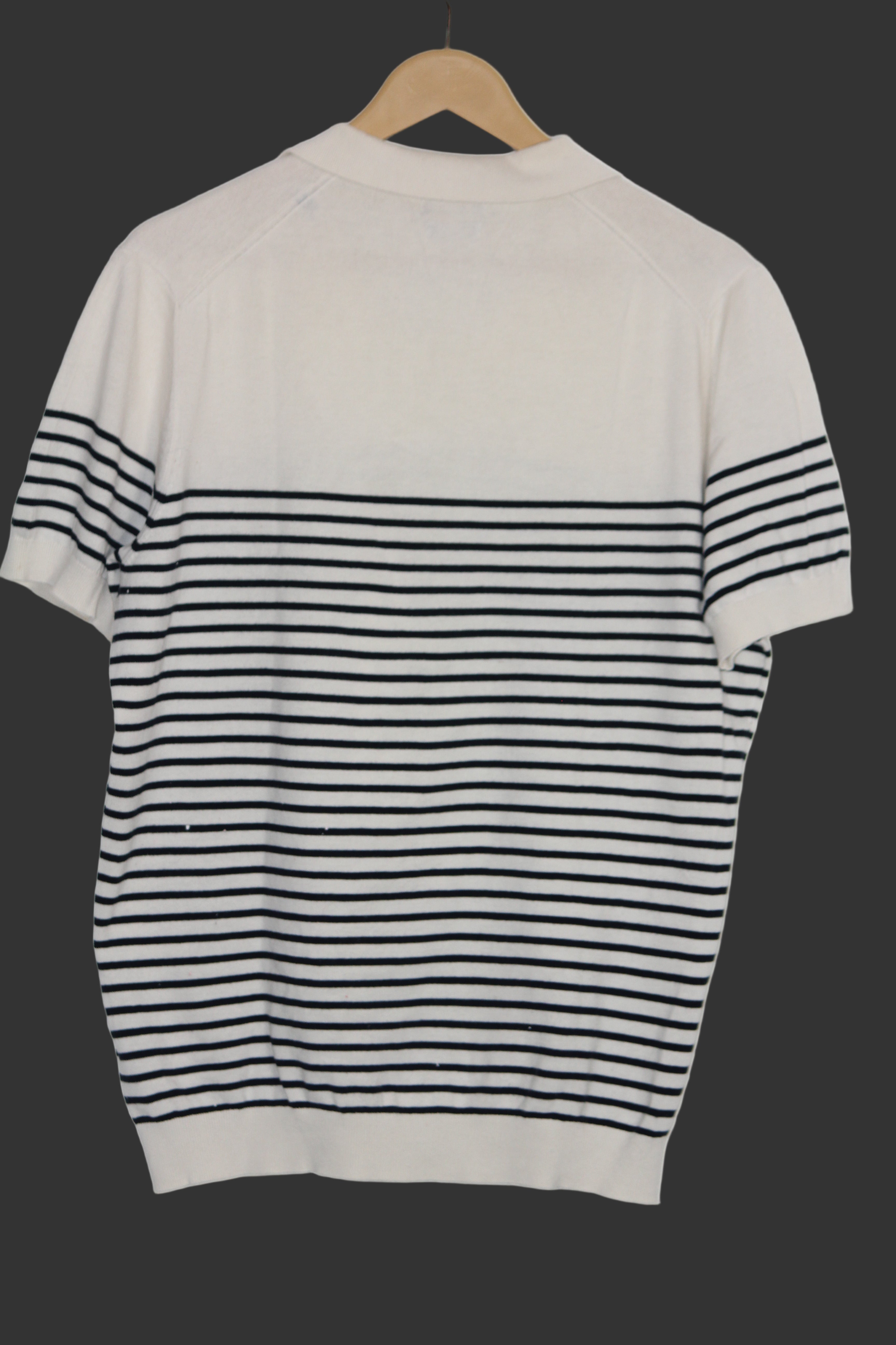White polo T-shirt with black stripes (Chest 24", Length 27", Sleeve 9") – 100% cotton