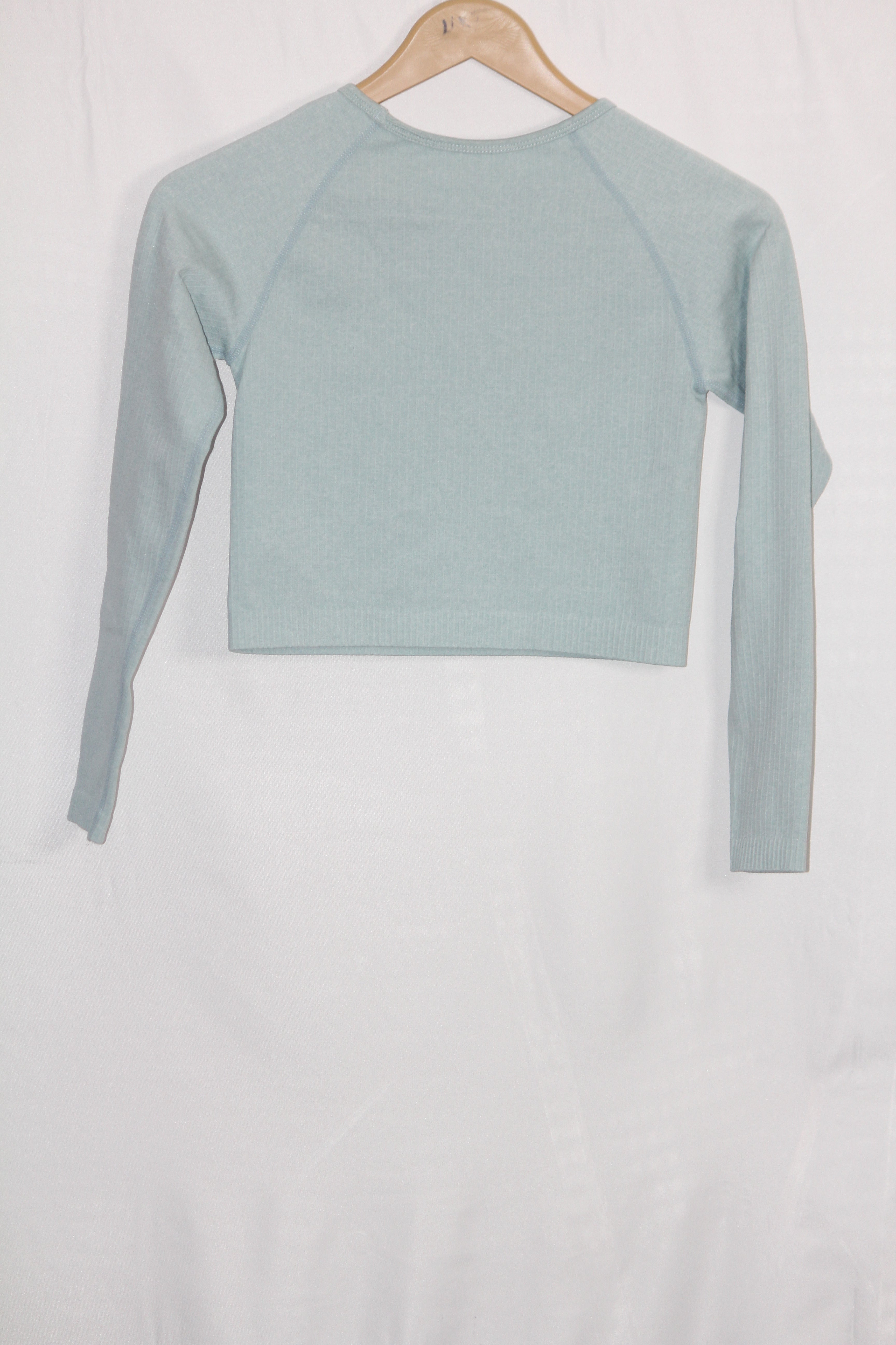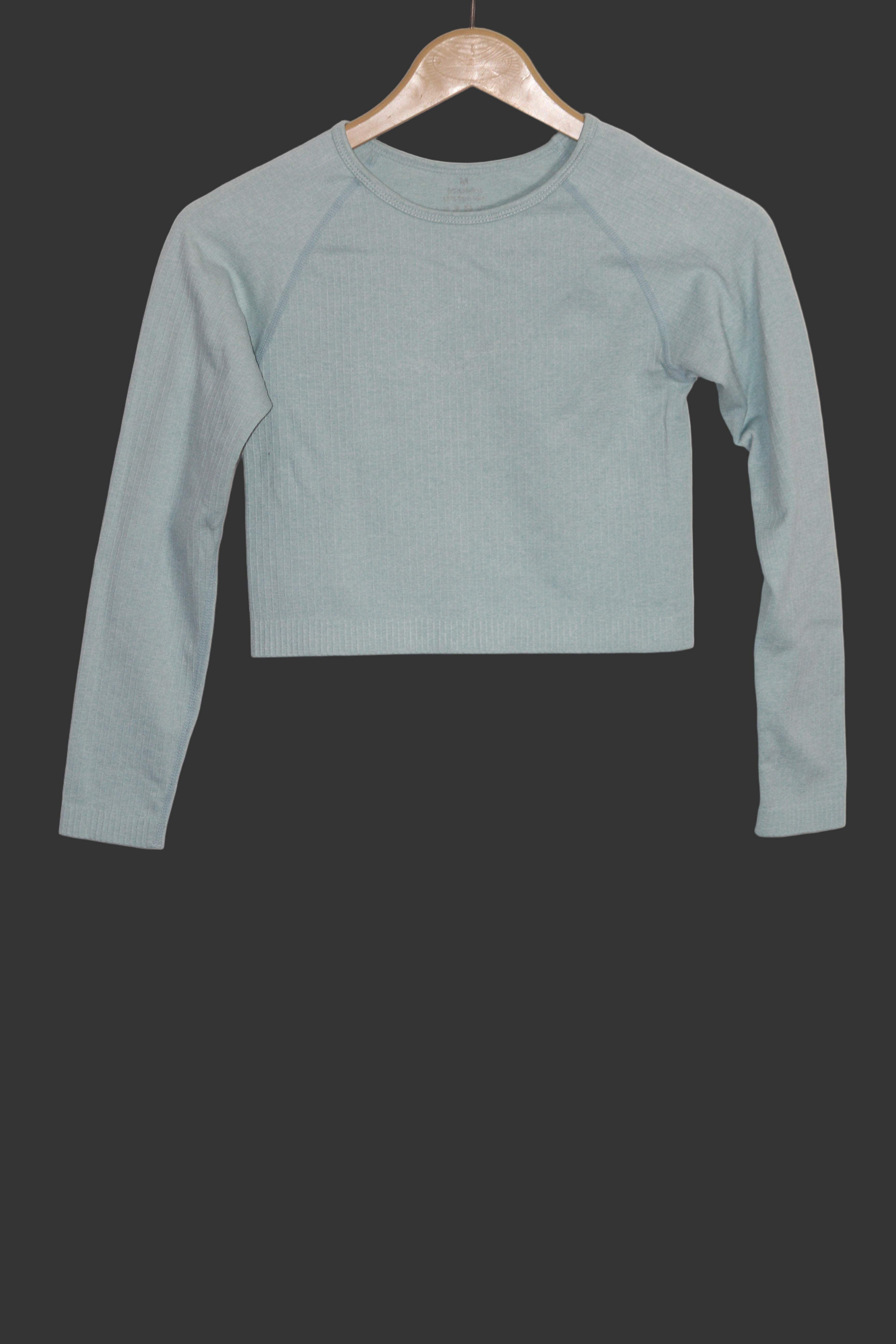 Full-sleeve sea green crop top designed by ThriftyFy.