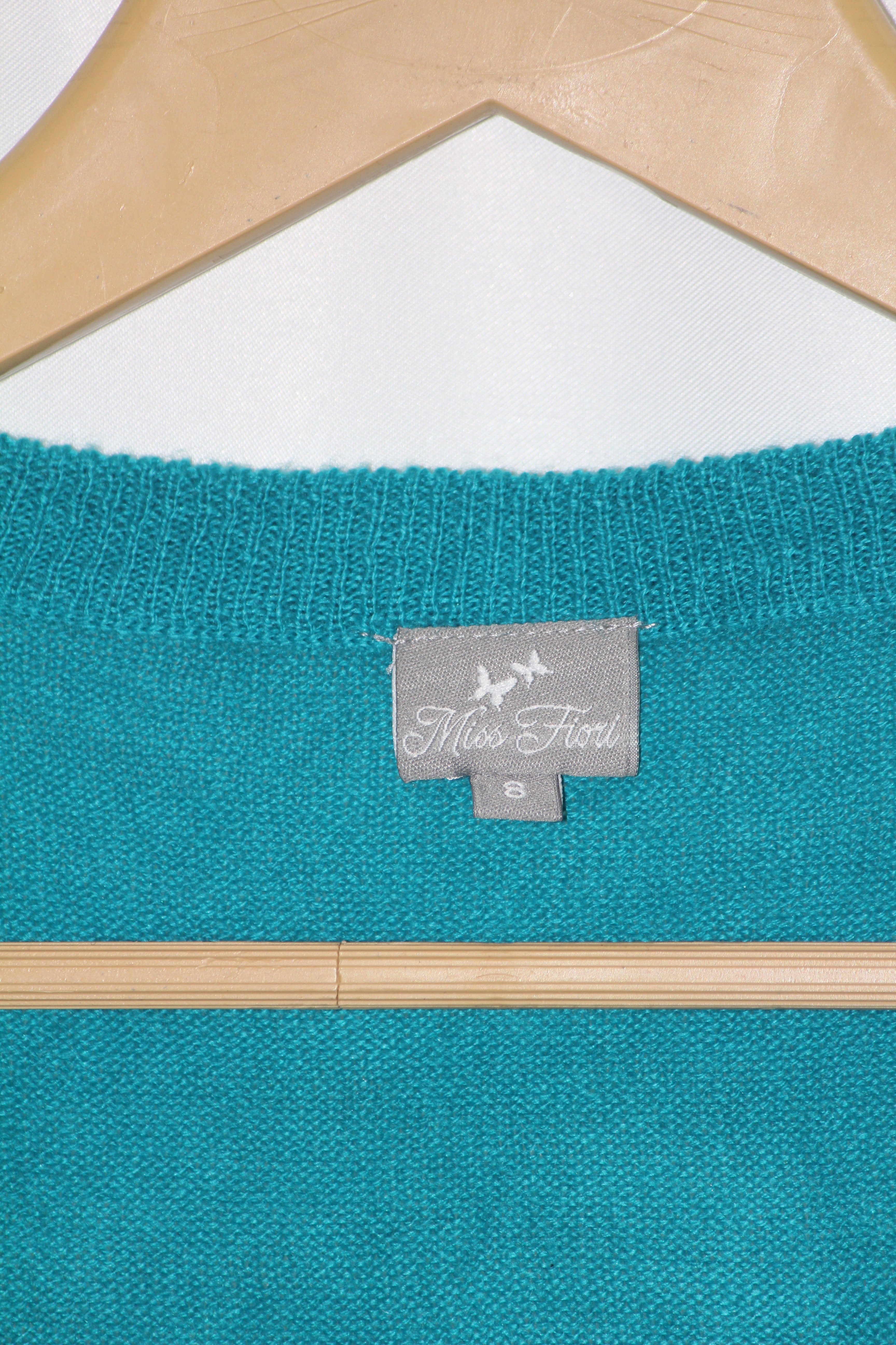 Add vibrancy to your wardrobe with this small-sized turquoise acrylic sweater by Miss Fiori, perfect for a bold casual look.