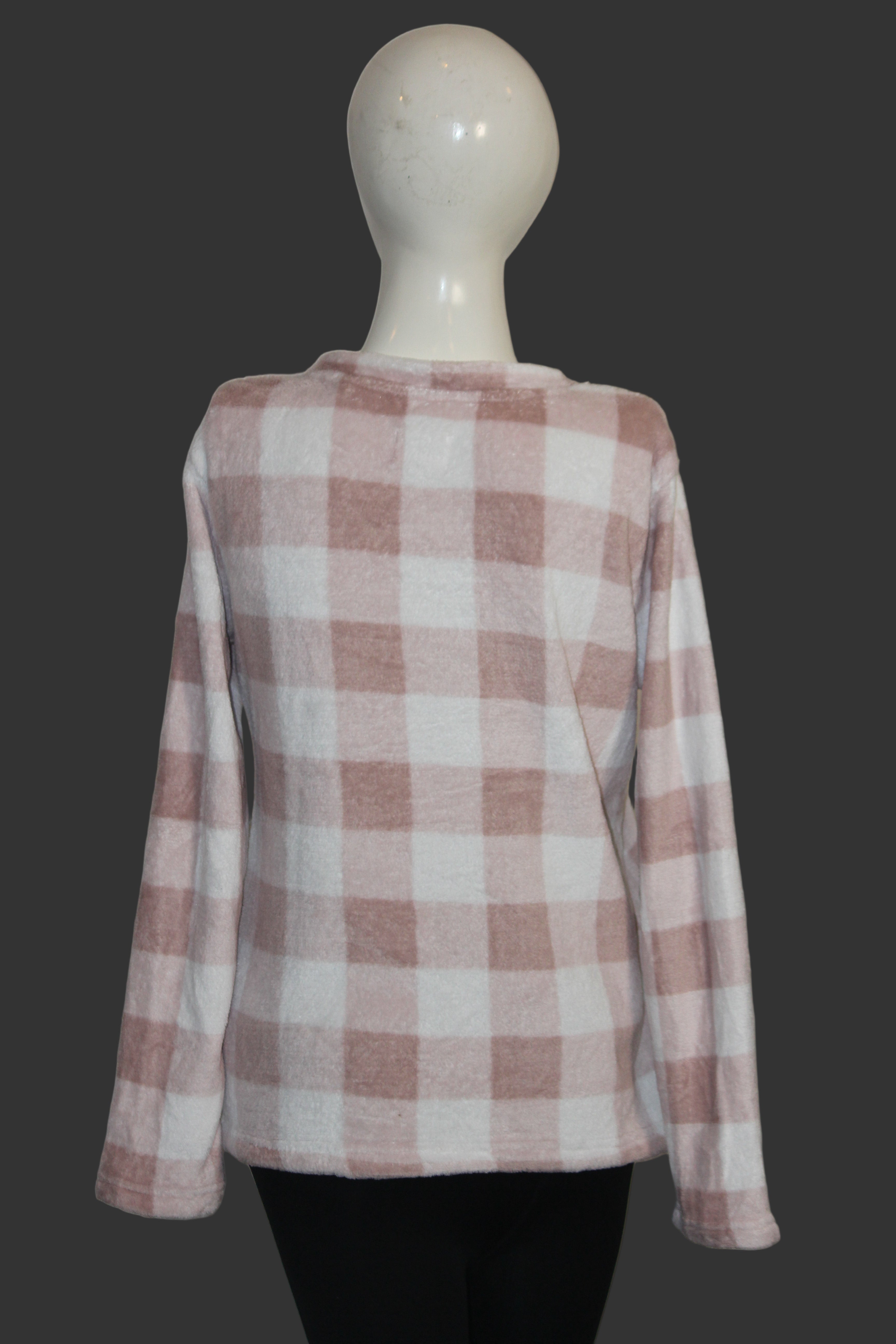Light pink and white checkered warm sweater by Next, soft and stylish for a cozy winter vibe.