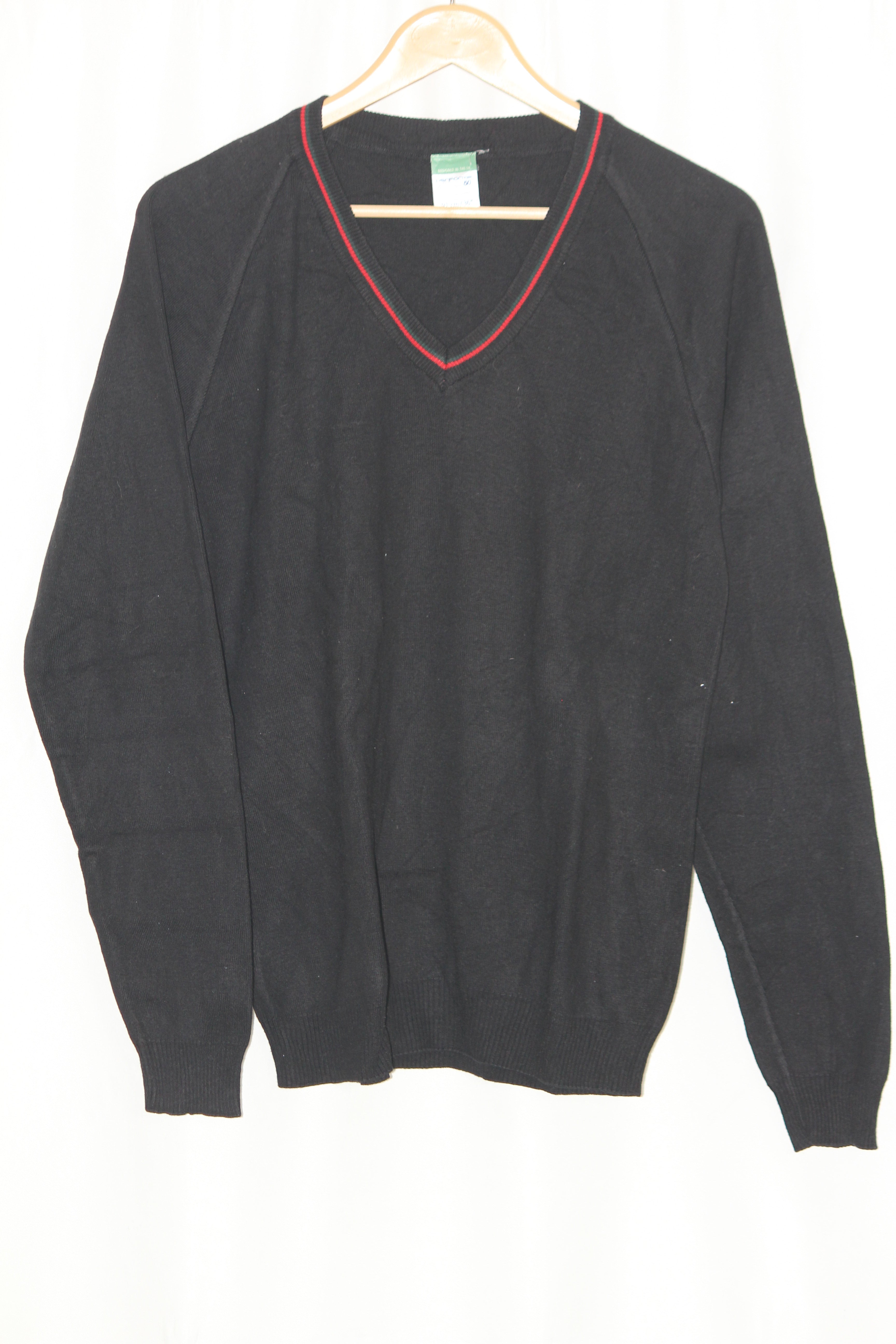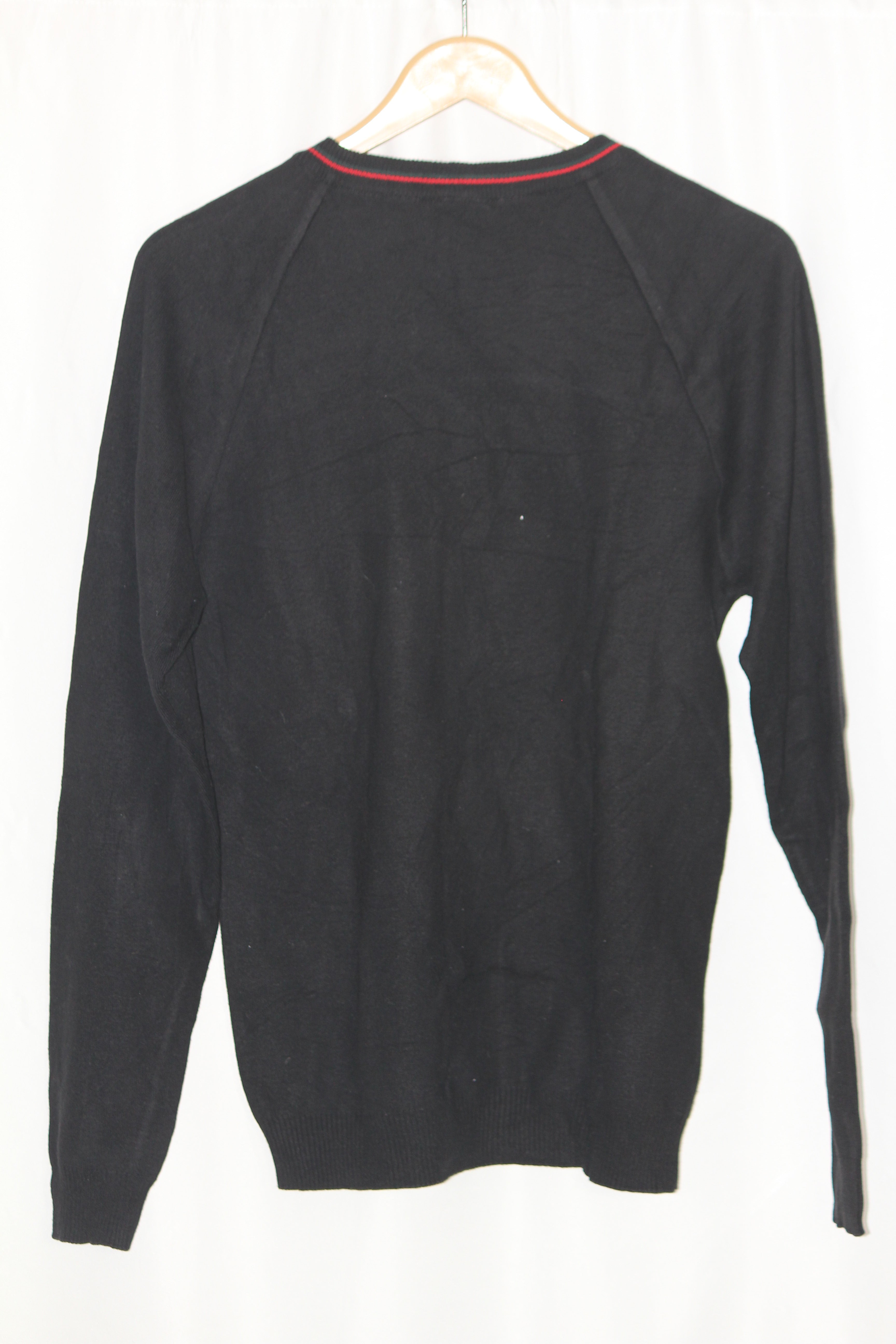 Black full sleeve sweater by Performa. Warm and durable. Chest 21", Length 28", Sleeve 27". Fabric: 50% Cotton, 50% Acrylic.