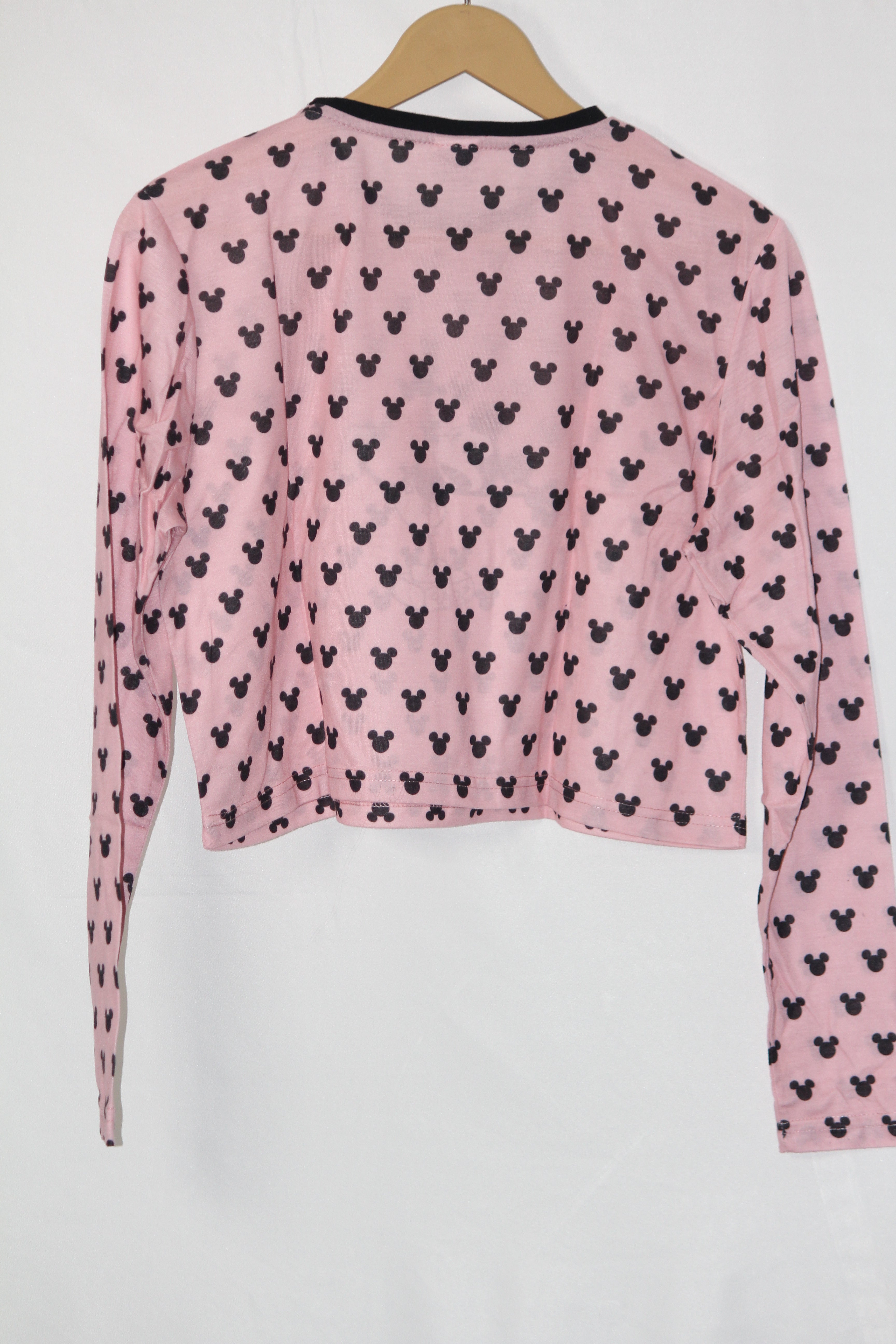 Pretty in pink, this full sleeve crop top by Disnep is made with 100% Polyester. Size Medium with 19" chest, 17" length, and sleeves measuring 22.5". Soft and statement-making.