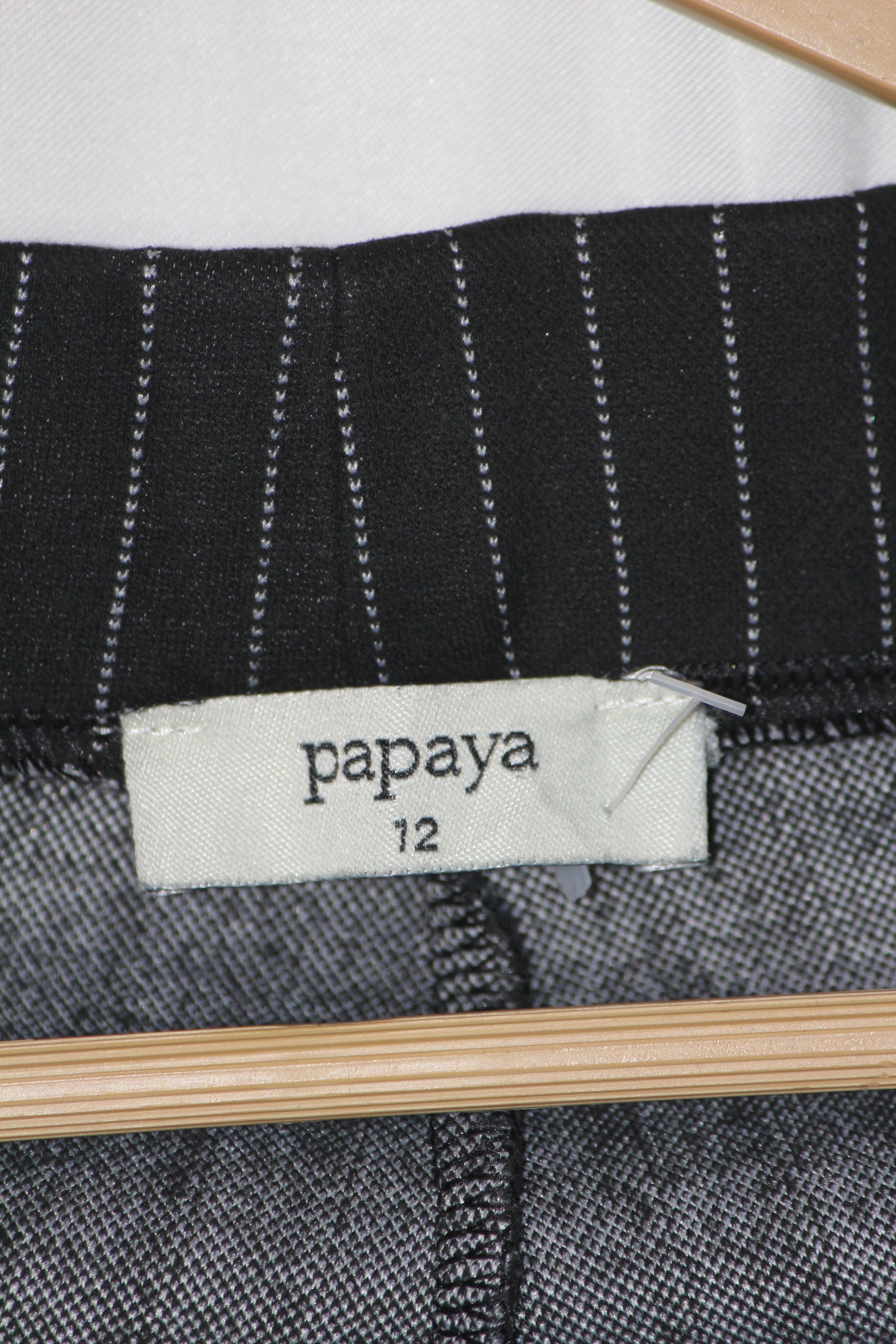 Add a sporty edge to your look with this black trouser featuring white vertical stripes by Papaya. Its stretchy viscose-polyester mix ensures an easy, flattering fit.