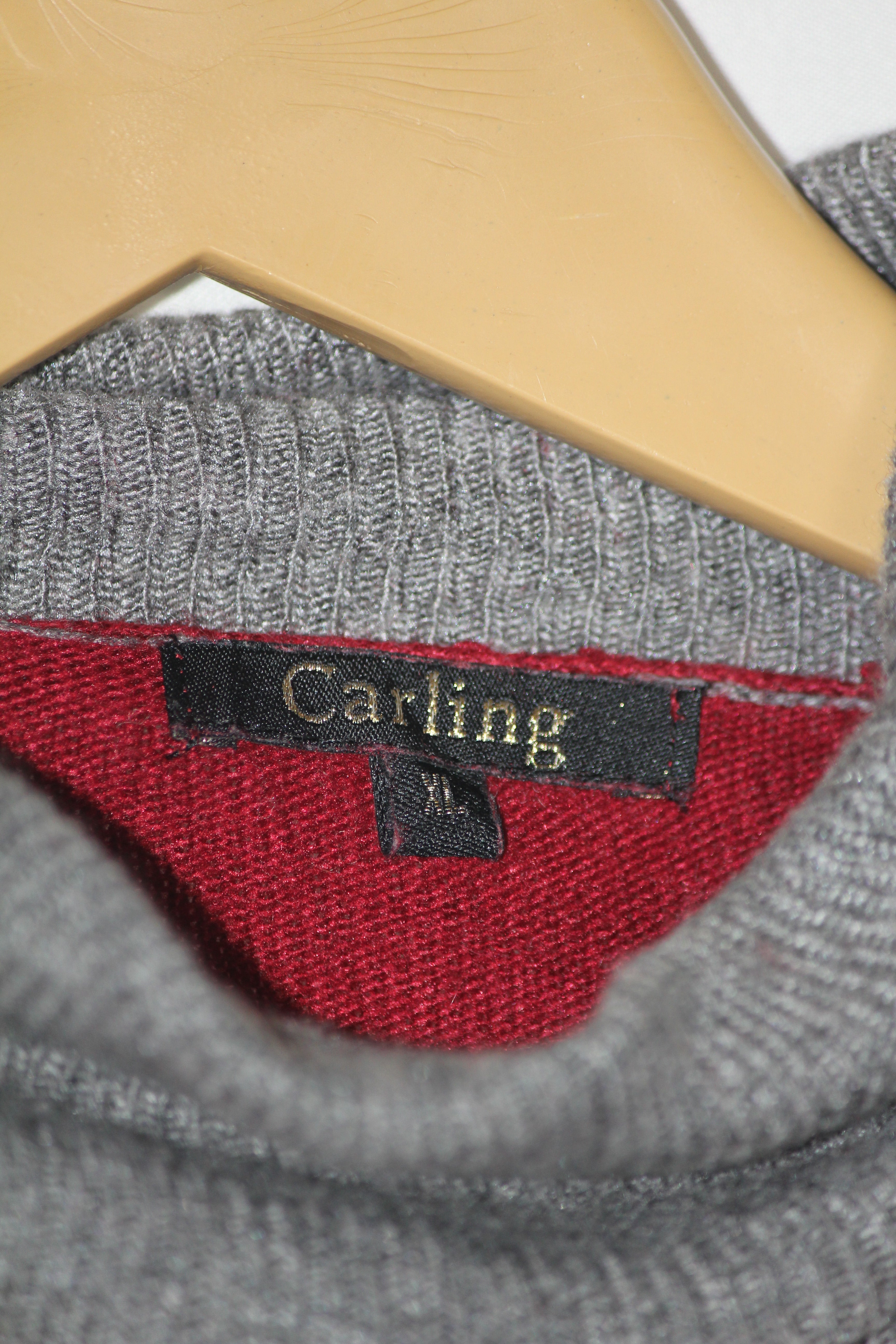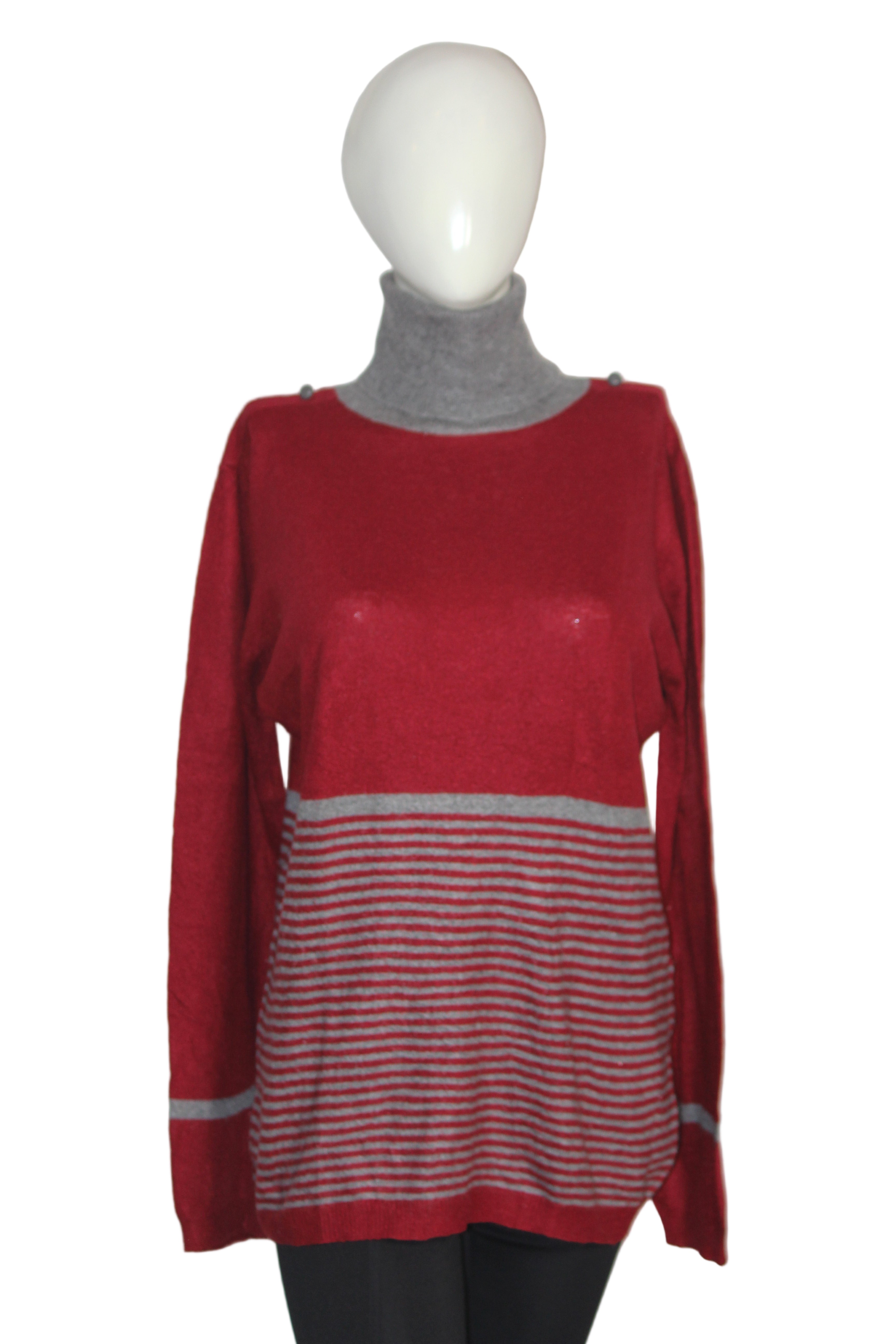 Stand out in this Carling red and grey hi-neck crafted from a luxe blend of viscose, polyester, polyamide, wool, and angora. Rich in texture, perfect for chilly evenings. Measurements: Chest 21"