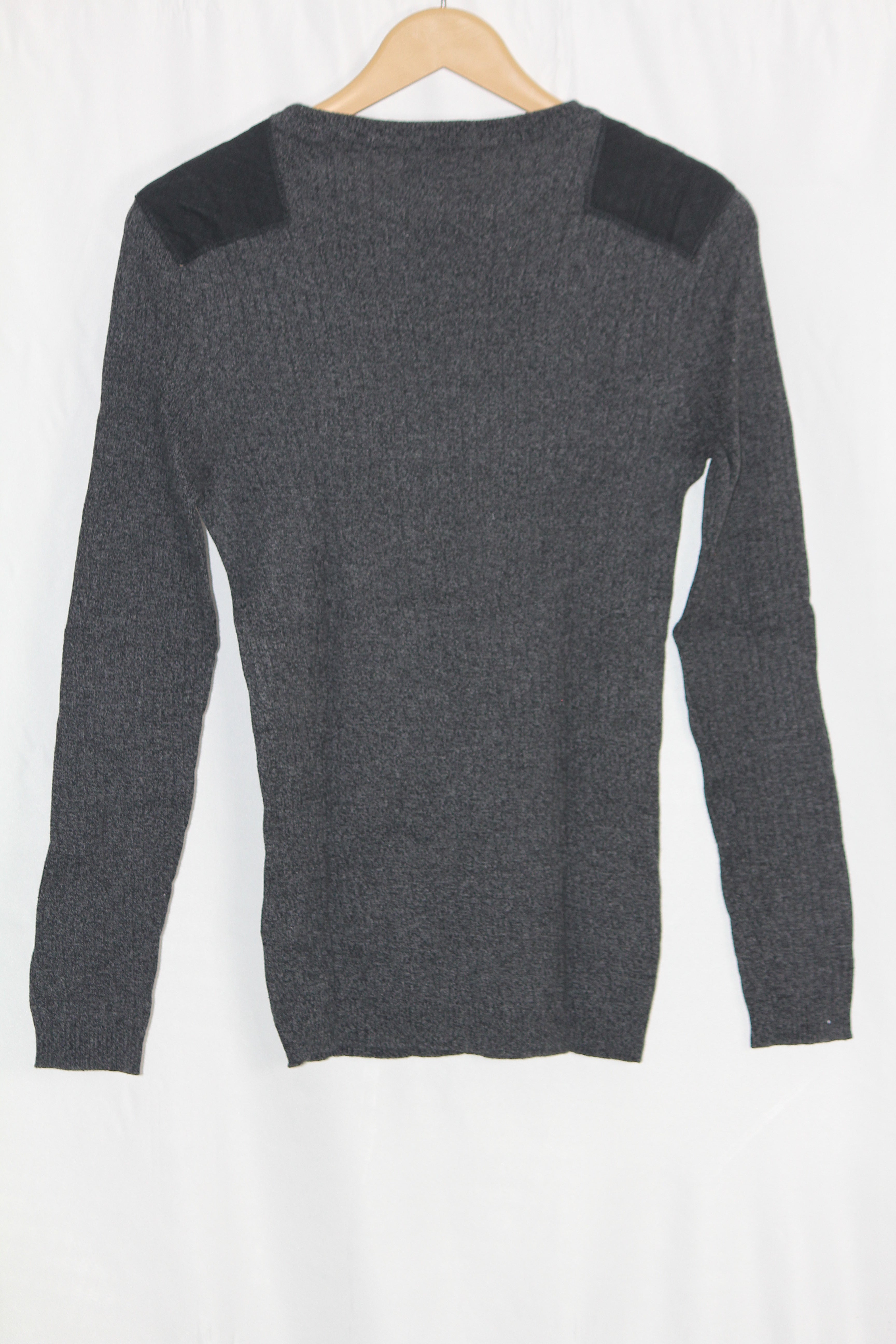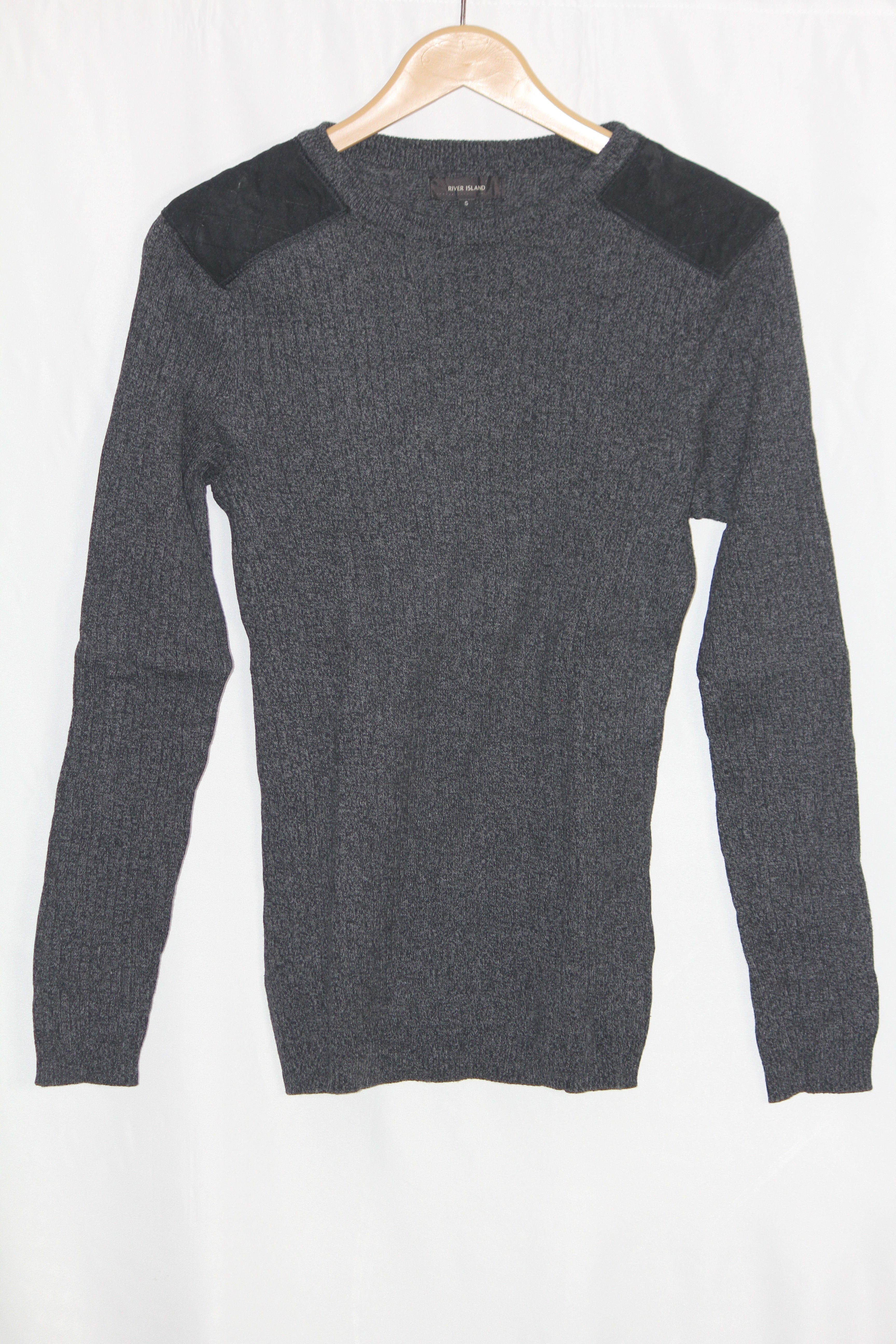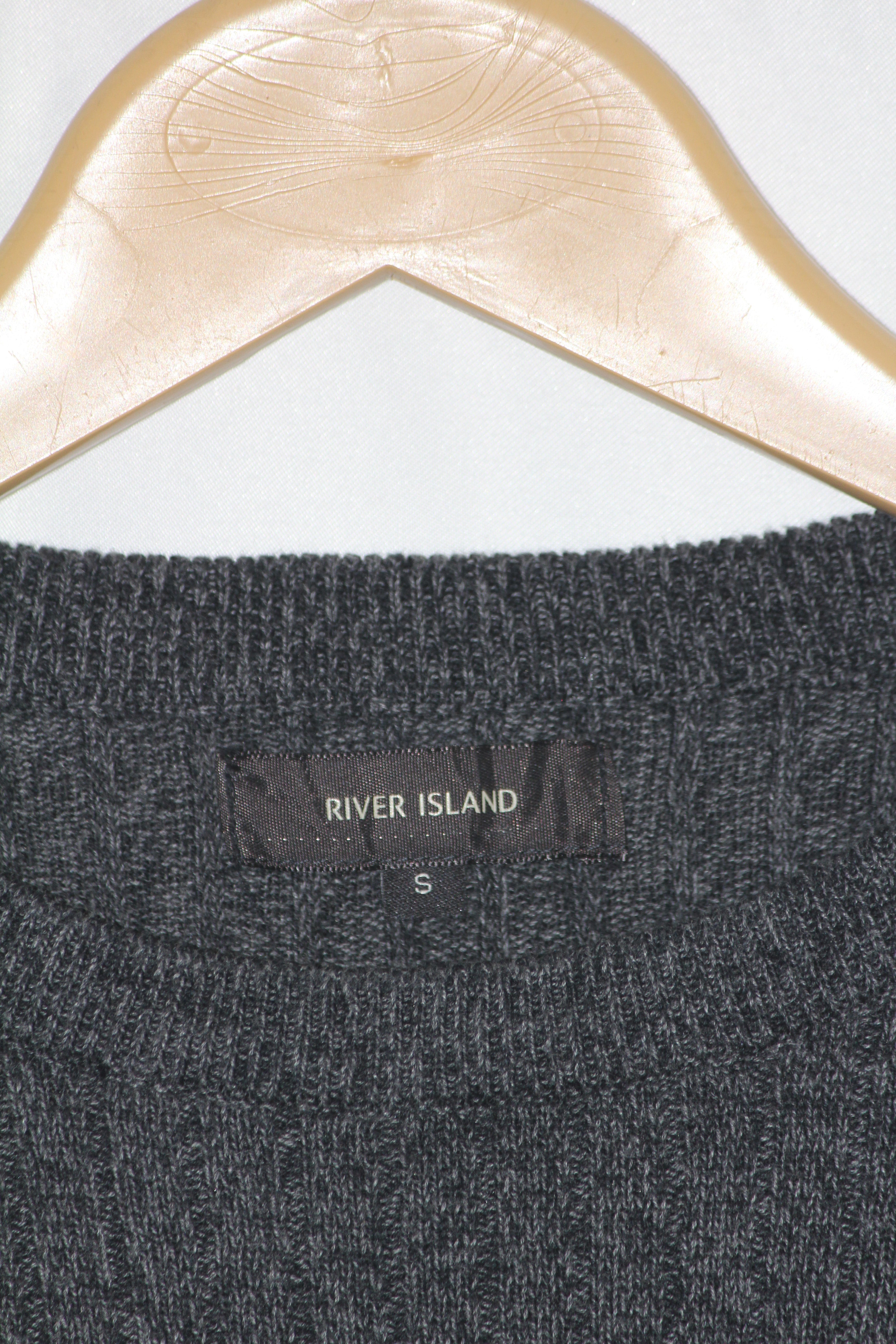 Classic grey knitted sweater by River Island. Soft and warm fit. Chest 20", Length 27", Sleeve 27". Fabric: 100% Cotton.