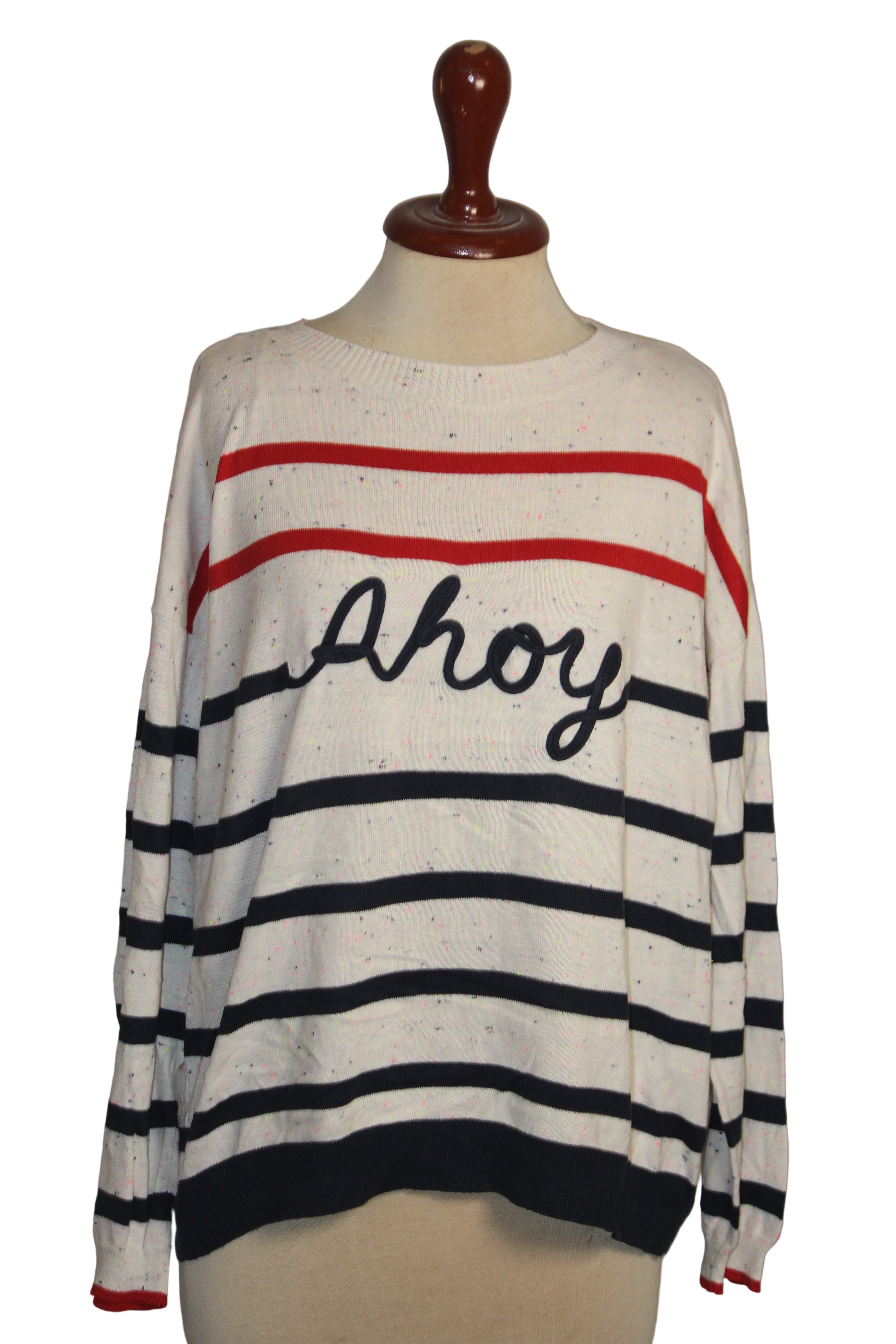 A trendy offwhite sweatshirt from Roman featuring an 'Ahoy' graphic. Perfect for a nautical-themed casual outfit. Excellent condition.