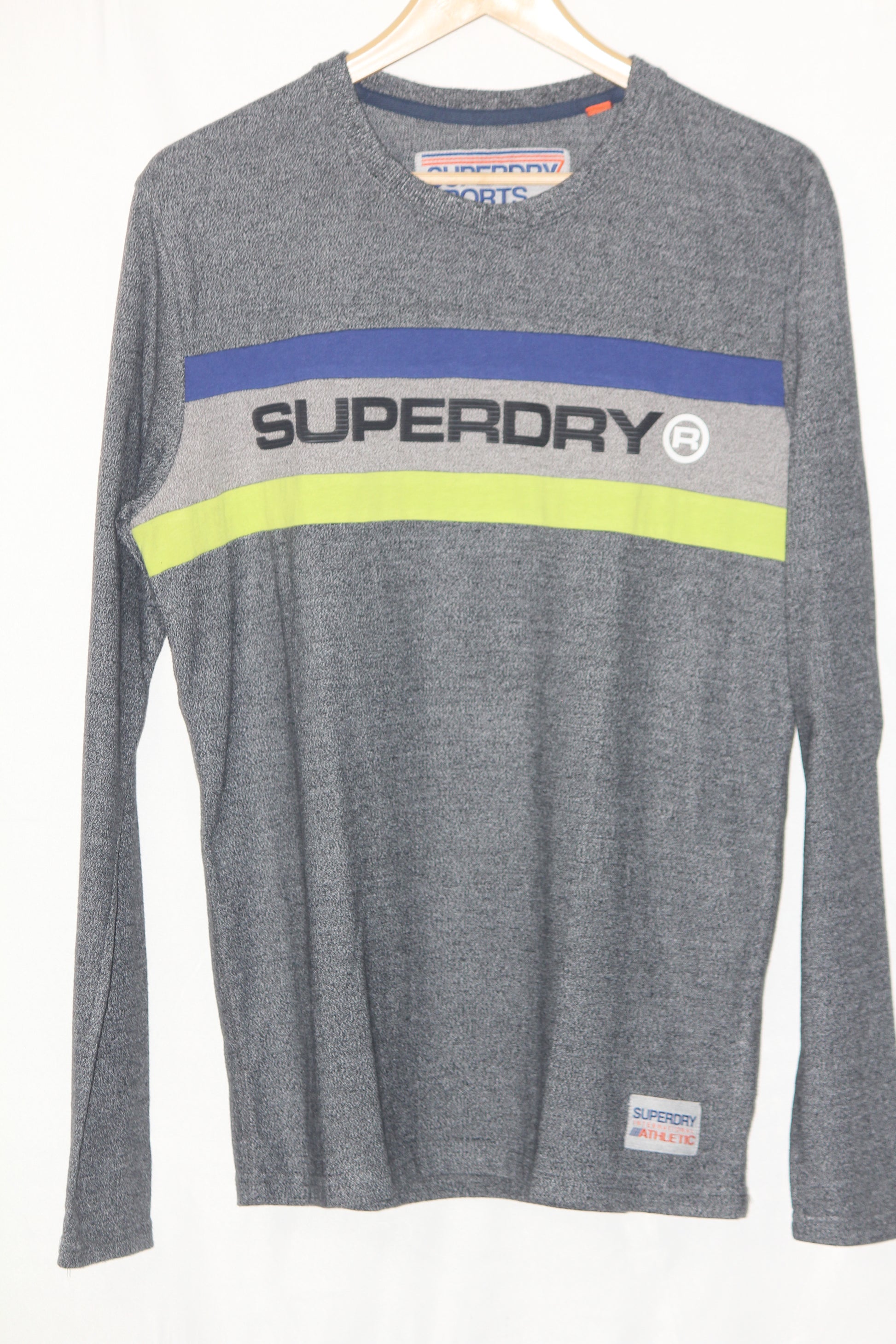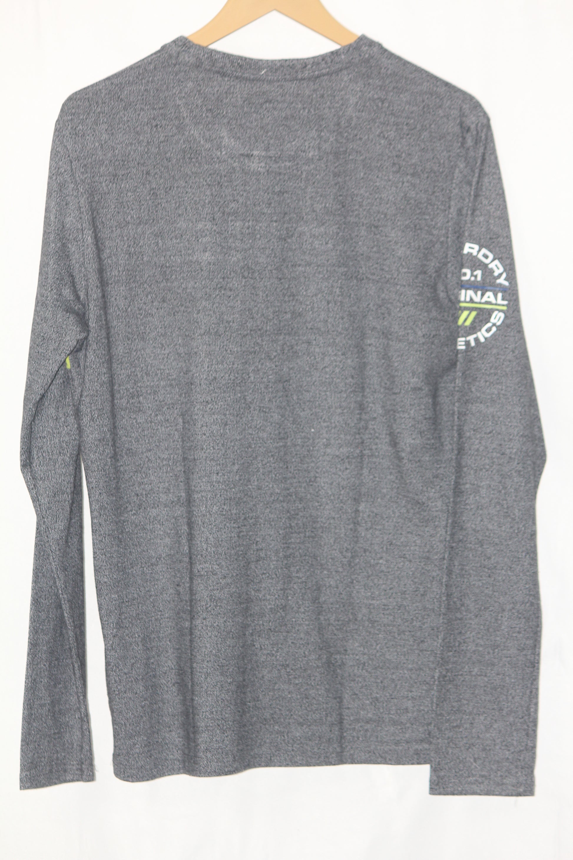 Gray full sleeves T-shirt by SuperDry made with 100% cotton. Size: Large – Chest 20", Length 28", Sleeve 25".