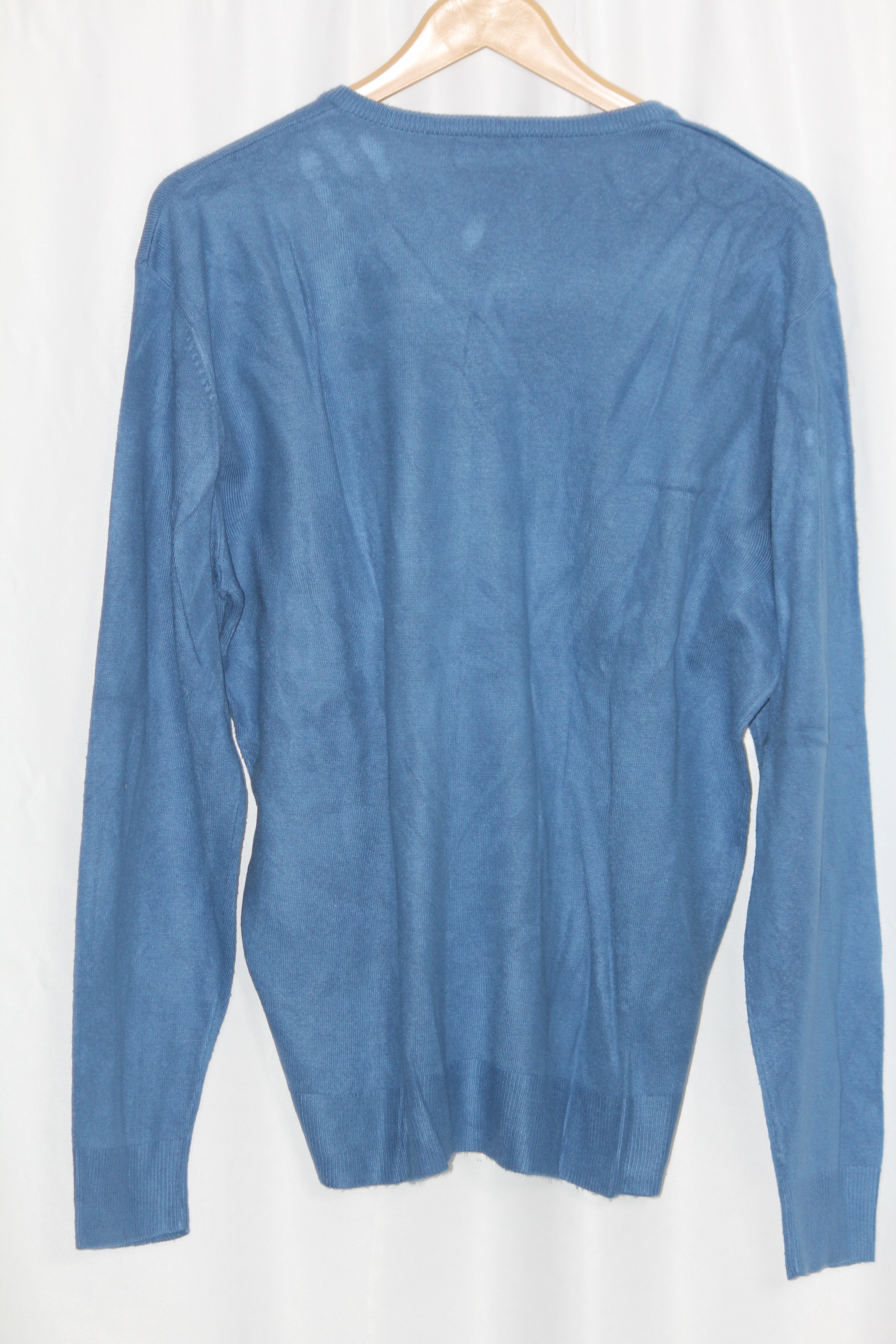 Soft sky blue V-neck sweatshirt (Chest 23.5", Length 25", Sleeve 26") – 100% acrylic