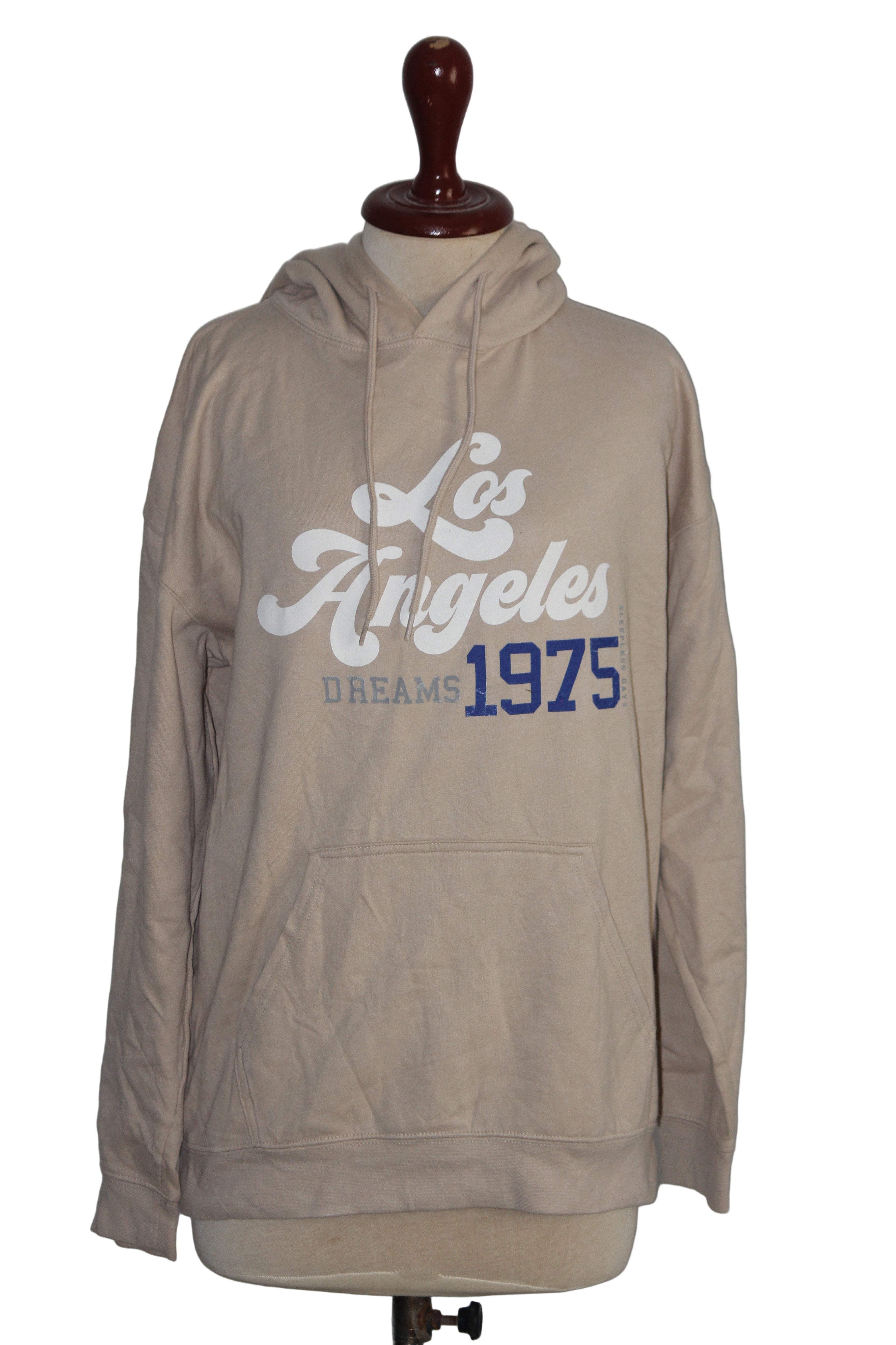 Unique Thriftyfy Cream Hoodie with Los Angeles texture, offering both comfort and modern style for every occasion.