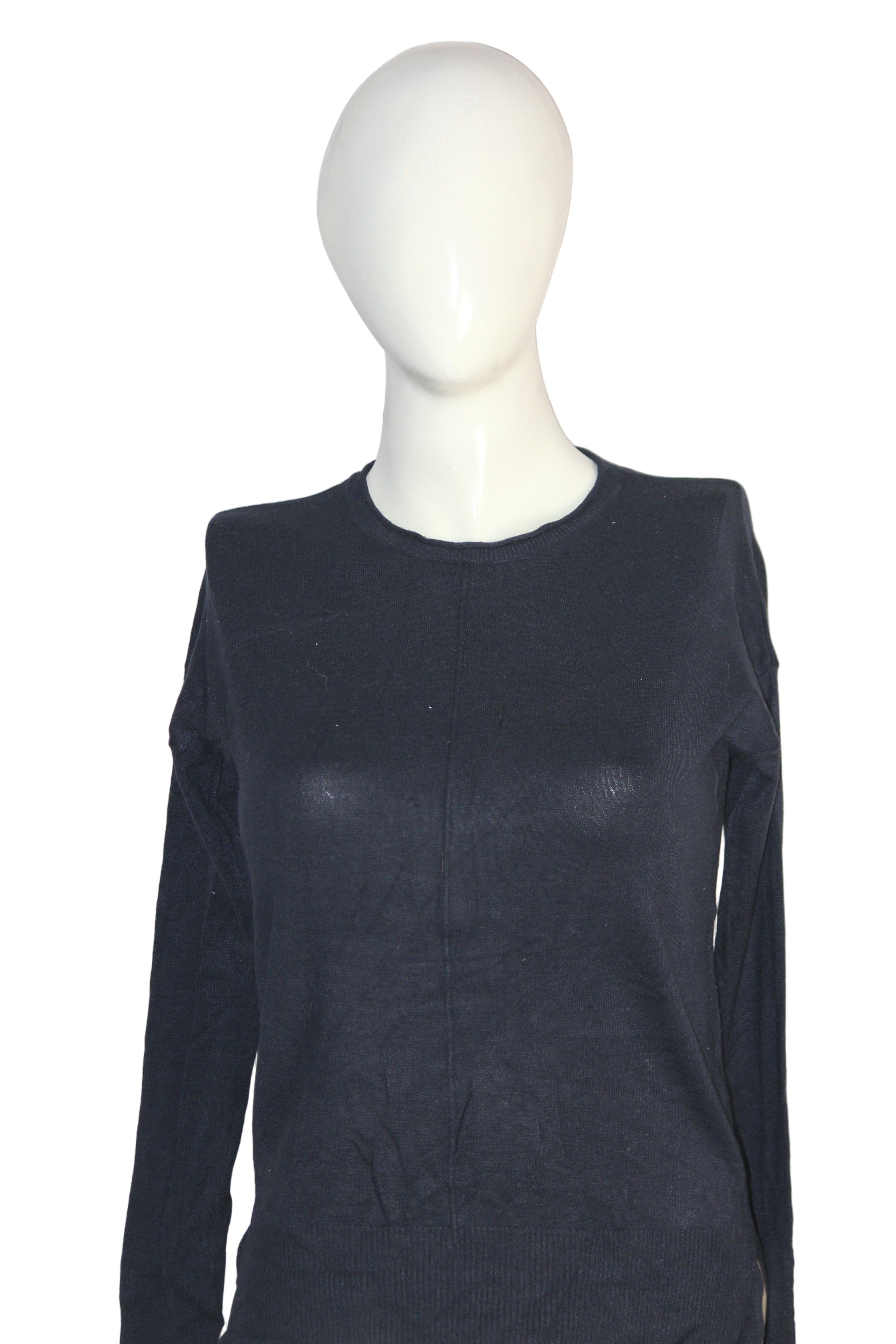 A sleek navy-blue sweatshirt from Atmosphere featuring a comfortable stretch blend with elastane for a flexible fit. Full sleeves and a shorter length give it a trendy, cropped-style feel. Perfect for casual winter styling.