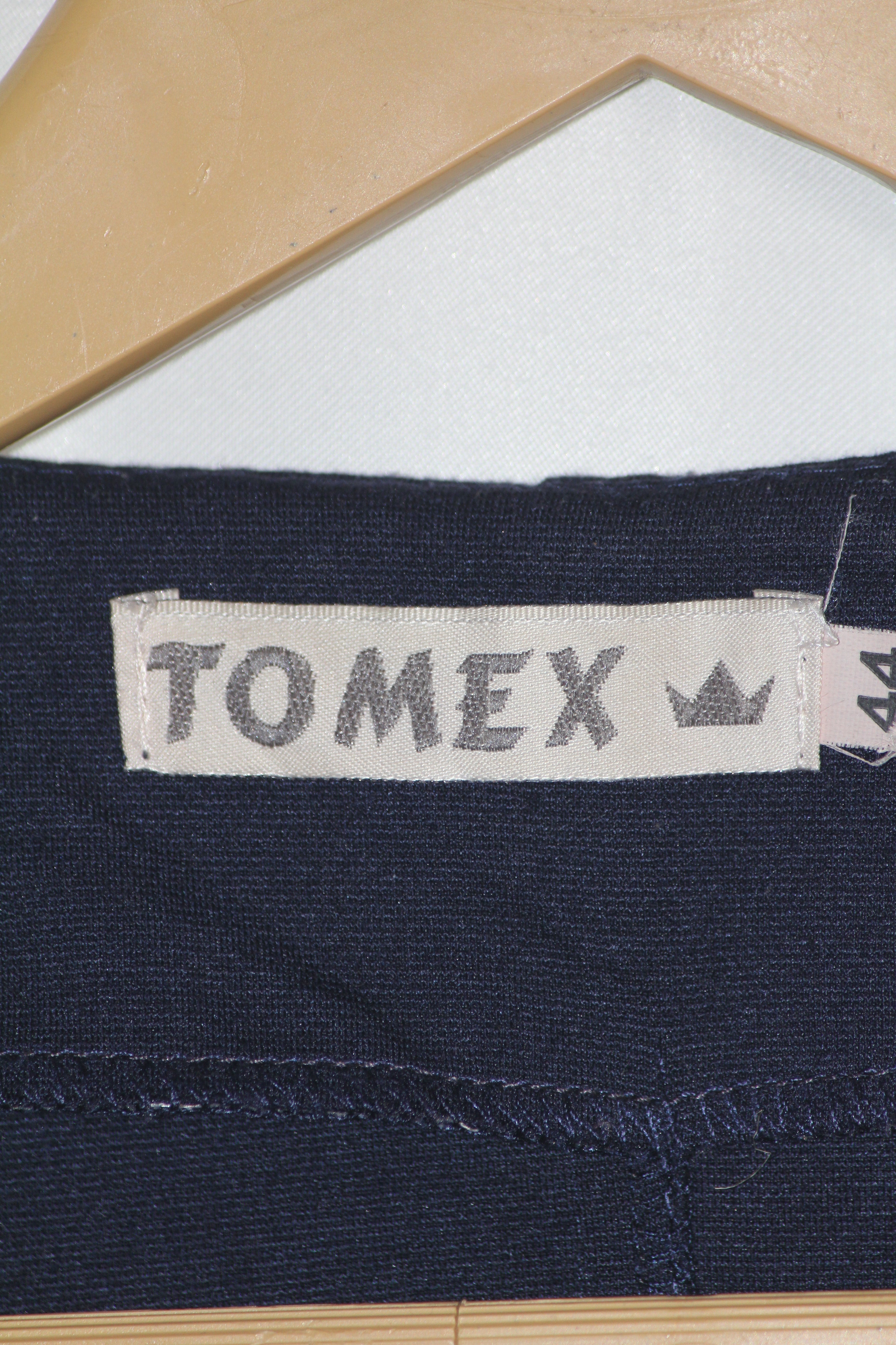 Stay stylish and comfortable with this medium Tomex zipper jacket in classic blue. The 20" chest and 25" length offer a snug fit, perfect for layering or wearing alone during cooler days.