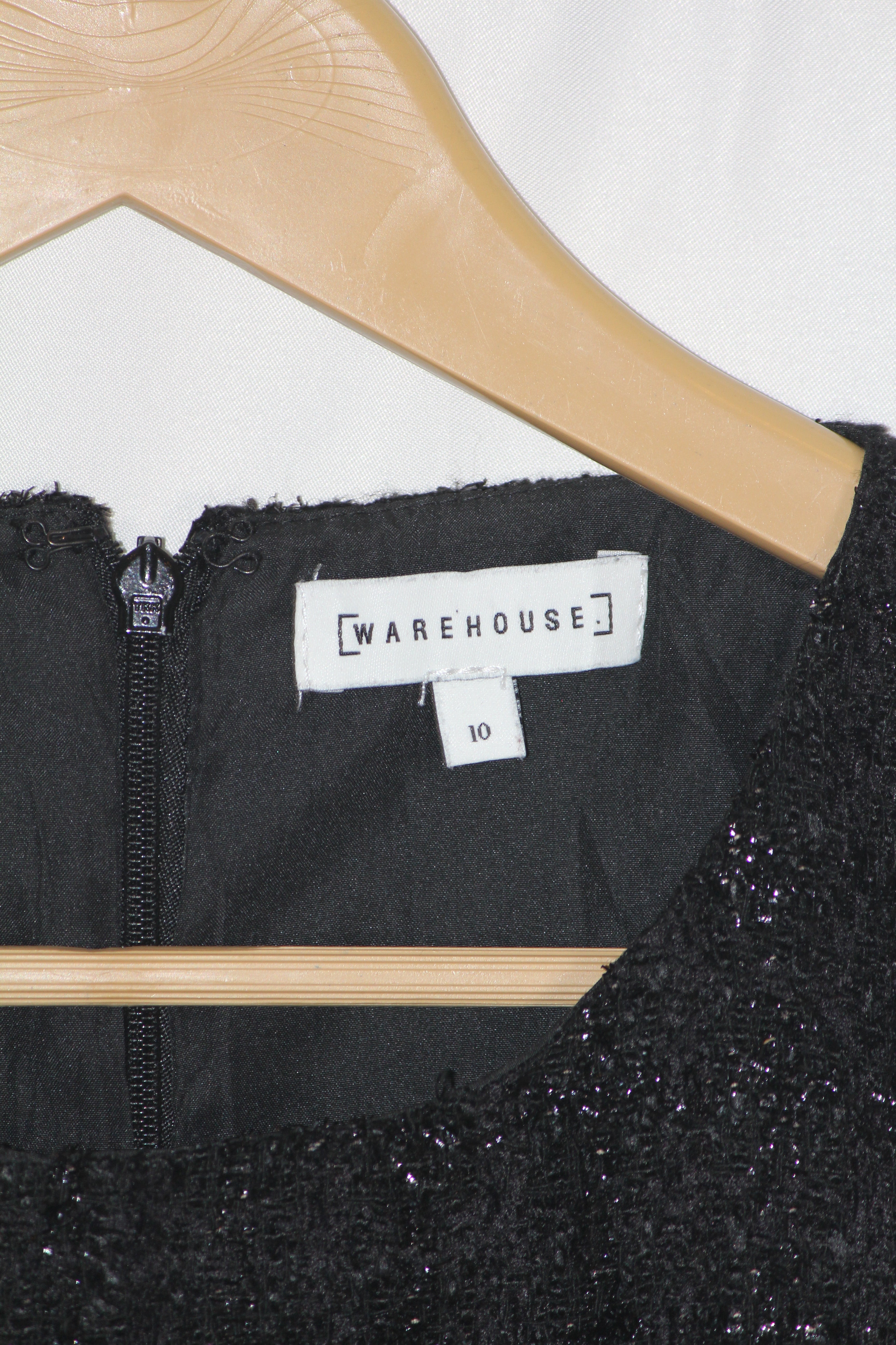 Turn on the glamour with this Warehouse black shiny bodycon. Its subtle shimmer and sleek fit make it a go-to piece for dinner dates or evening outings.
