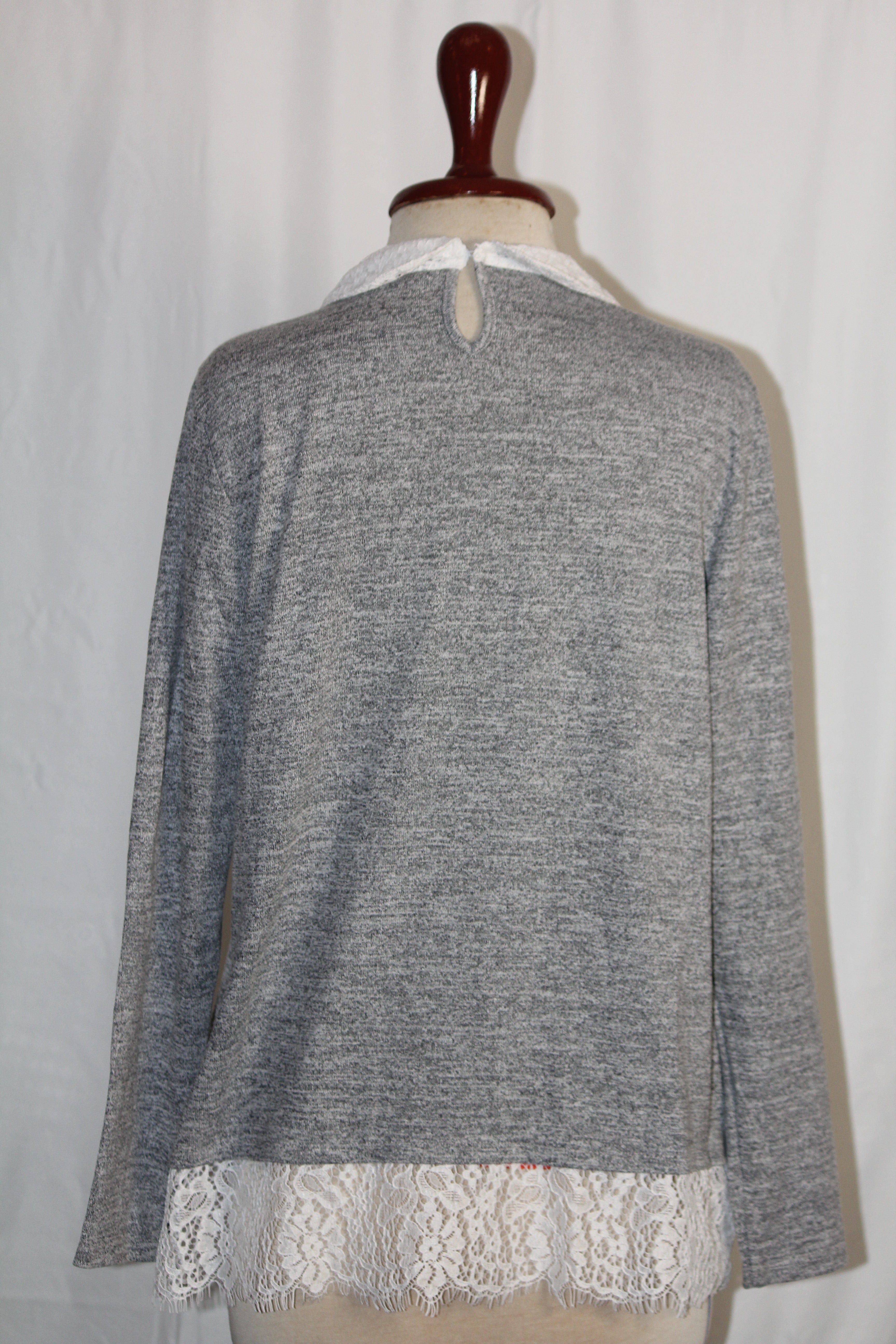 A stylish grey sweatshirt from Tu with a delicate white lace collar, perfect for adding a touch of elegance to your casual outfit. In excellent condition.