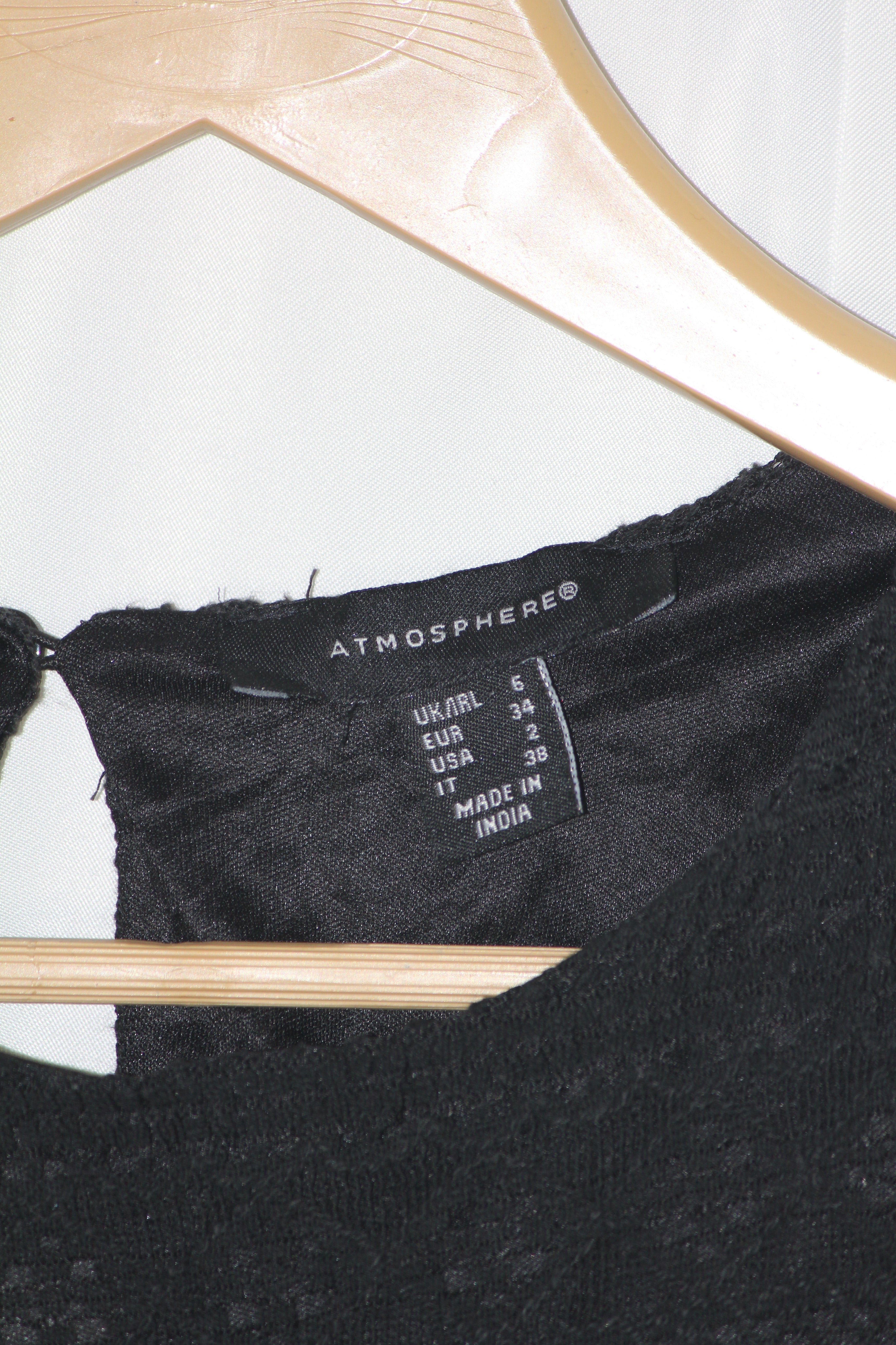 The classic black bodycon by Atmosphere — timeless, minimal, and easy to style. Made with a soft acrylic-polyester blend, this dress transitions seamlessly from office chic to evening elegance.