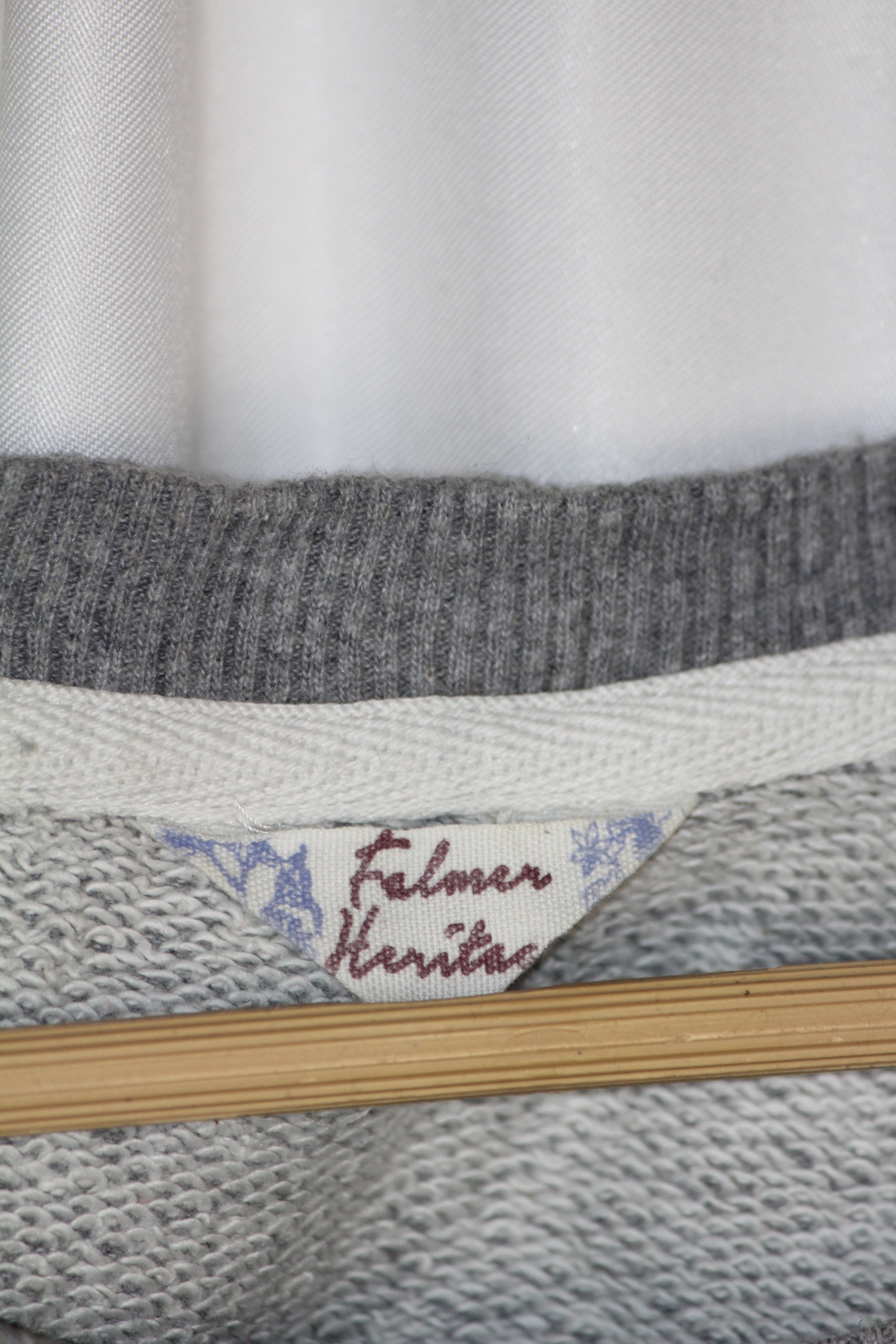 A unique grey cotton sweatshirt featuring delicate white floral net detailing on the front. Soft, breathable, and stylish—perfect for adding a feminine touch to winter outfits.